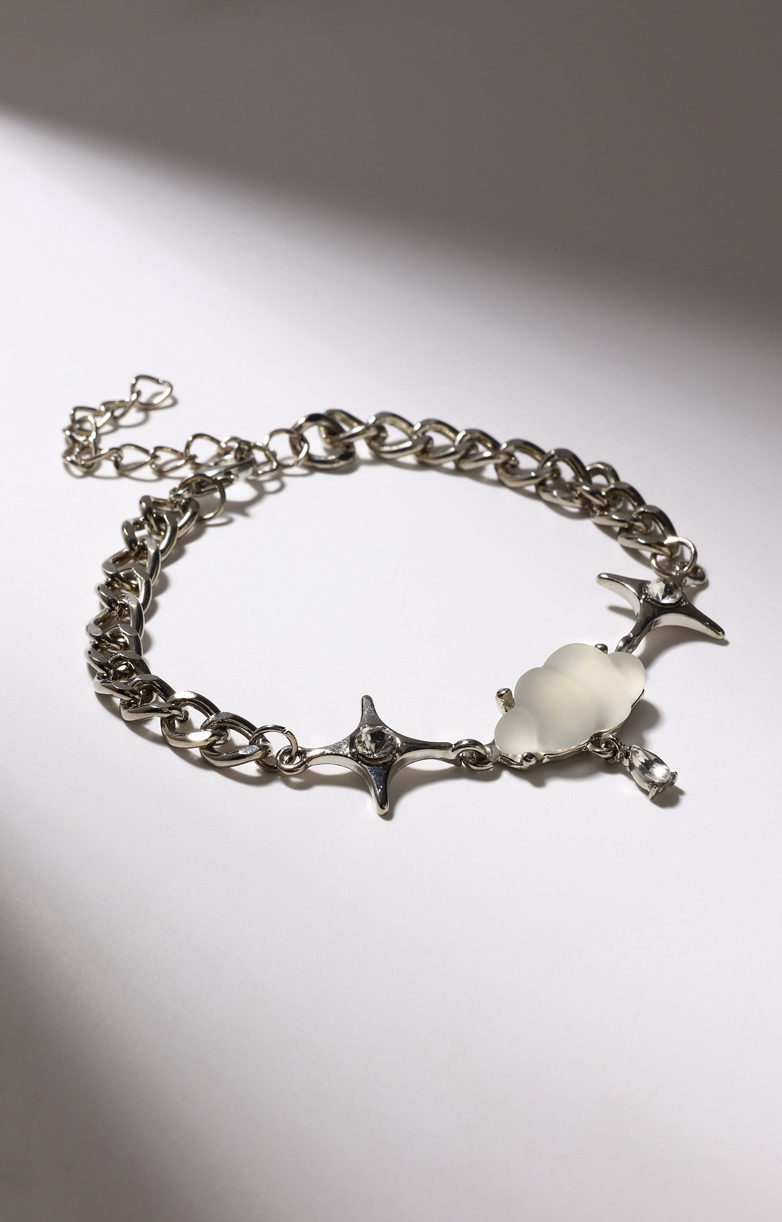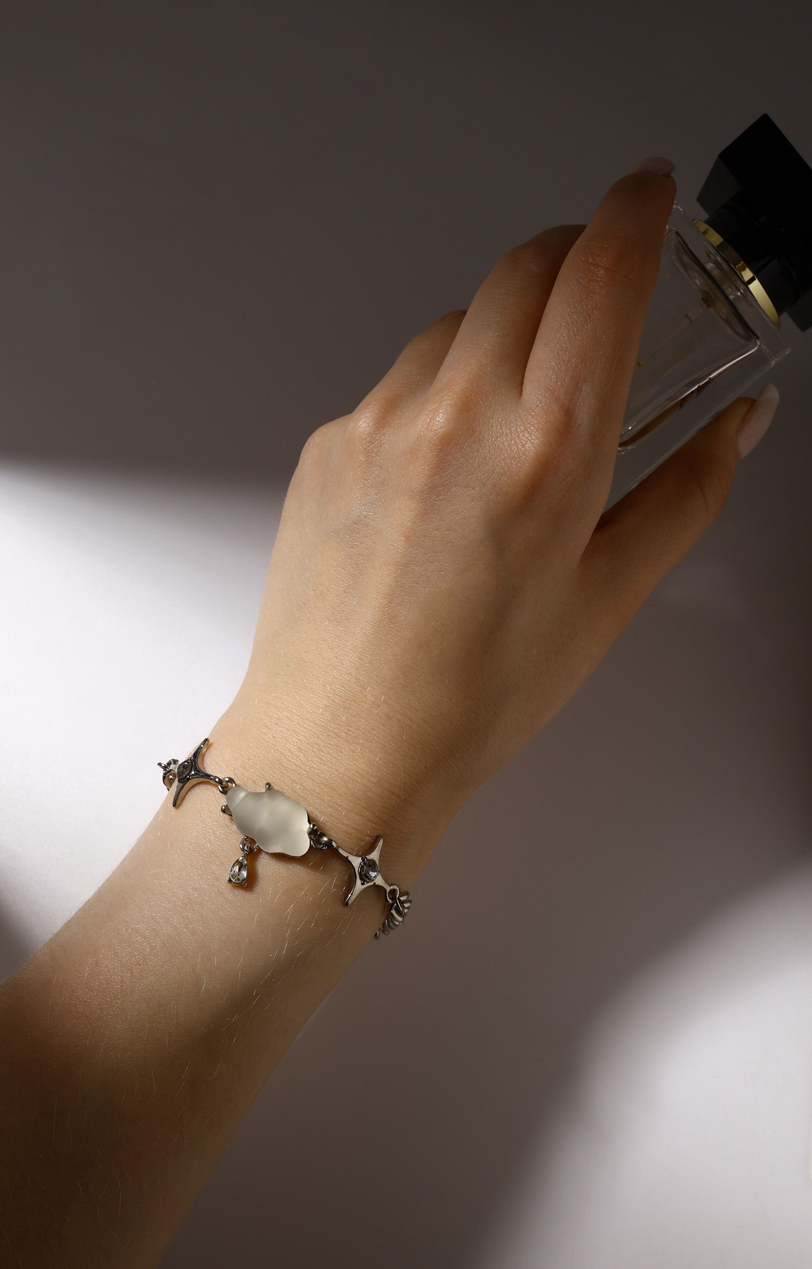 Браслет "Небосвод", белый в серебре, L=16 см, 2x16x0.7 см., QF, Китай