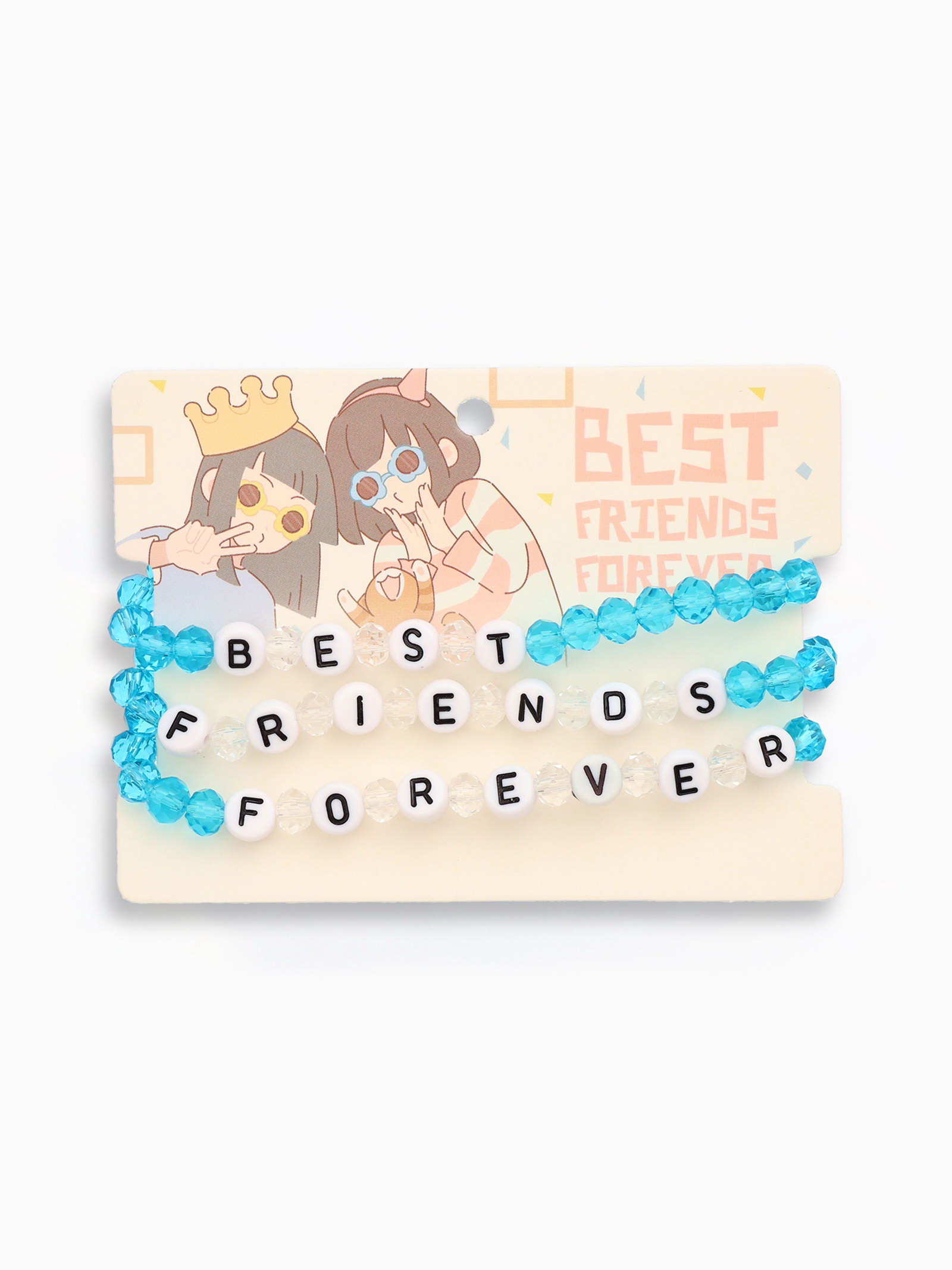 Браслеты парные "Неразлучники" бусины, 3 шт., best friends forever, бело-голубые, d=6 см, 0.8x6x0.6 см., Tell your story, Китай