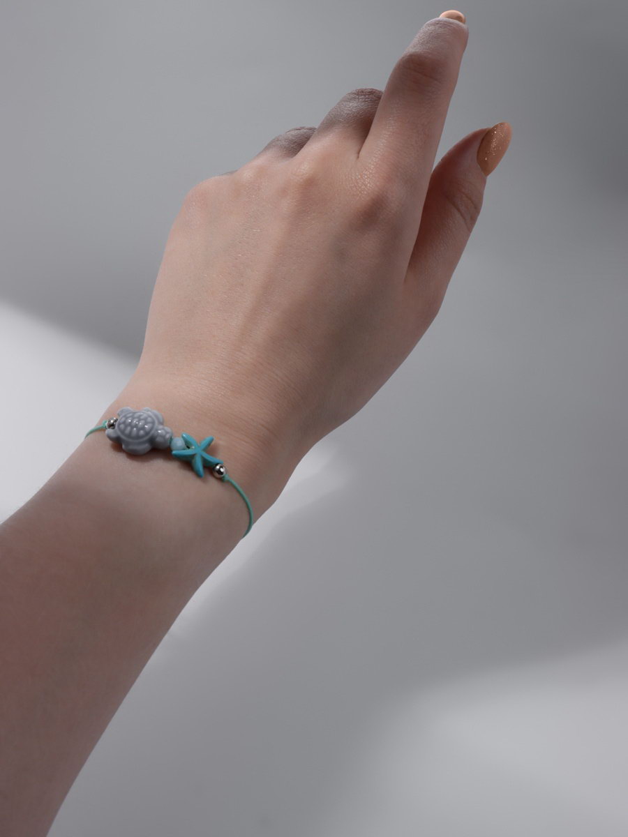 Браслет "Черепашка" на нити, звезда, серый в серебре, 2x7x0.4 см., QF, Китай