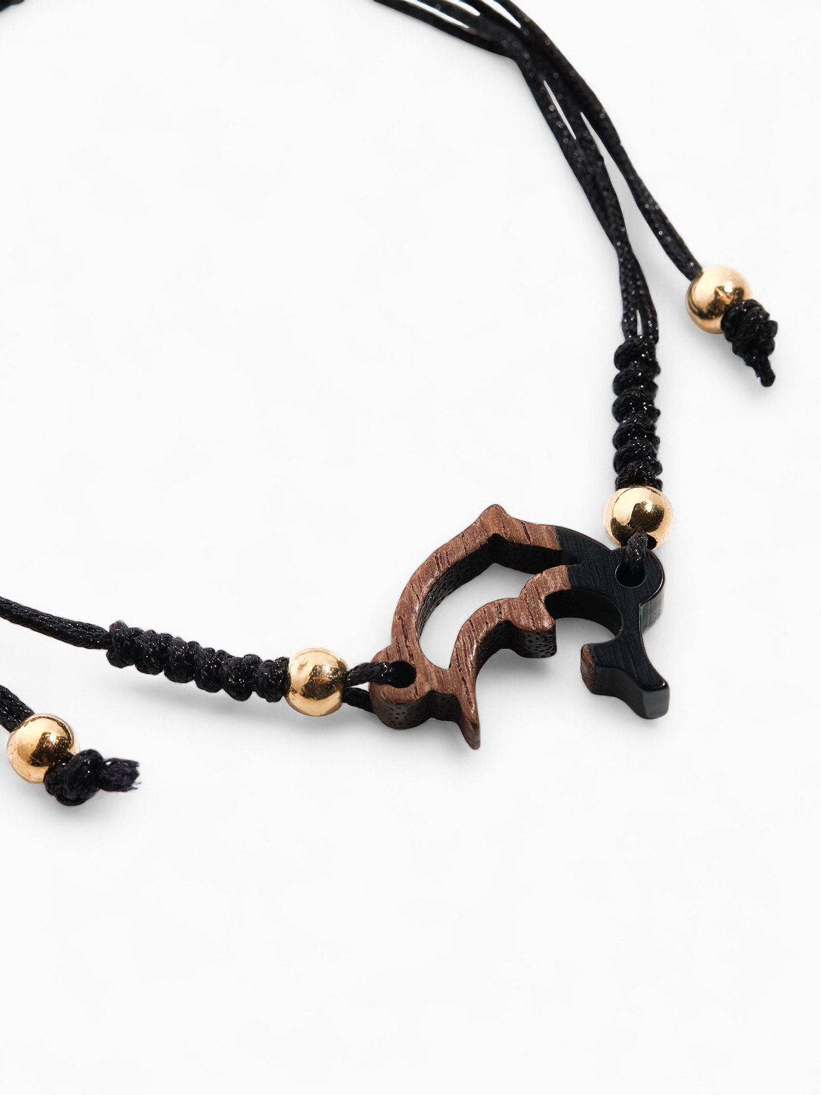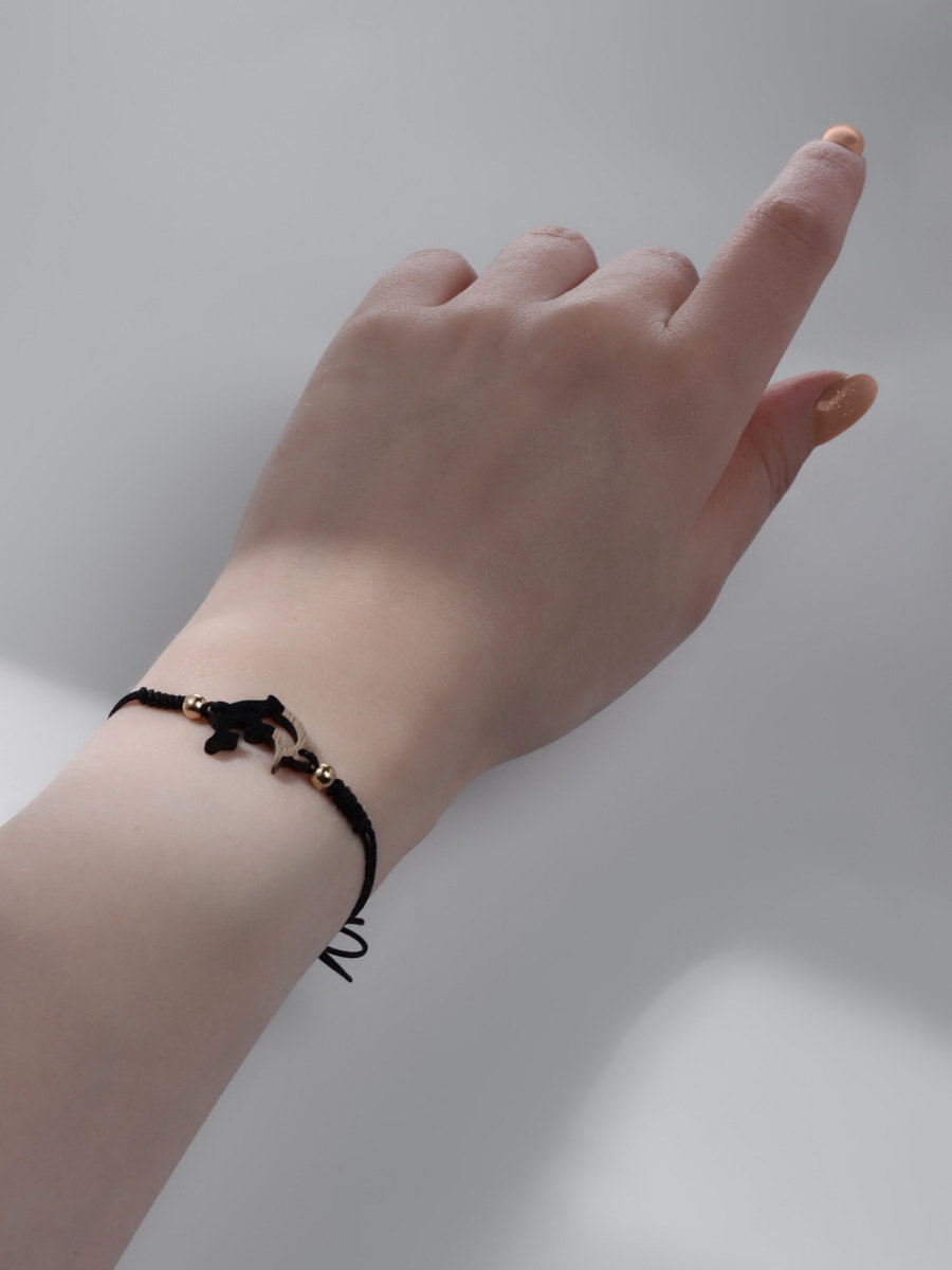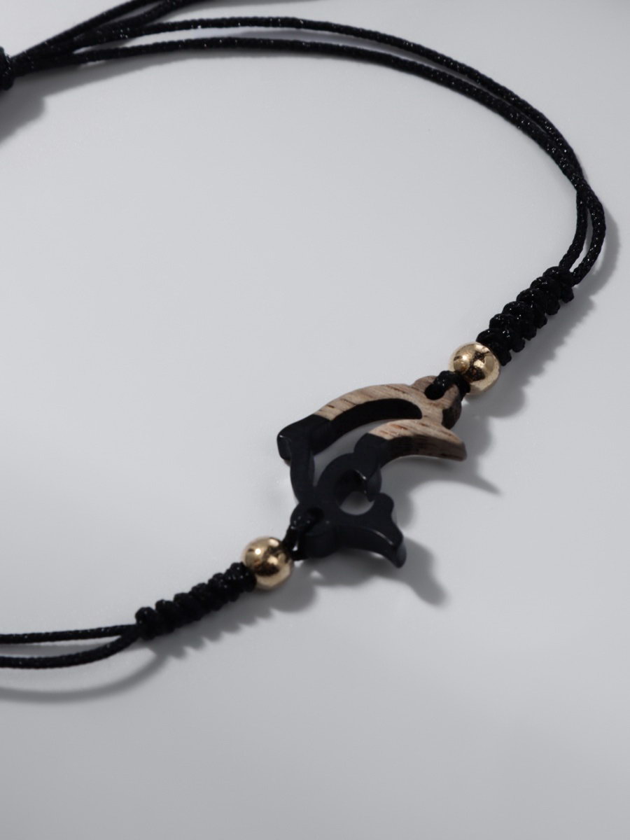 Браслет ассорти на нити "Дельфинчик" на нити, цвет чёрный в золоте, 1x7x0.5 см., QF, Китай