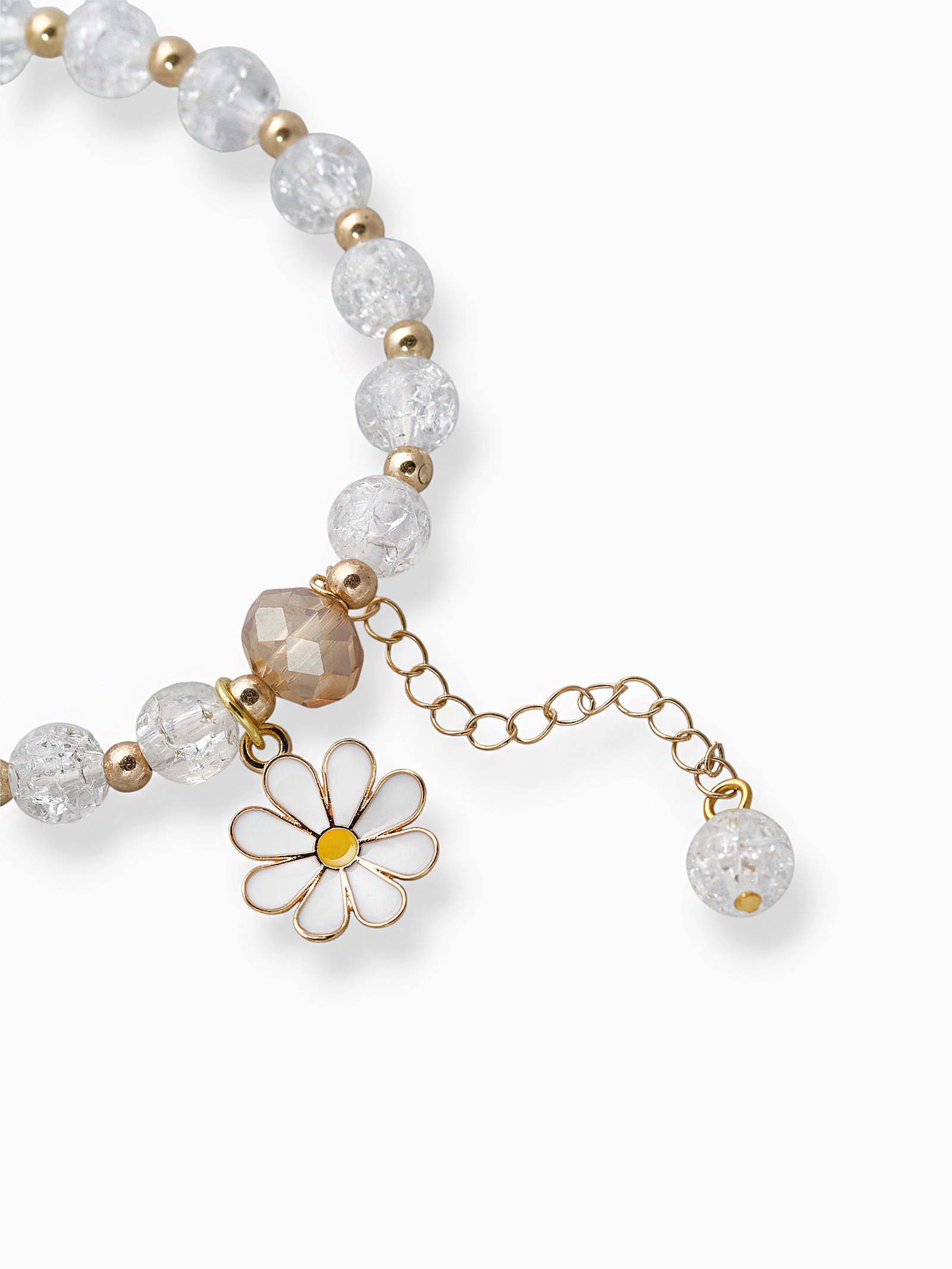 Браслет из бусин "Ромашка. Нежность", d=8 см, белый в золоте, 2x8x1 см., QF, Китай