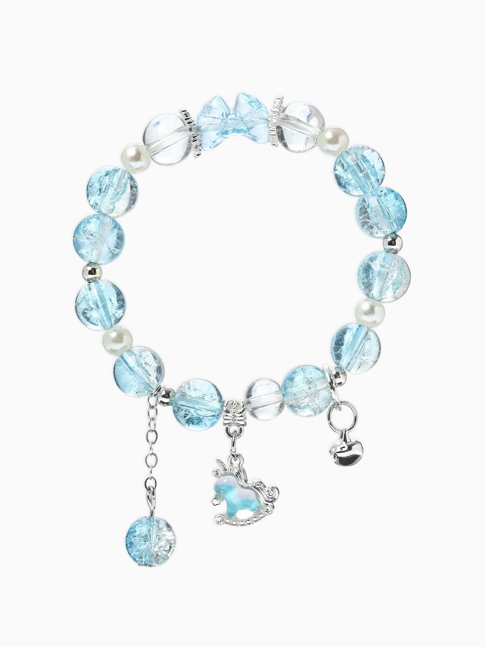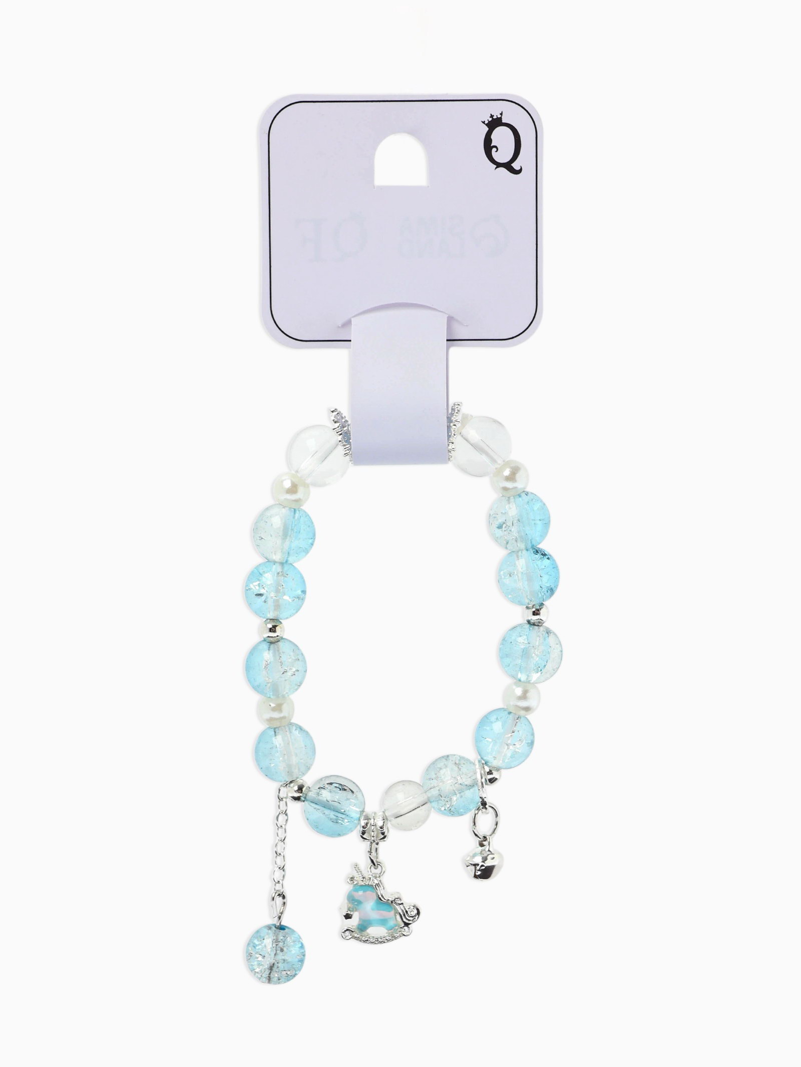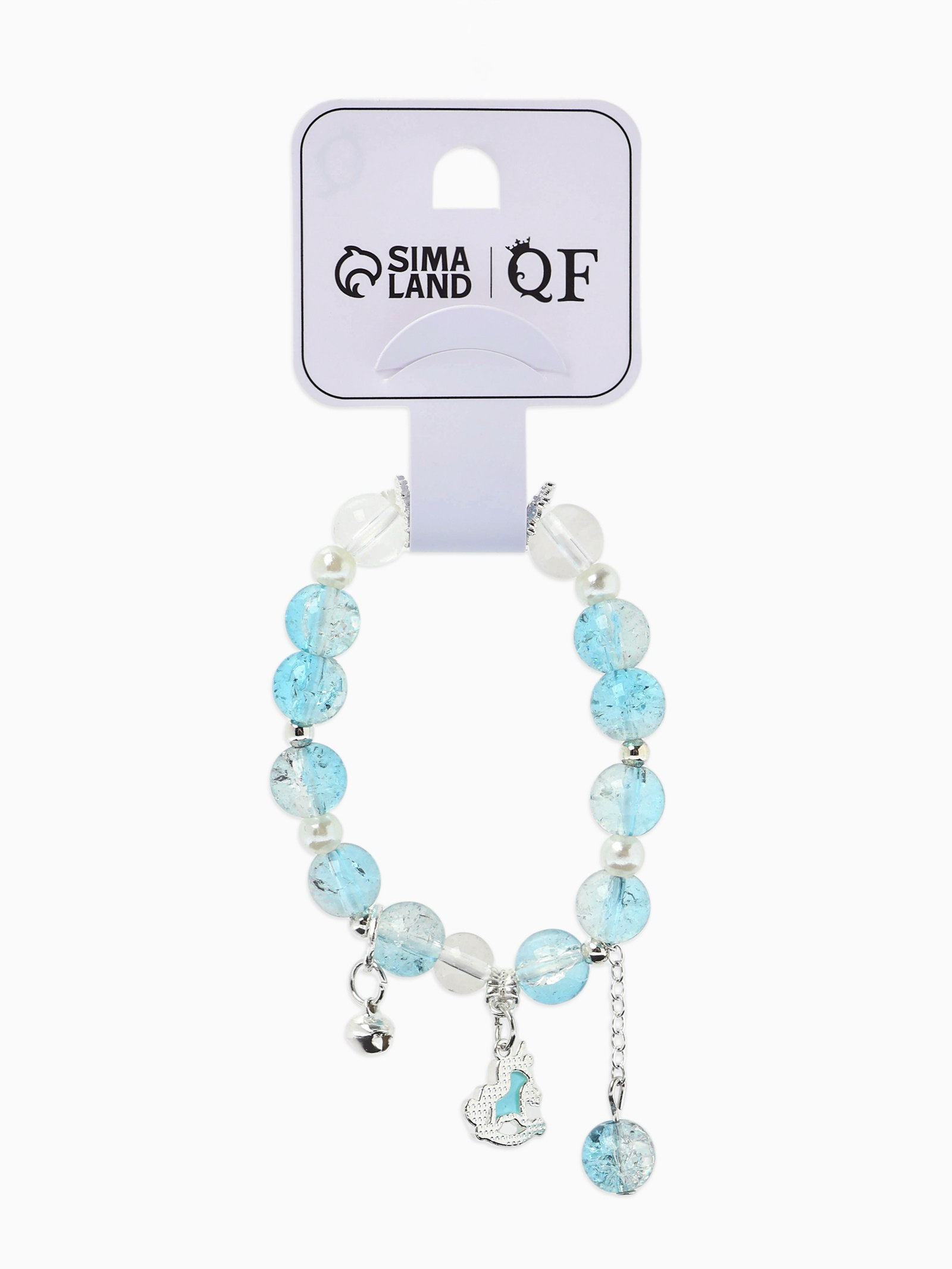 Браслет с подвесками "Сахарный. лошадка", шар №10/8, бело-голубой в серебре, 2.5x6x1 см., QF, Китай