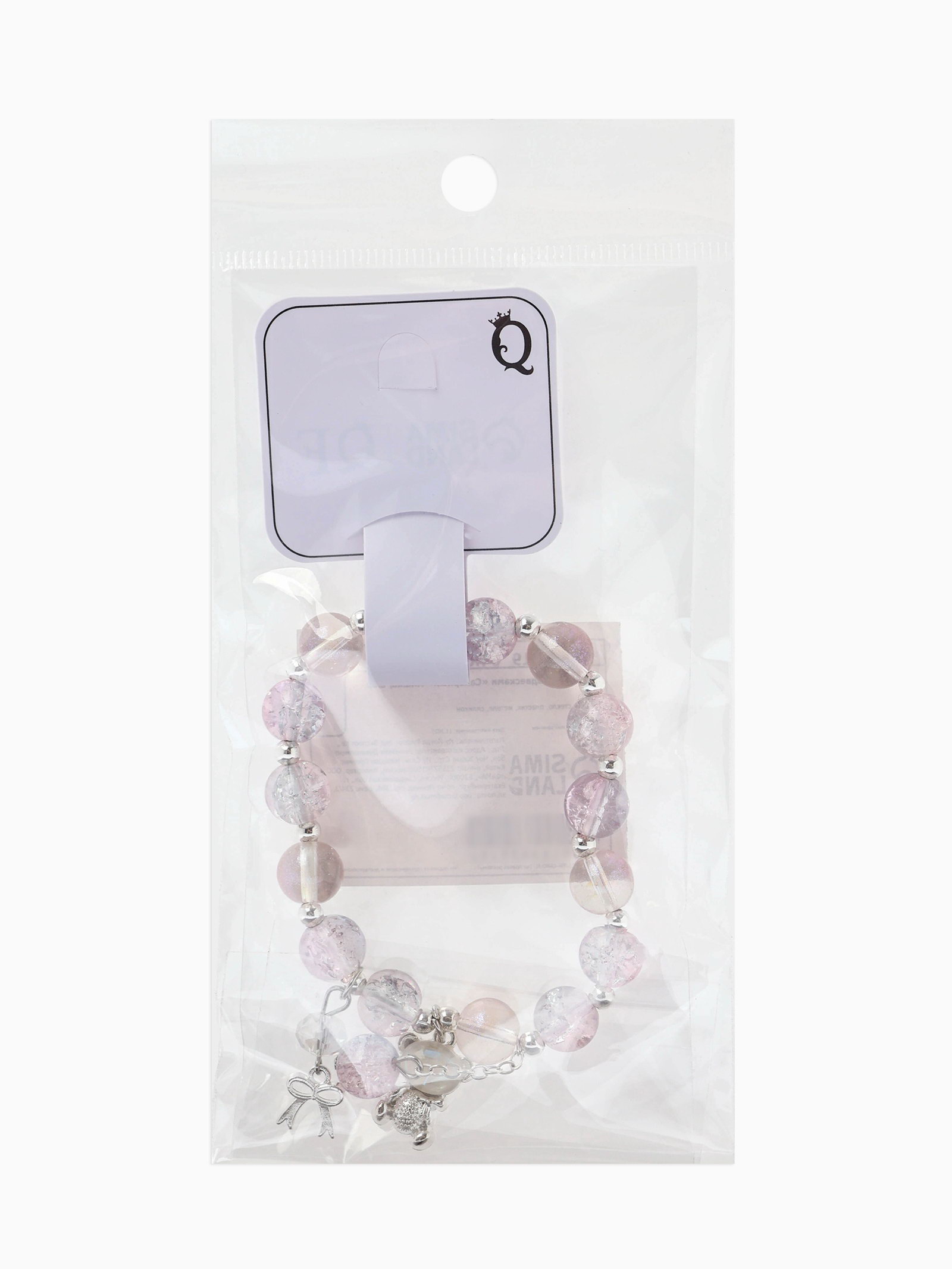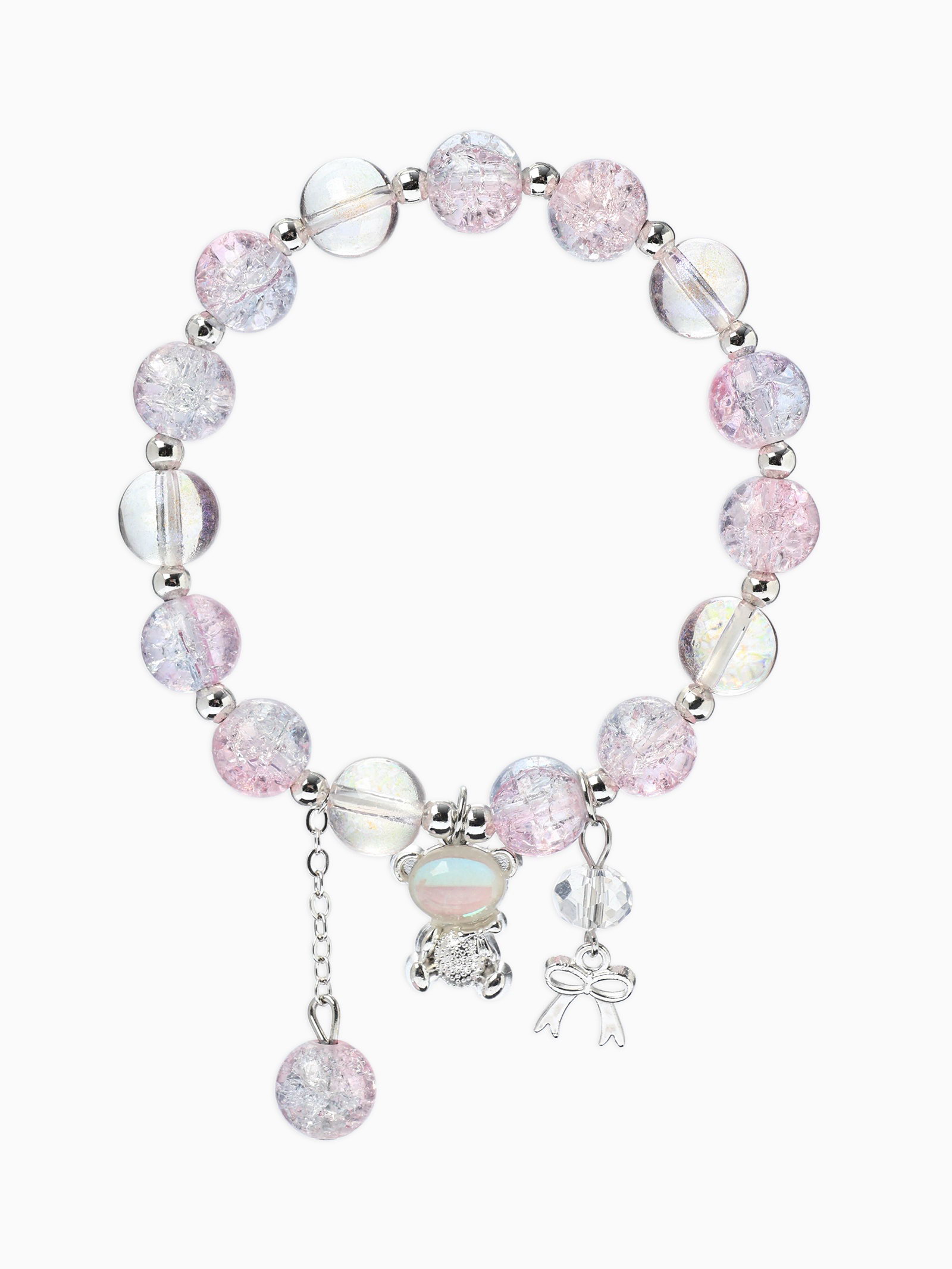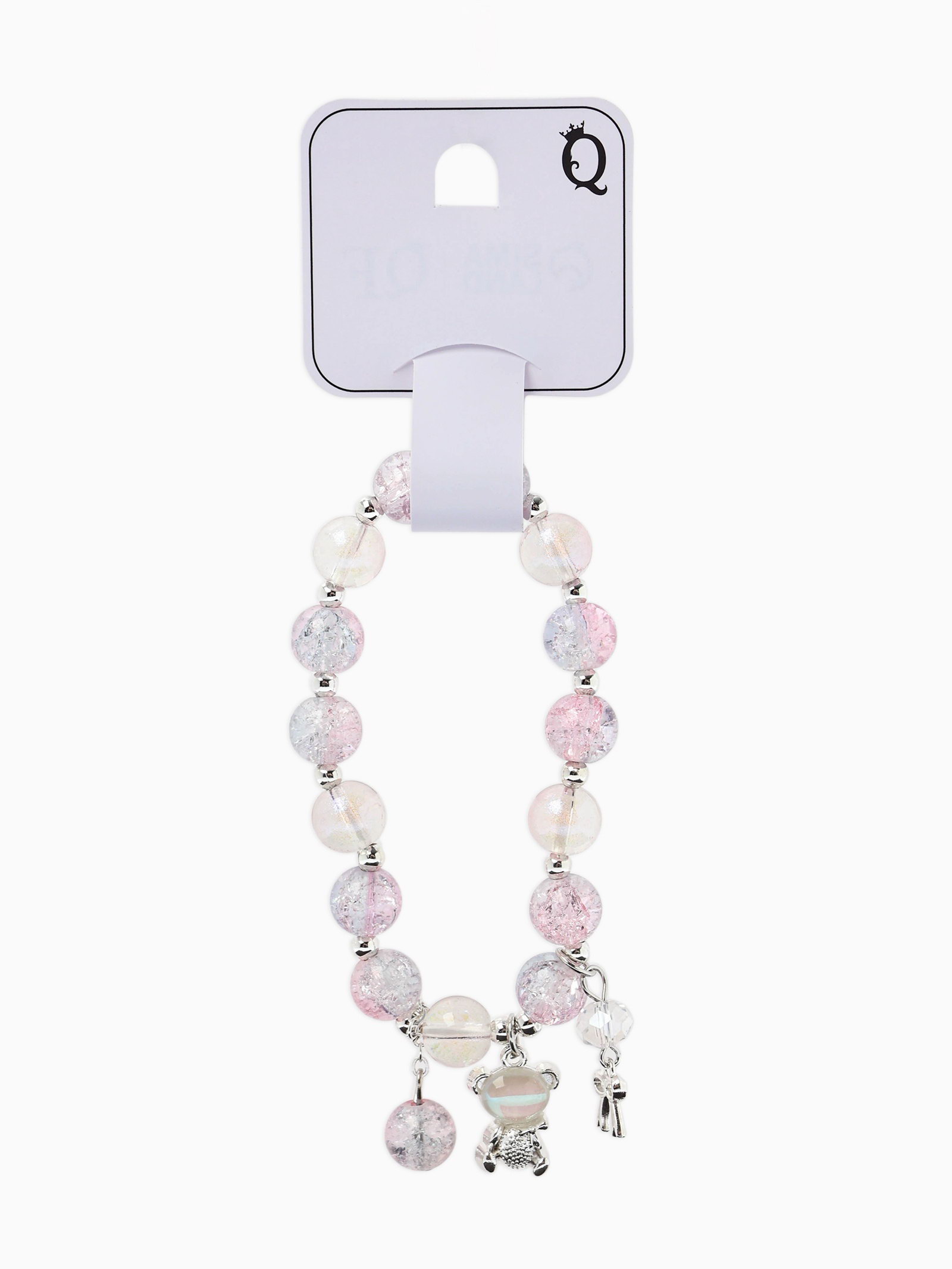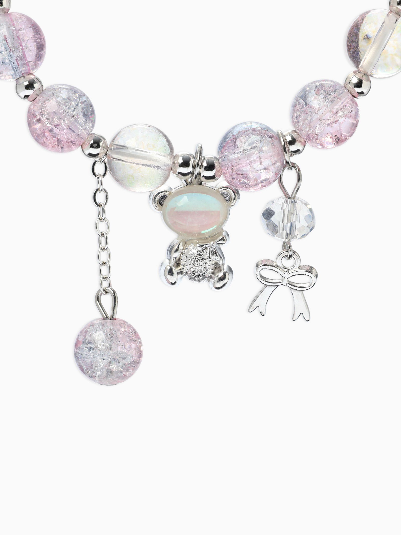Браслет с подвесками "Сахарный. Мишка", шар №10/8, розовый, синий в серебре, 4x6x1.5 см., QF, Китай