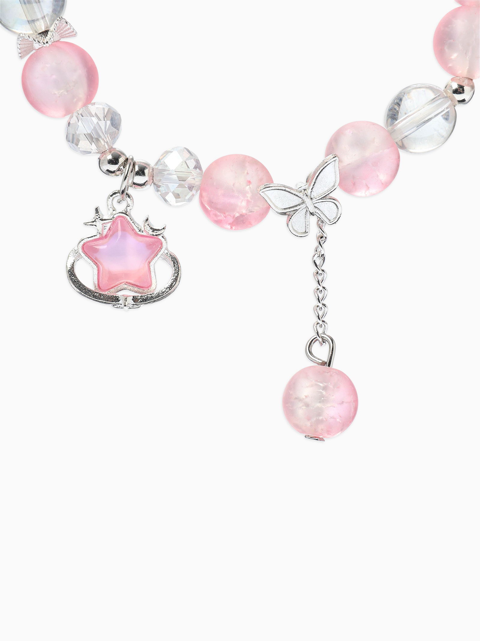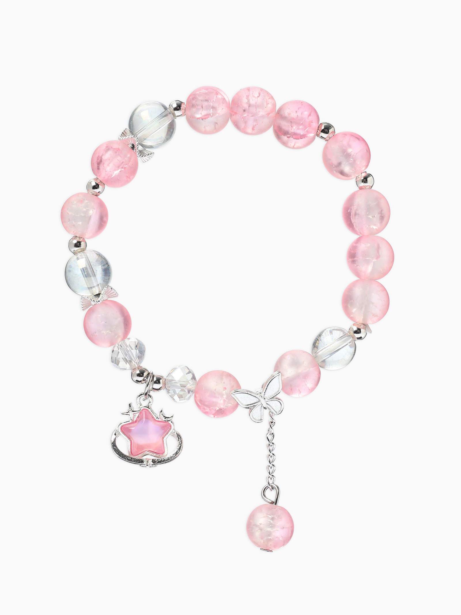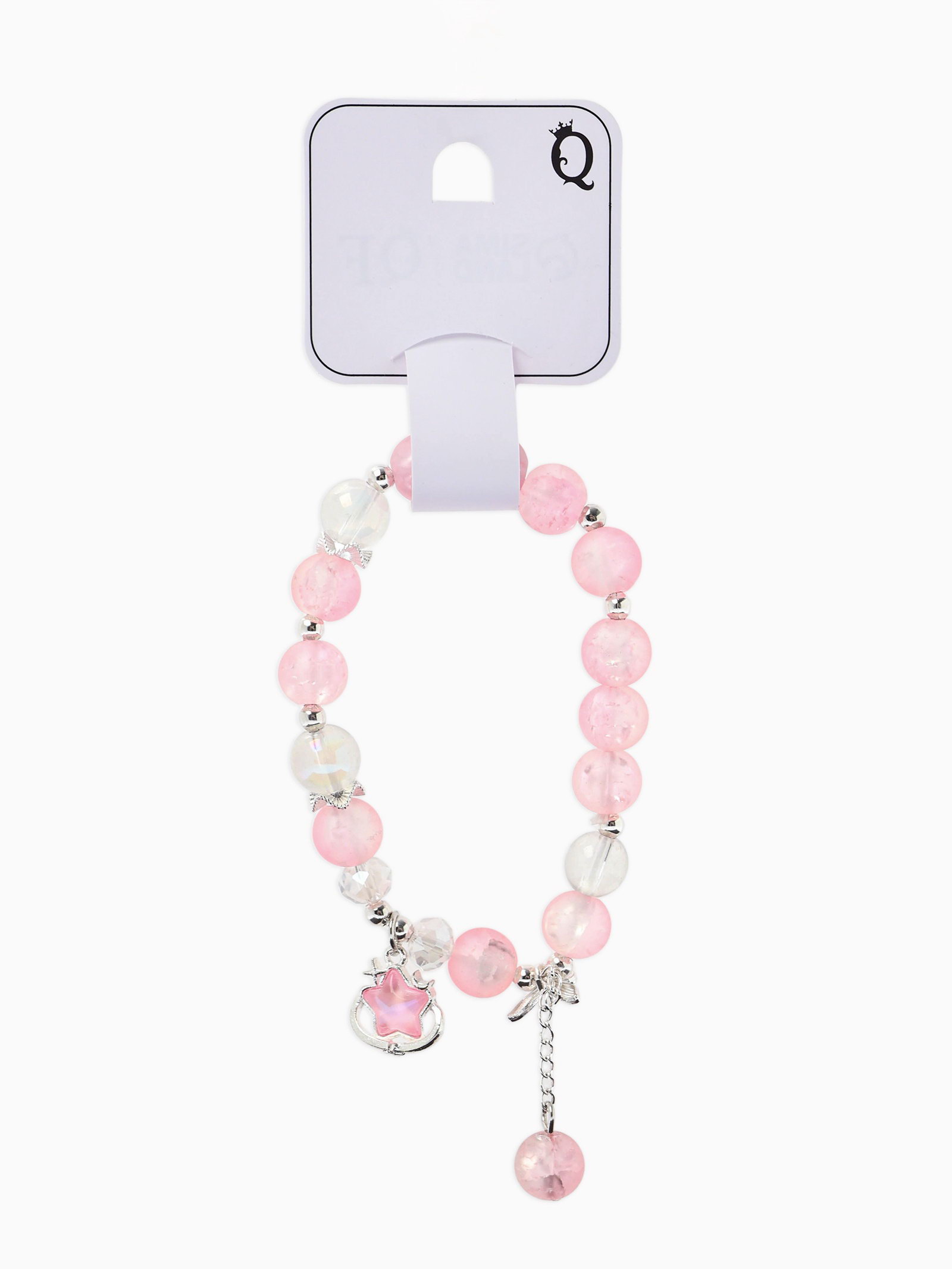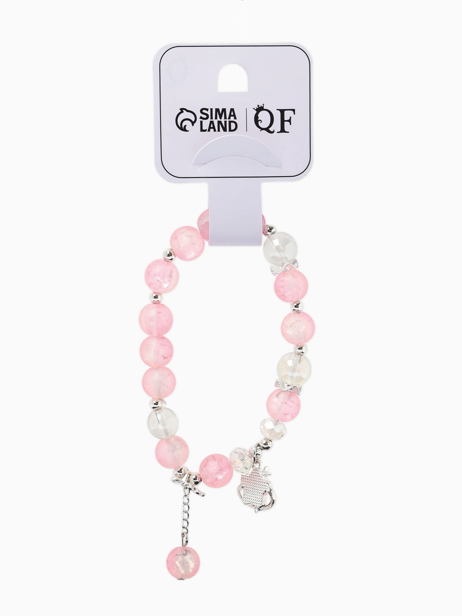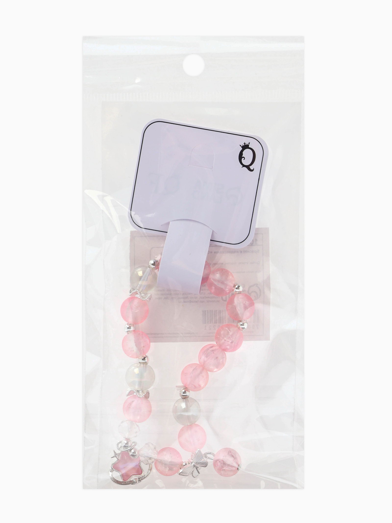 Браслет с подвесками "Сахарный. Звезда", шар №10/8, розовый, белый матовый в серебре, 4x6x2.5 см., QF, Китай