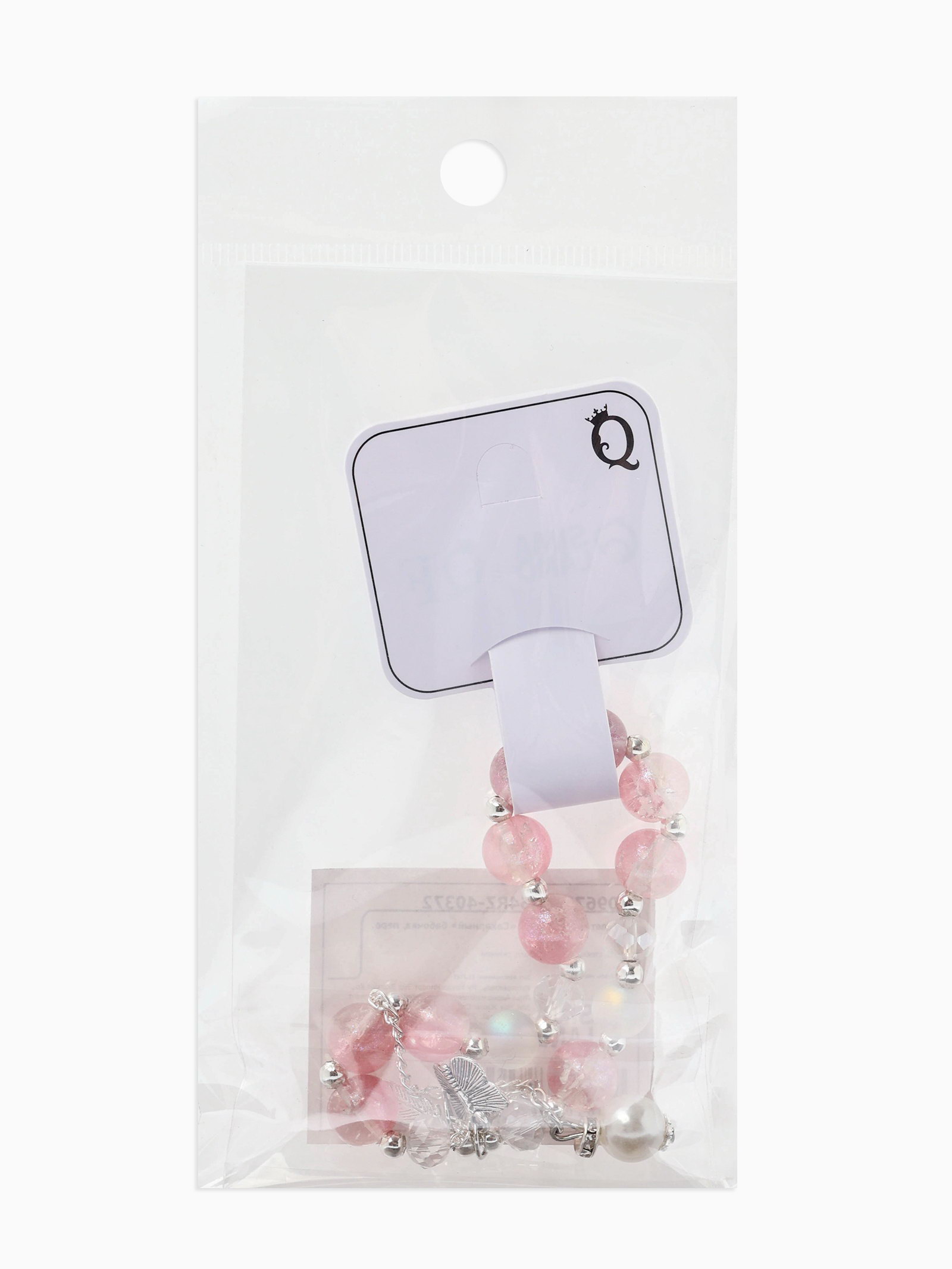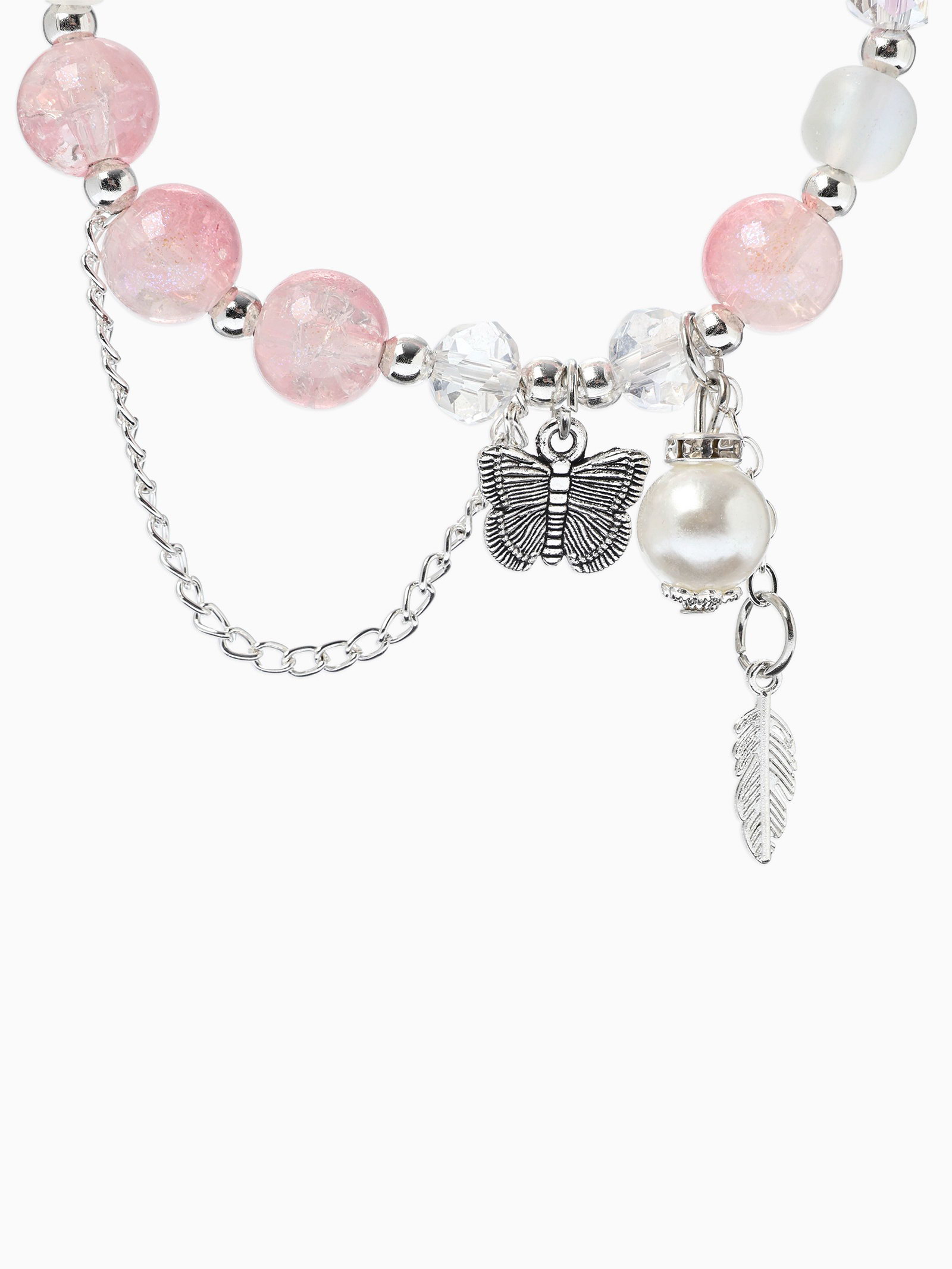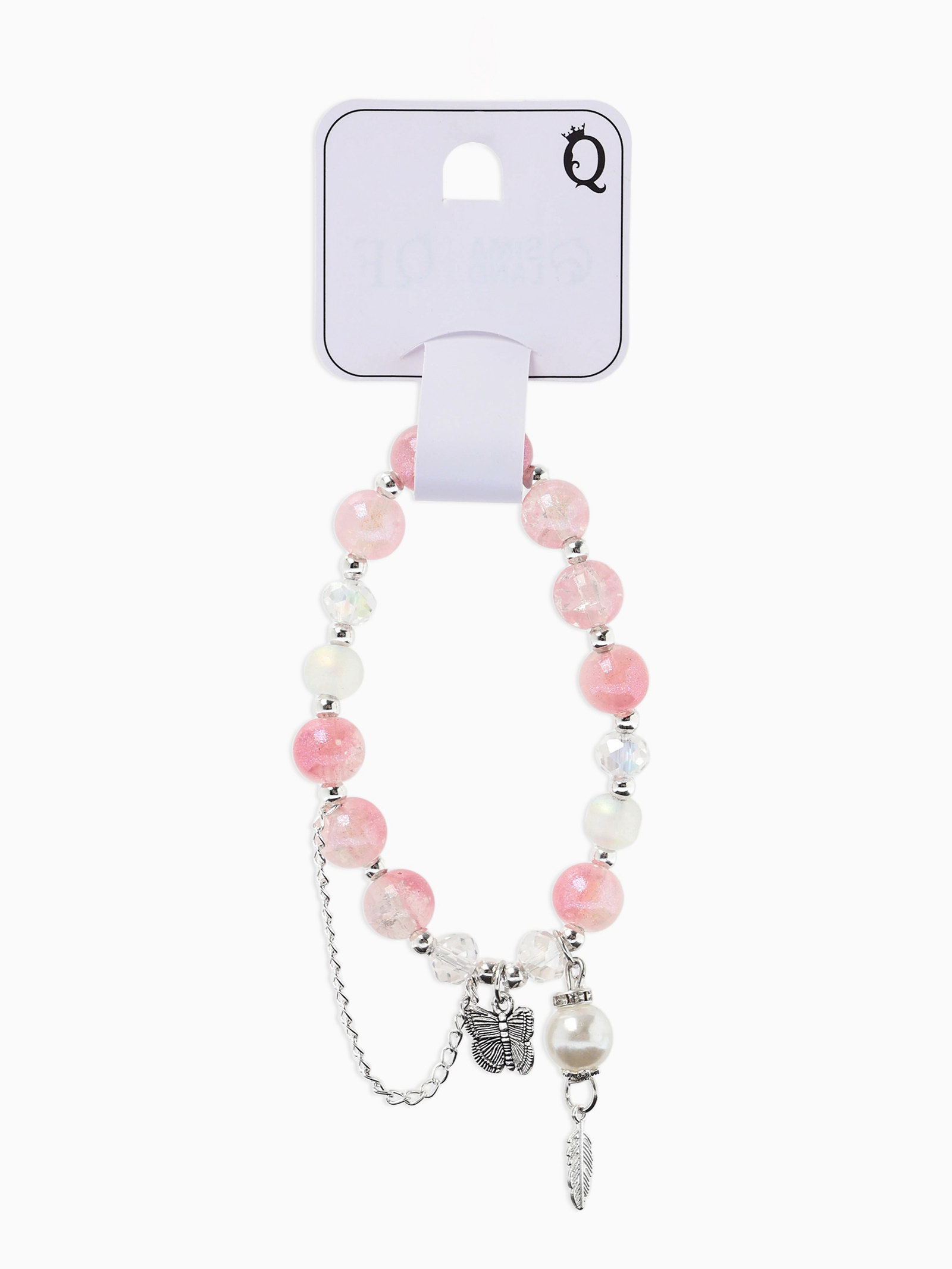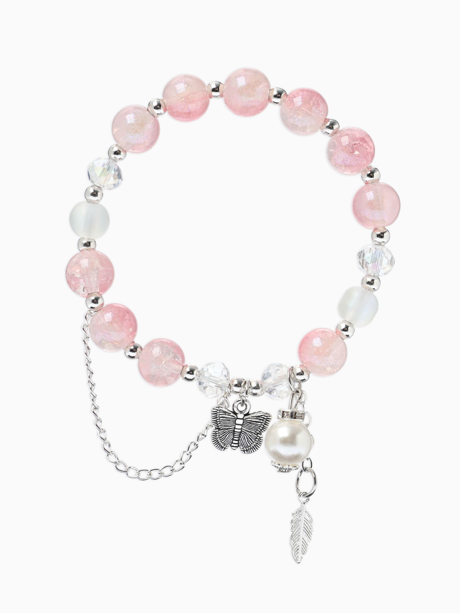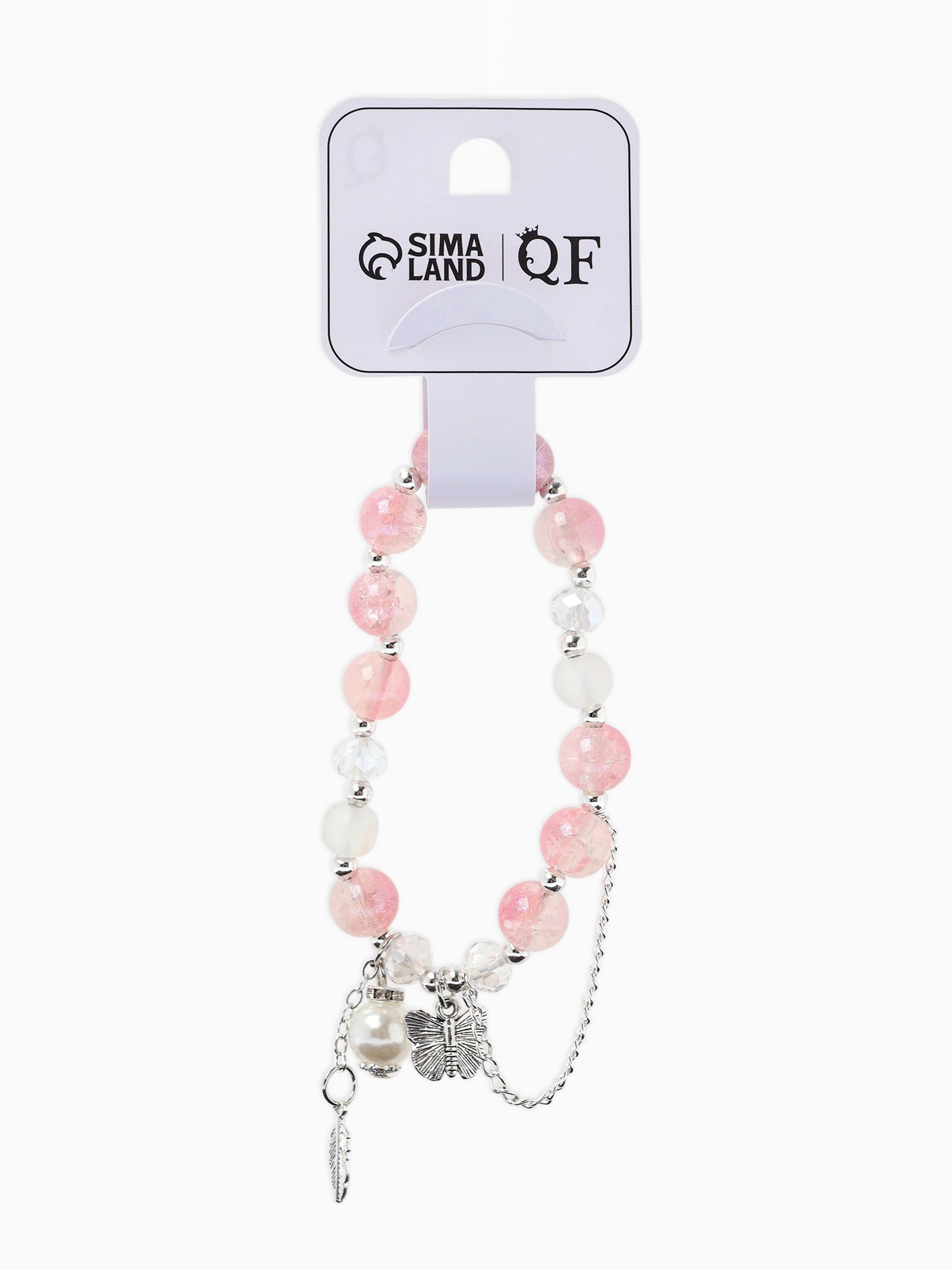 Браслет с подвесками "Сахарный. Бабочка и перо", шар № 10/8, розовый в серебре, 3.5x6x1.5 см., QF, Китай