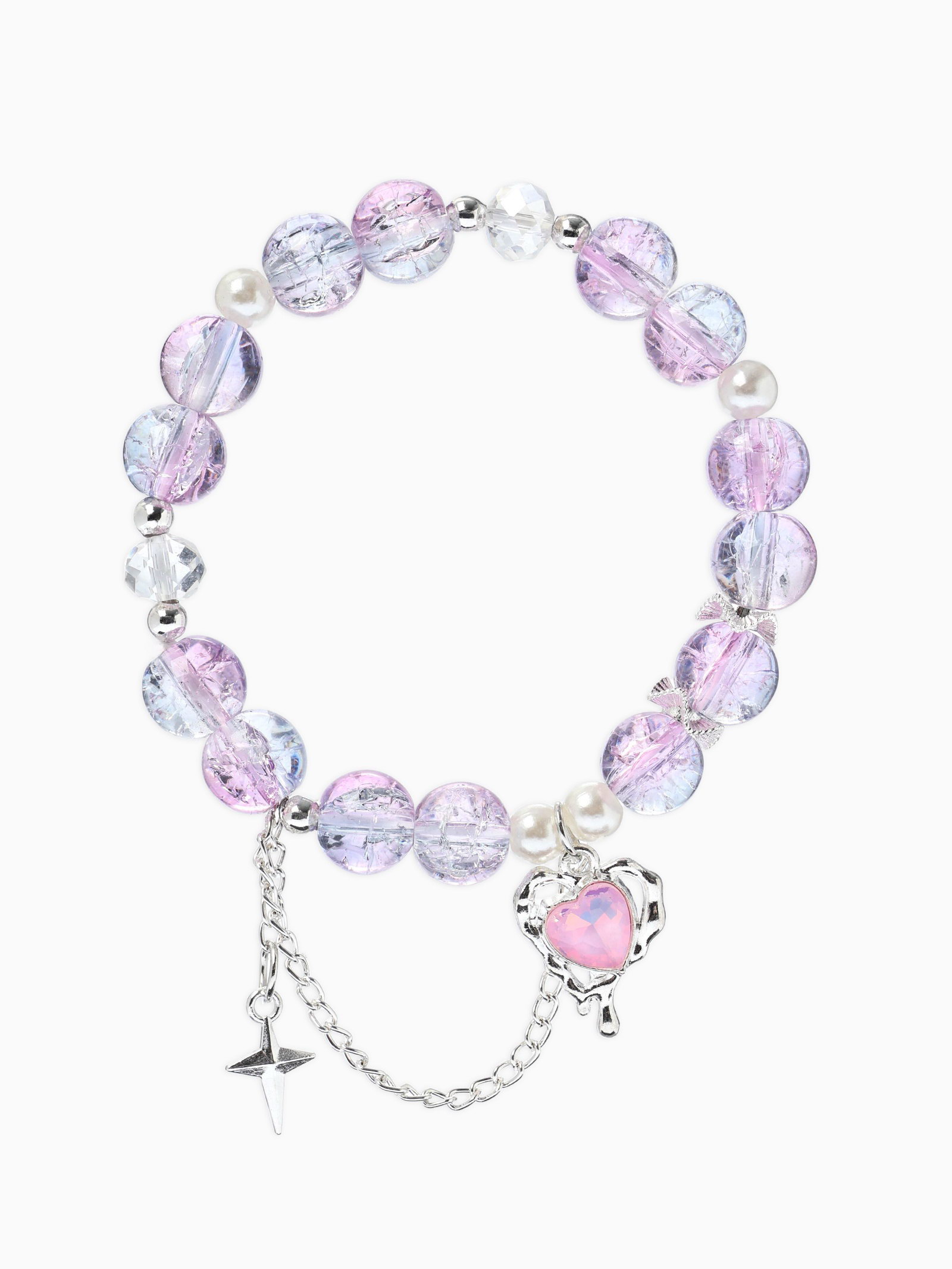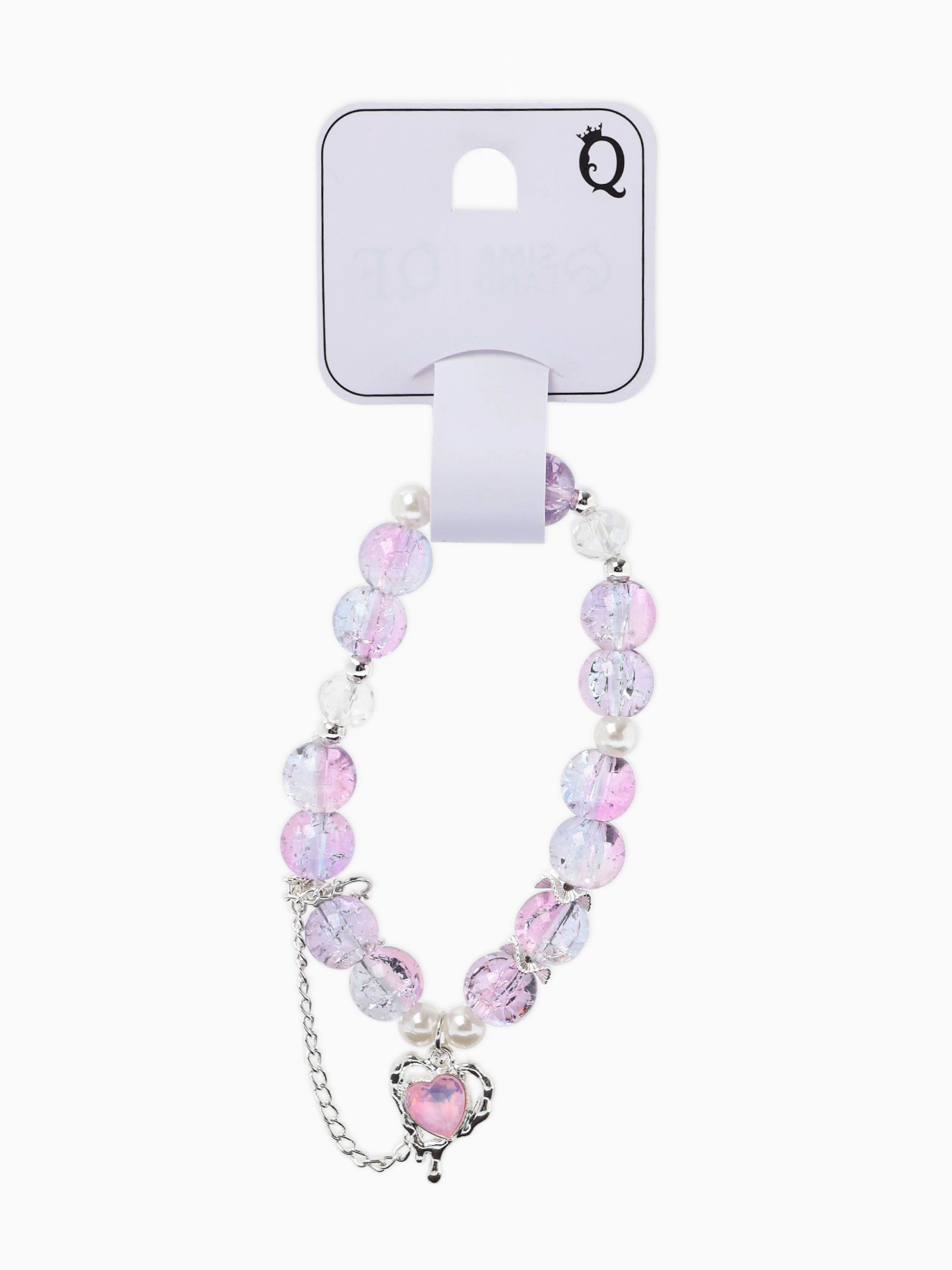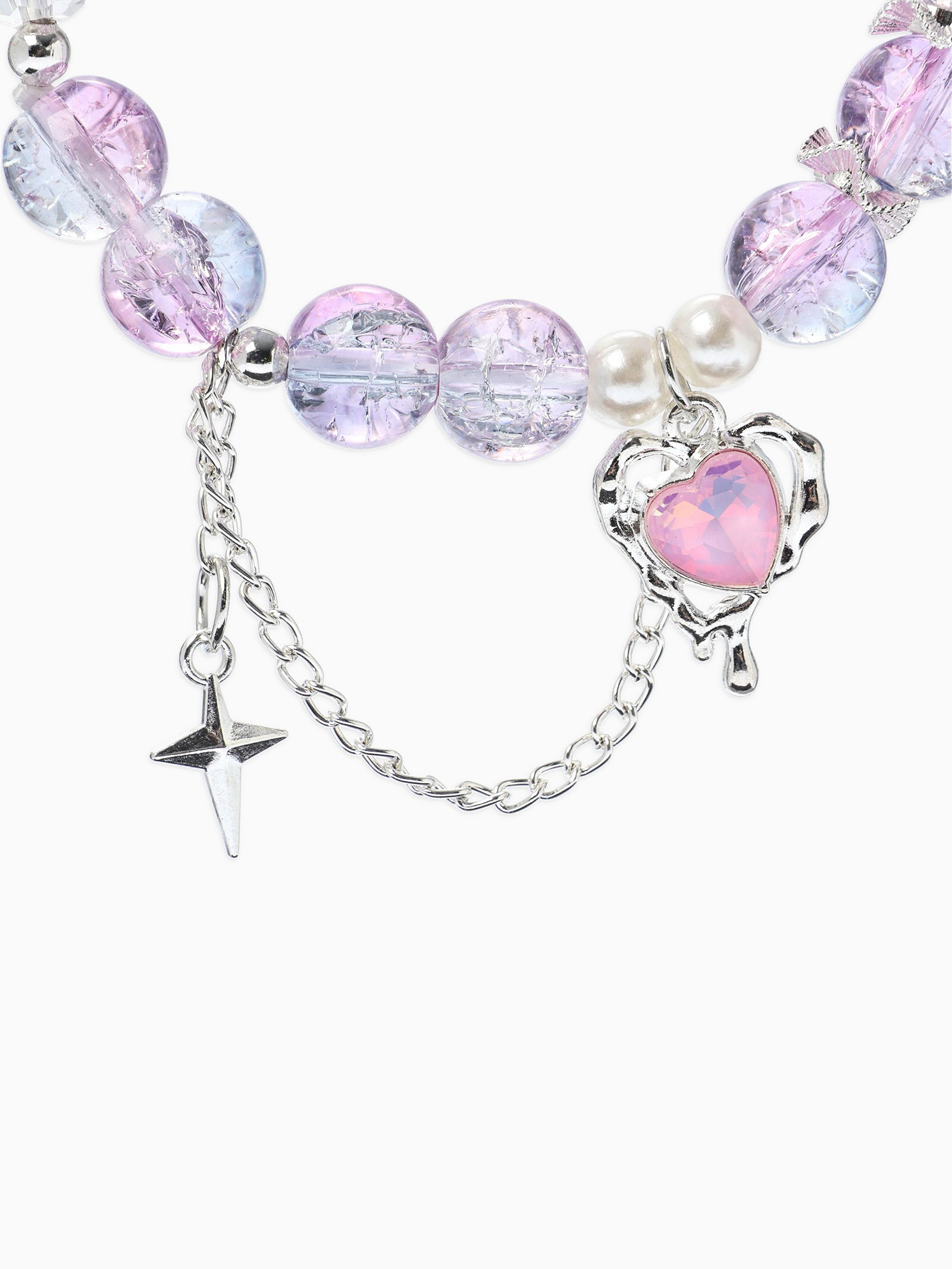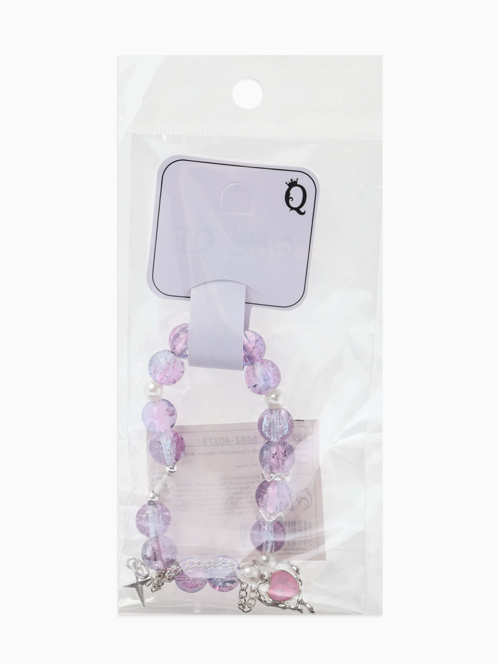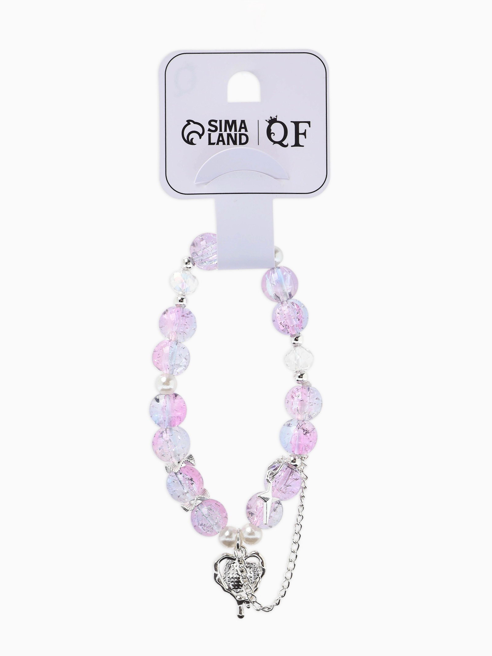 Браслет с подвесками "Сахарный. Сердце, искра", шар № 10/8, розовый, фиолетовый в серебре, 4.5x6x1.3 см., QF, Китай