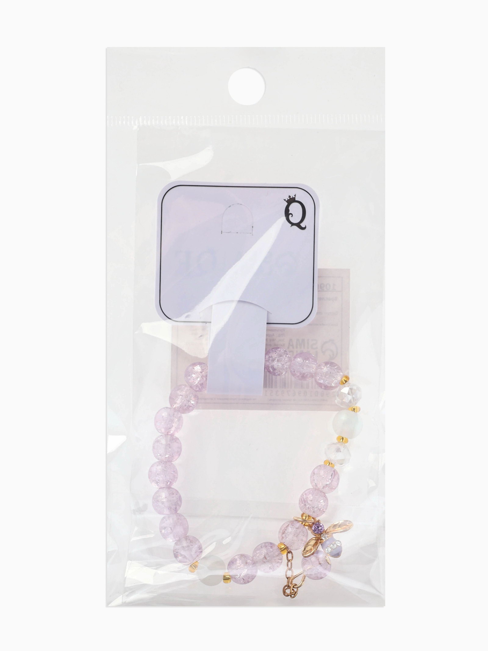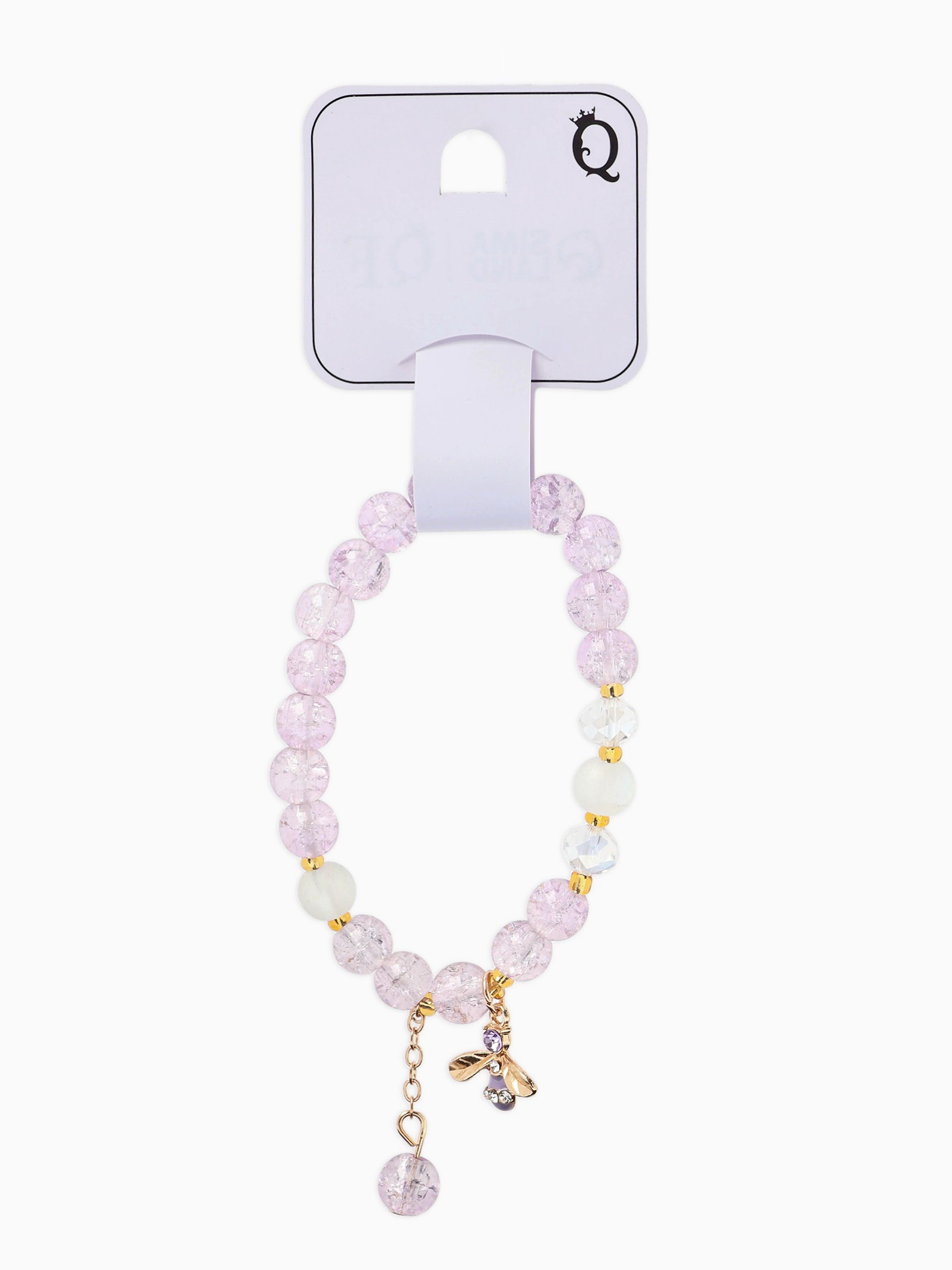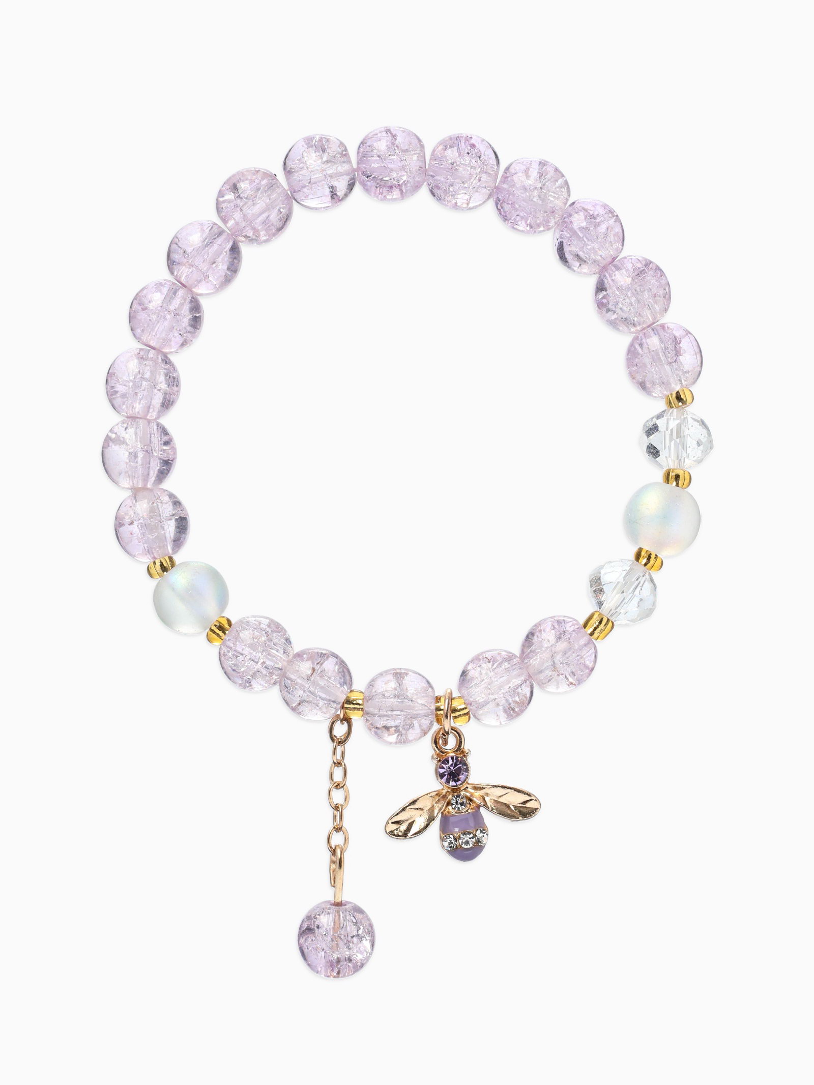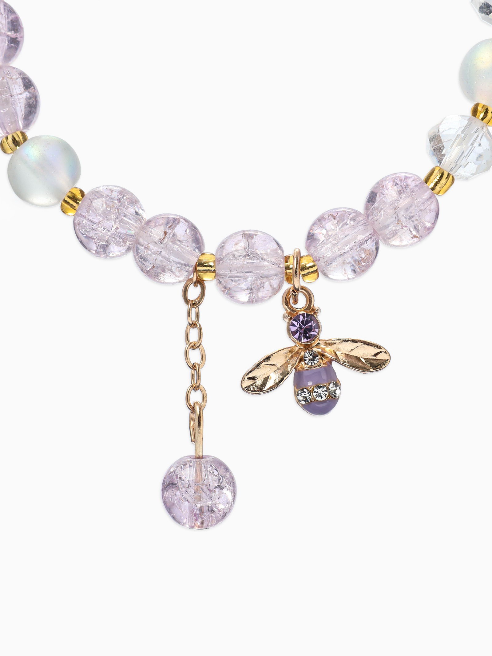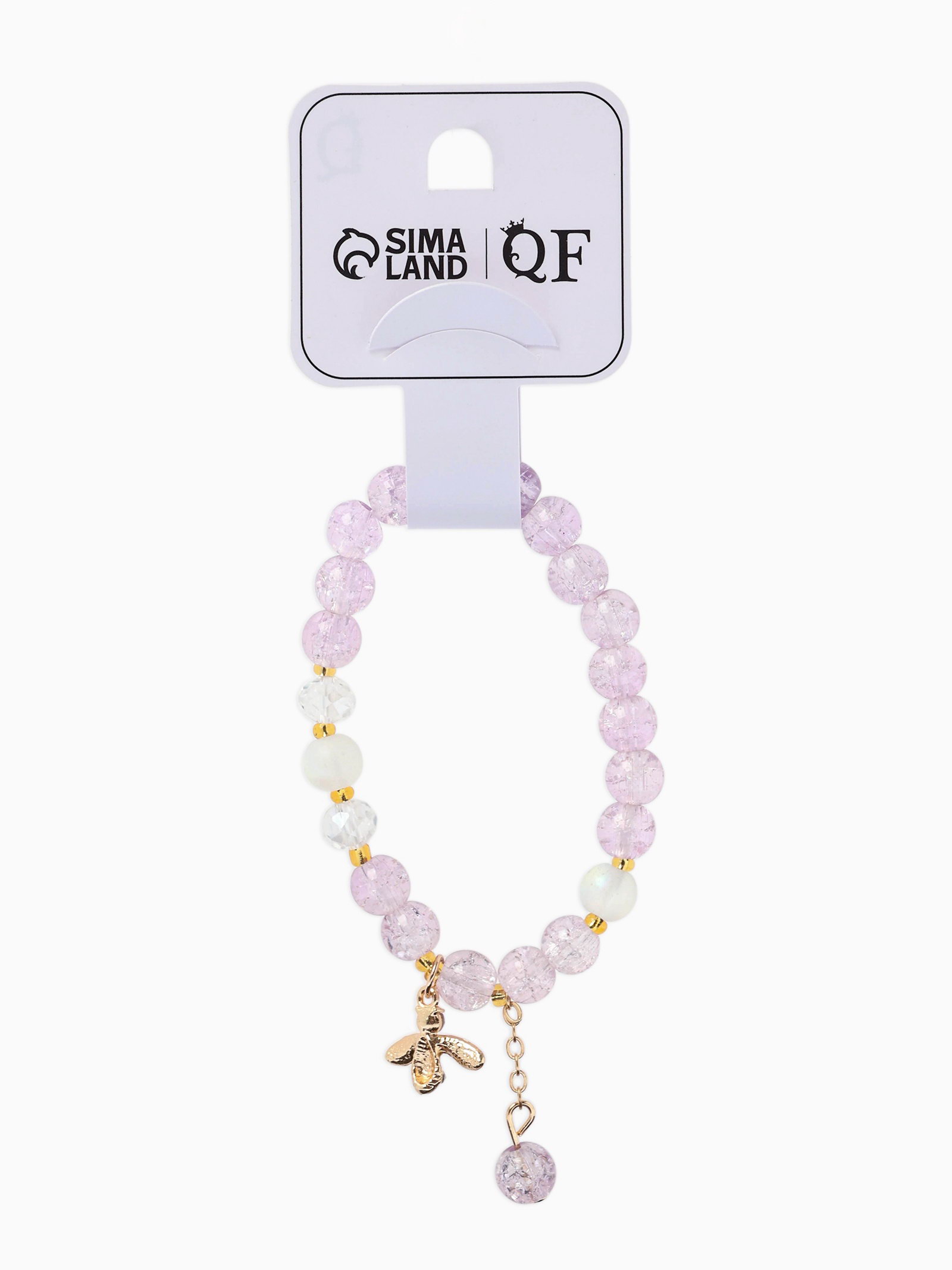Браслет с подвесками "Сахарный. Пчёлка", шар №8, фиолетовый в золоте, 4x6x1.6 см., QF, Китай