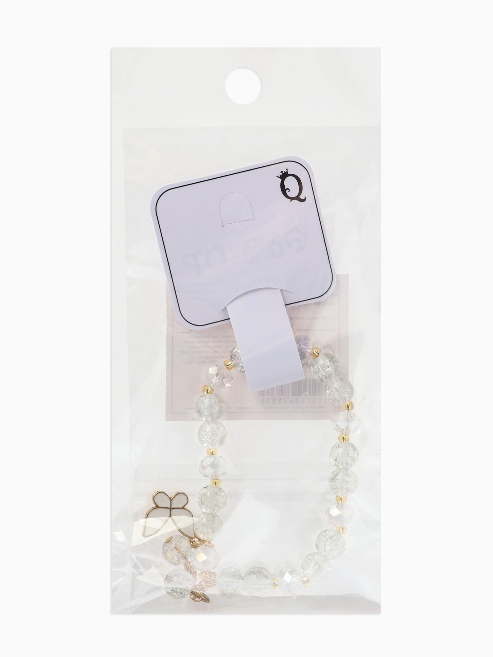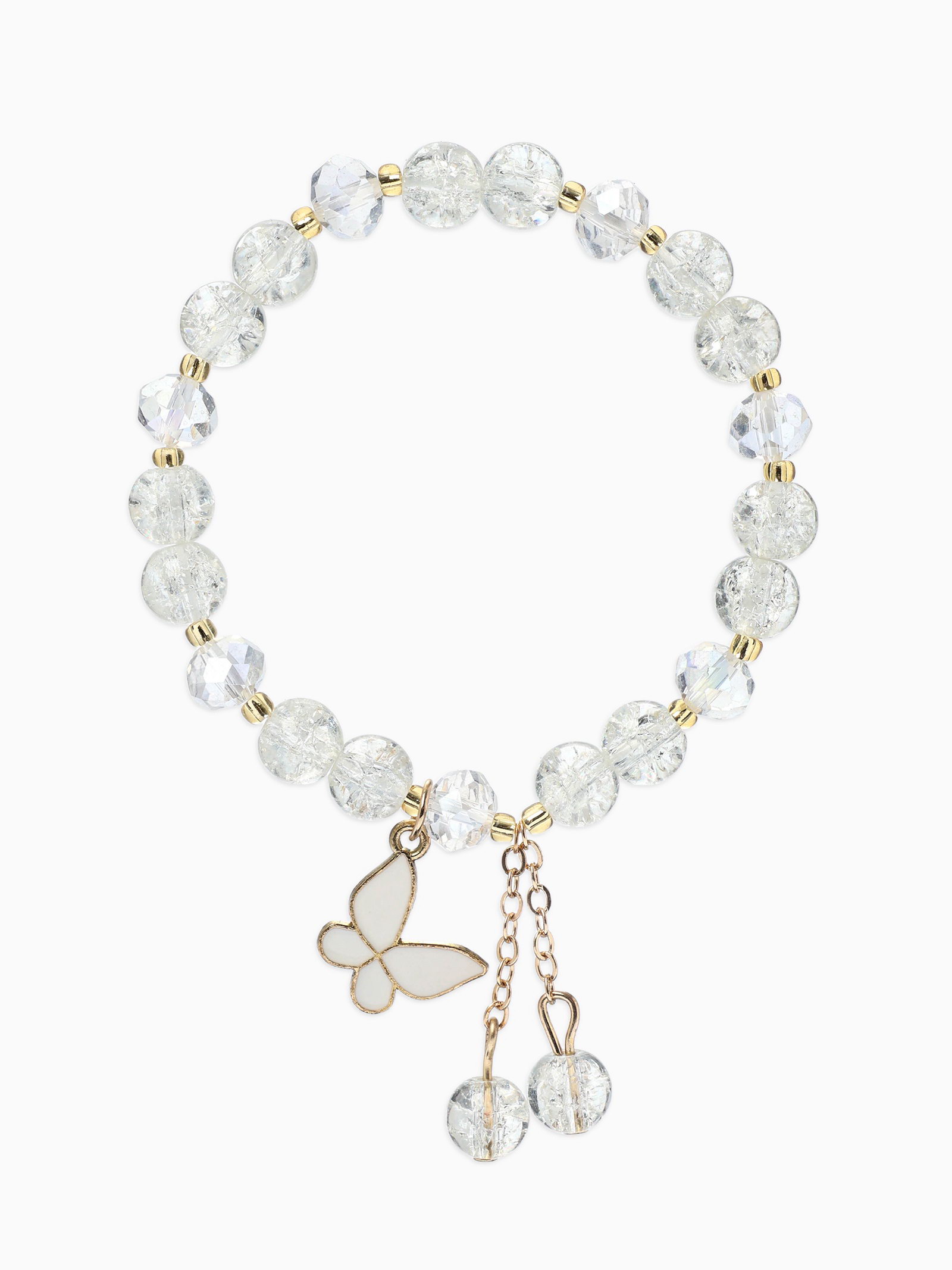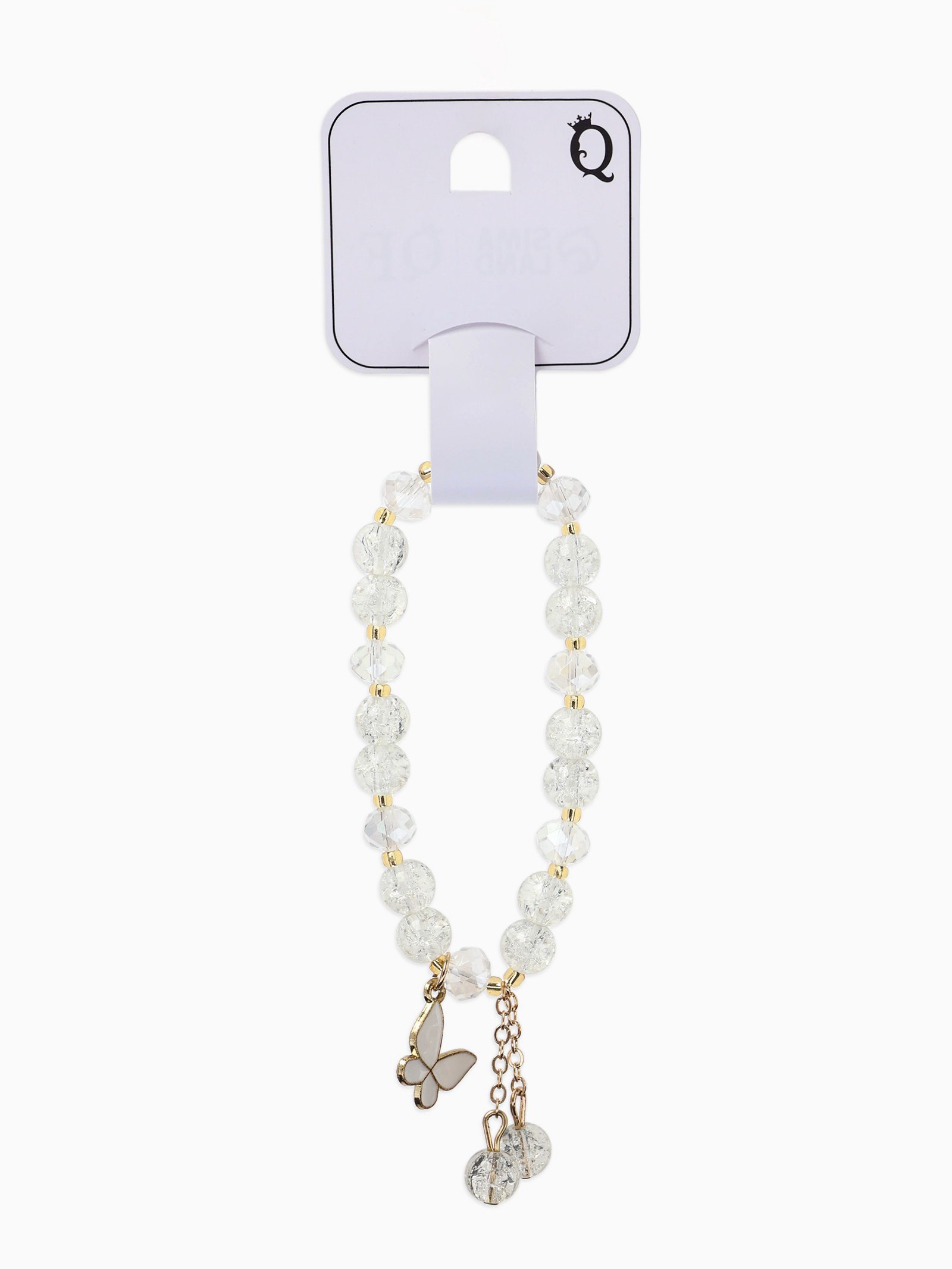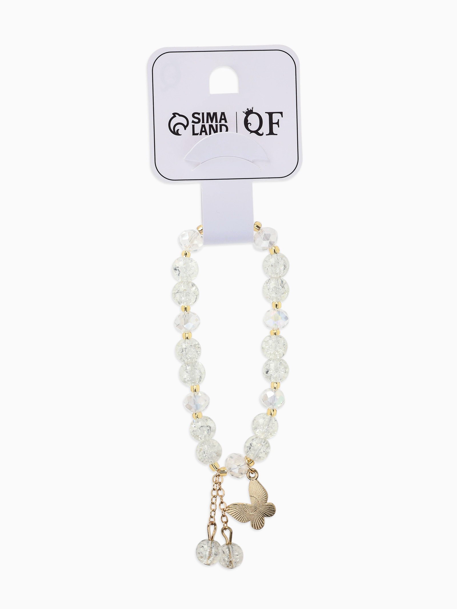 Браслет с подвесками "Сахарный. Бабочка", шар №8, белый в золоте, 4x6x1.4 см., QF, Китай