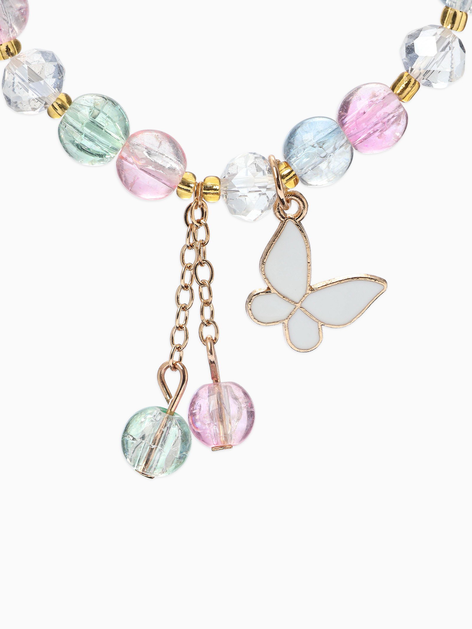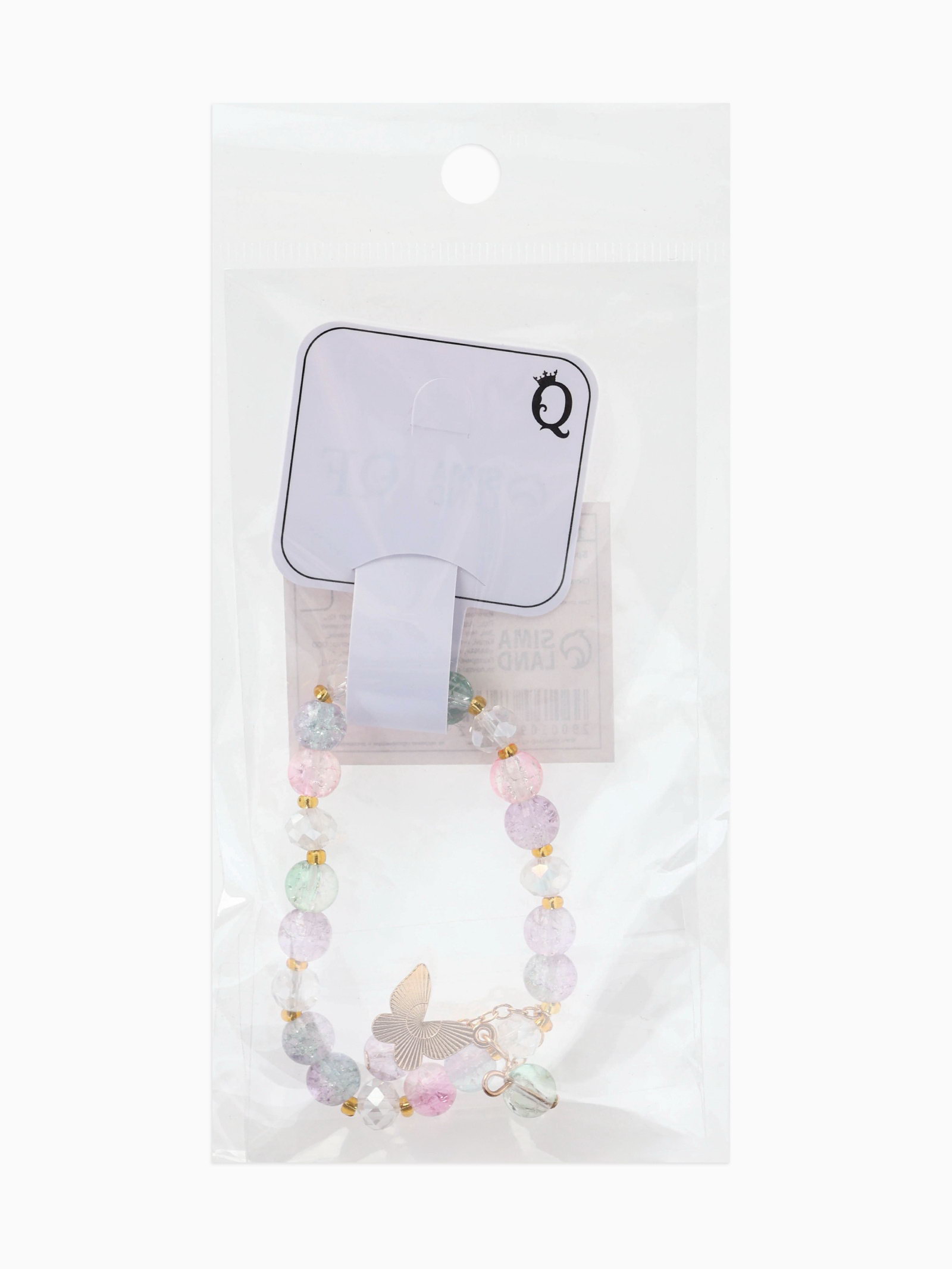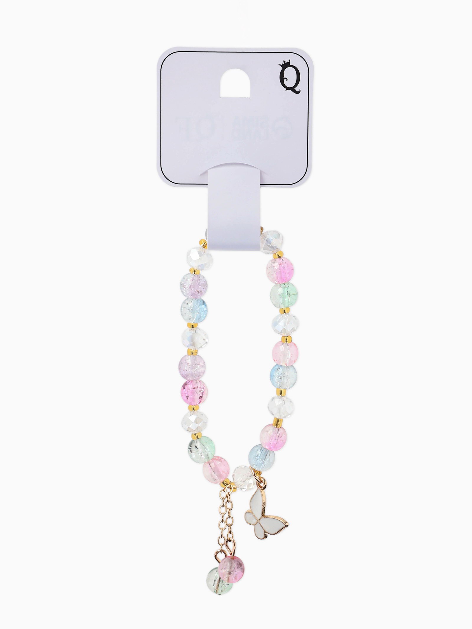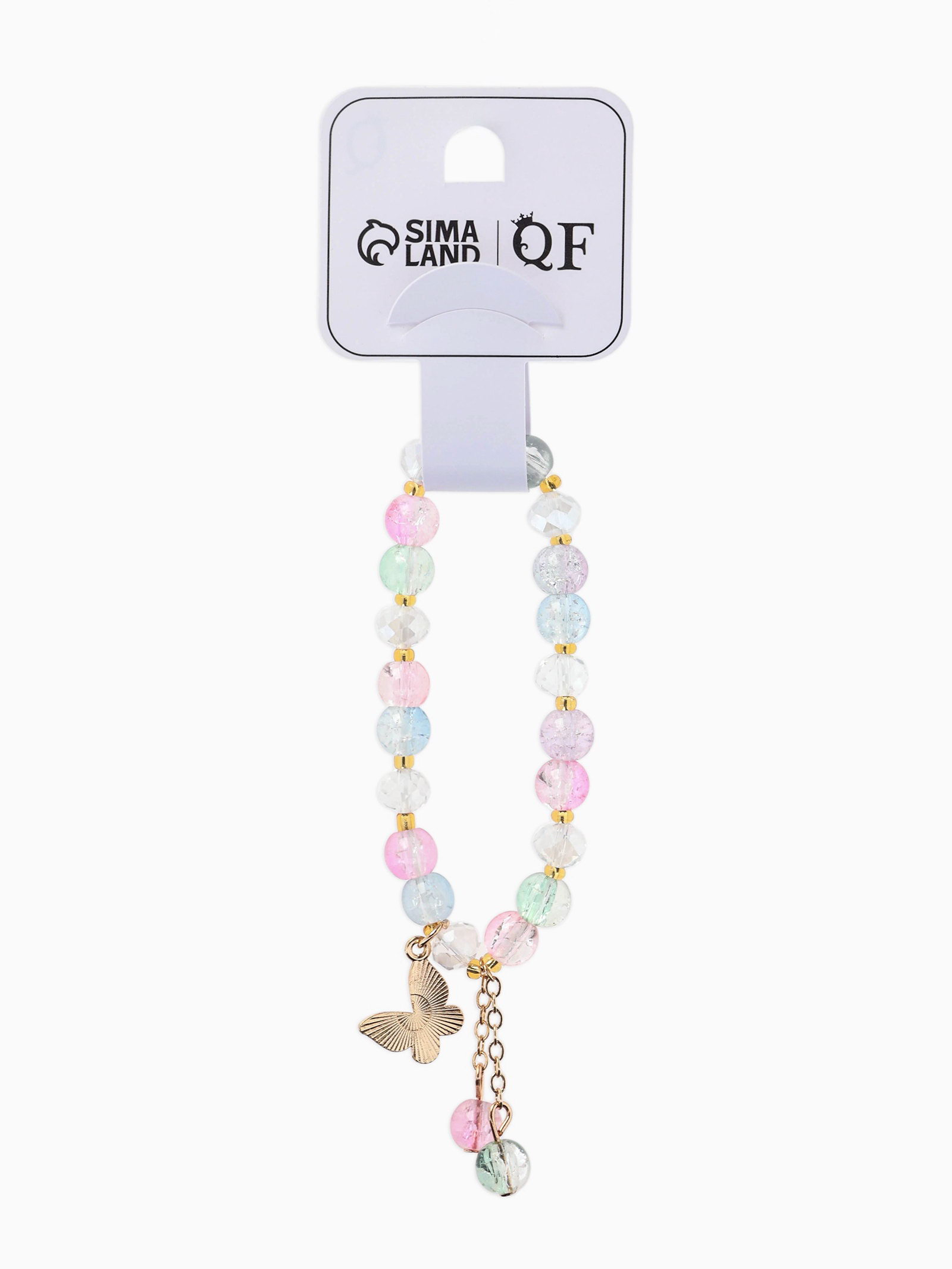 Браслет с подвесками "Сахарный. Бабочка", шар №8, разноцветный в золоте, 4x6x1.4 см., QF, Китай