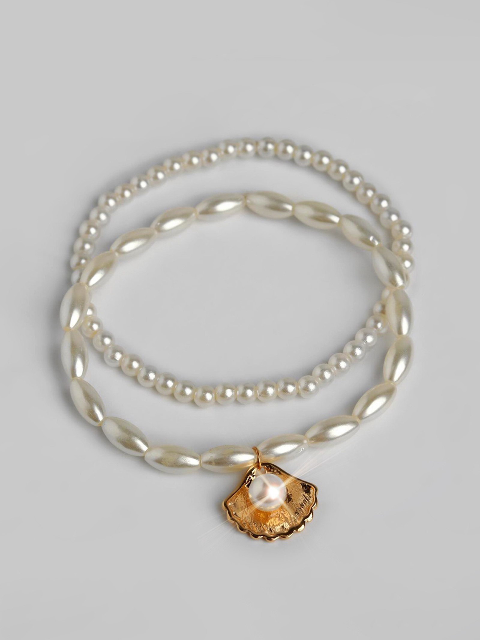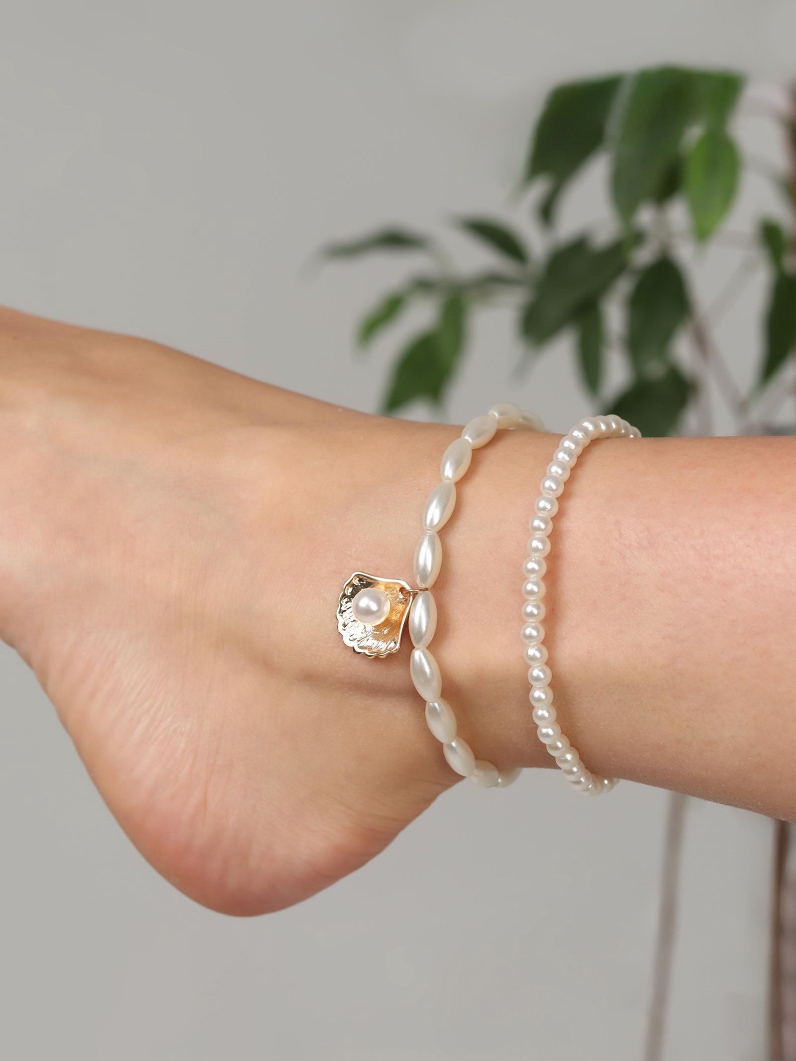 Браслет на ногу Queen Fair "Жемчужина" на ракушке, набор, цвет золото, d=6.5 см, 1.6x6.5x0.5 см., QF, Китай