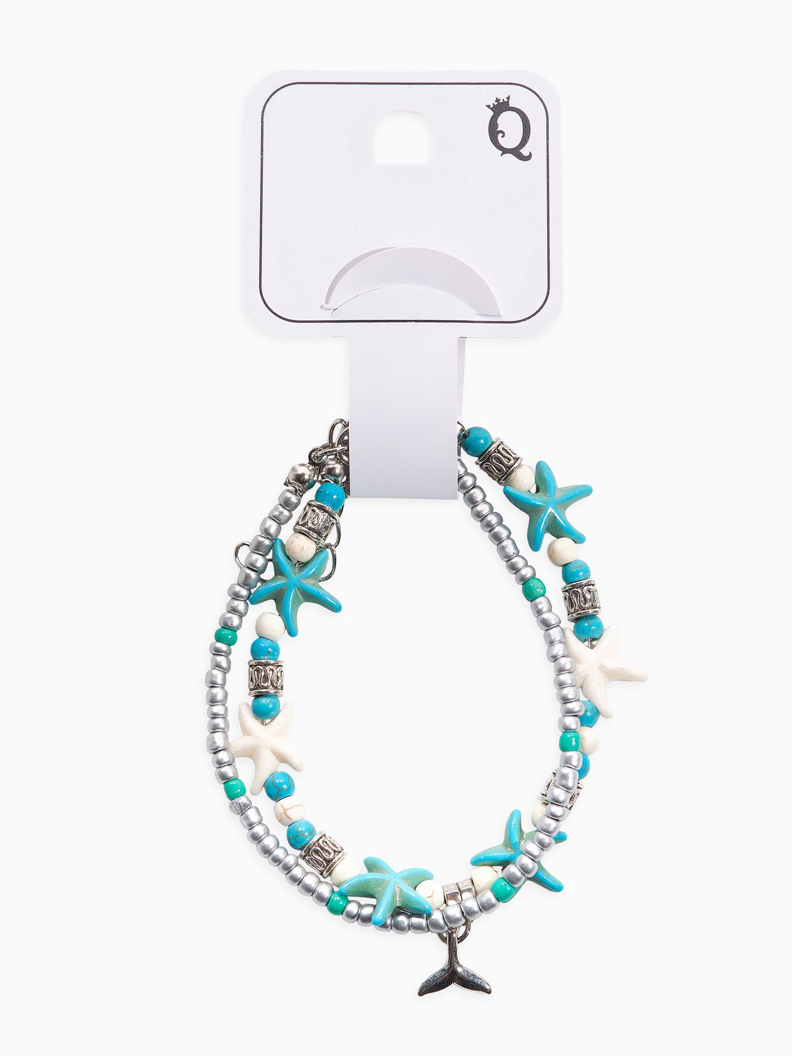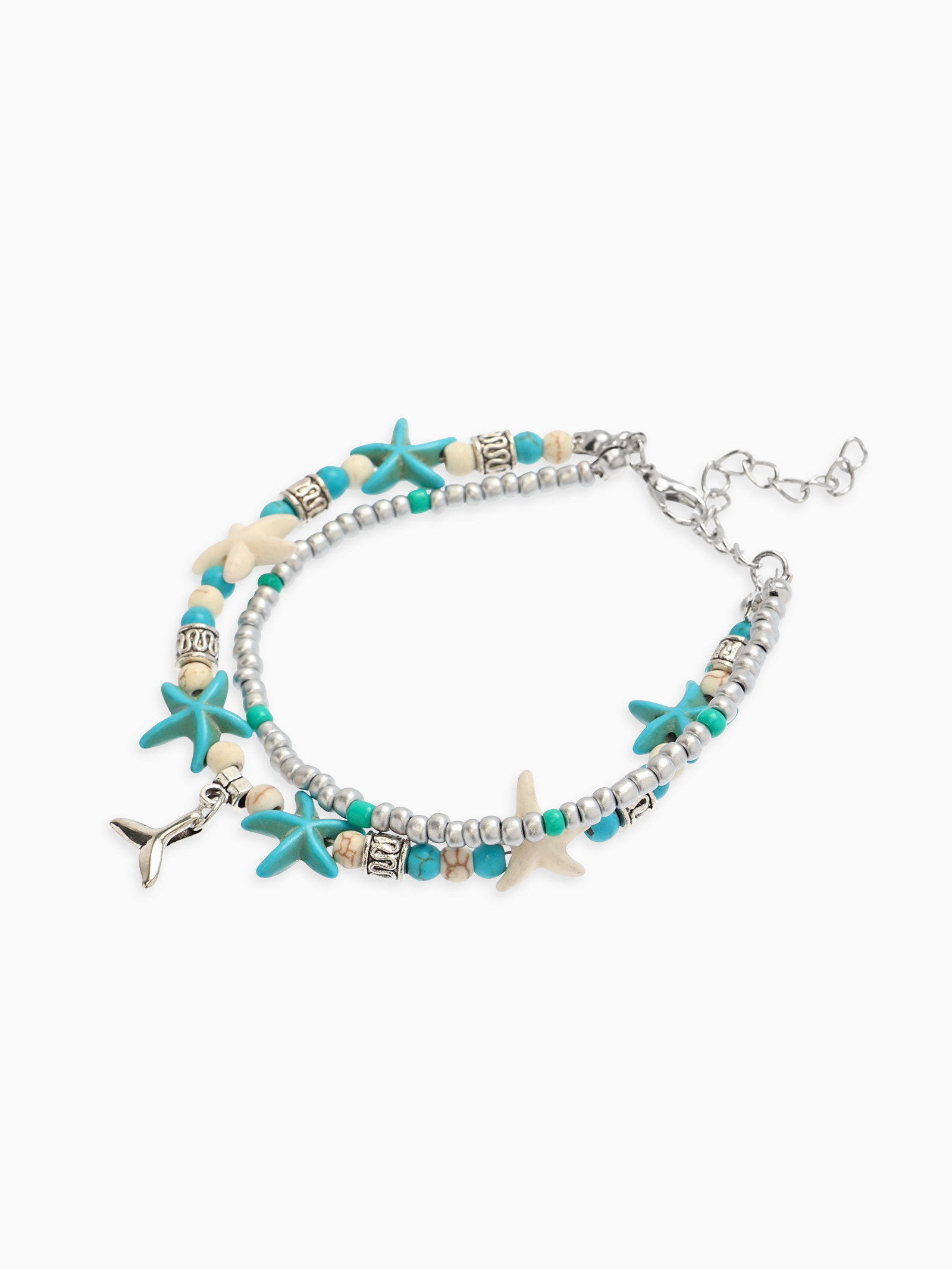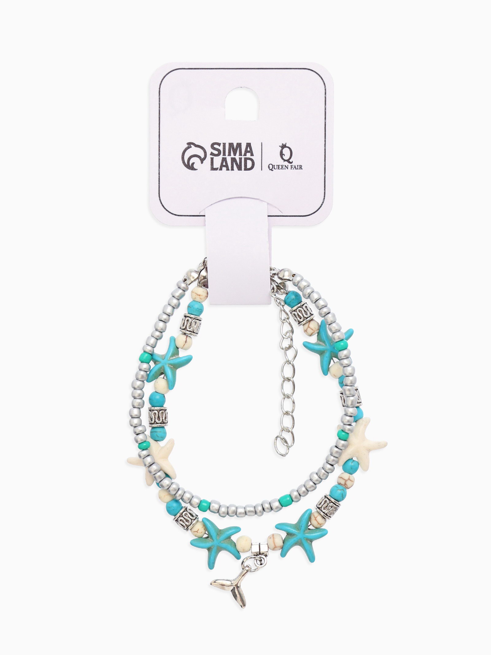Браслет на ногу "Морской" хвостик, цвет бело-голубой в серебре, 25 см + удлинитель 5 см, 0.5x25x0.5 см., QF, Китай