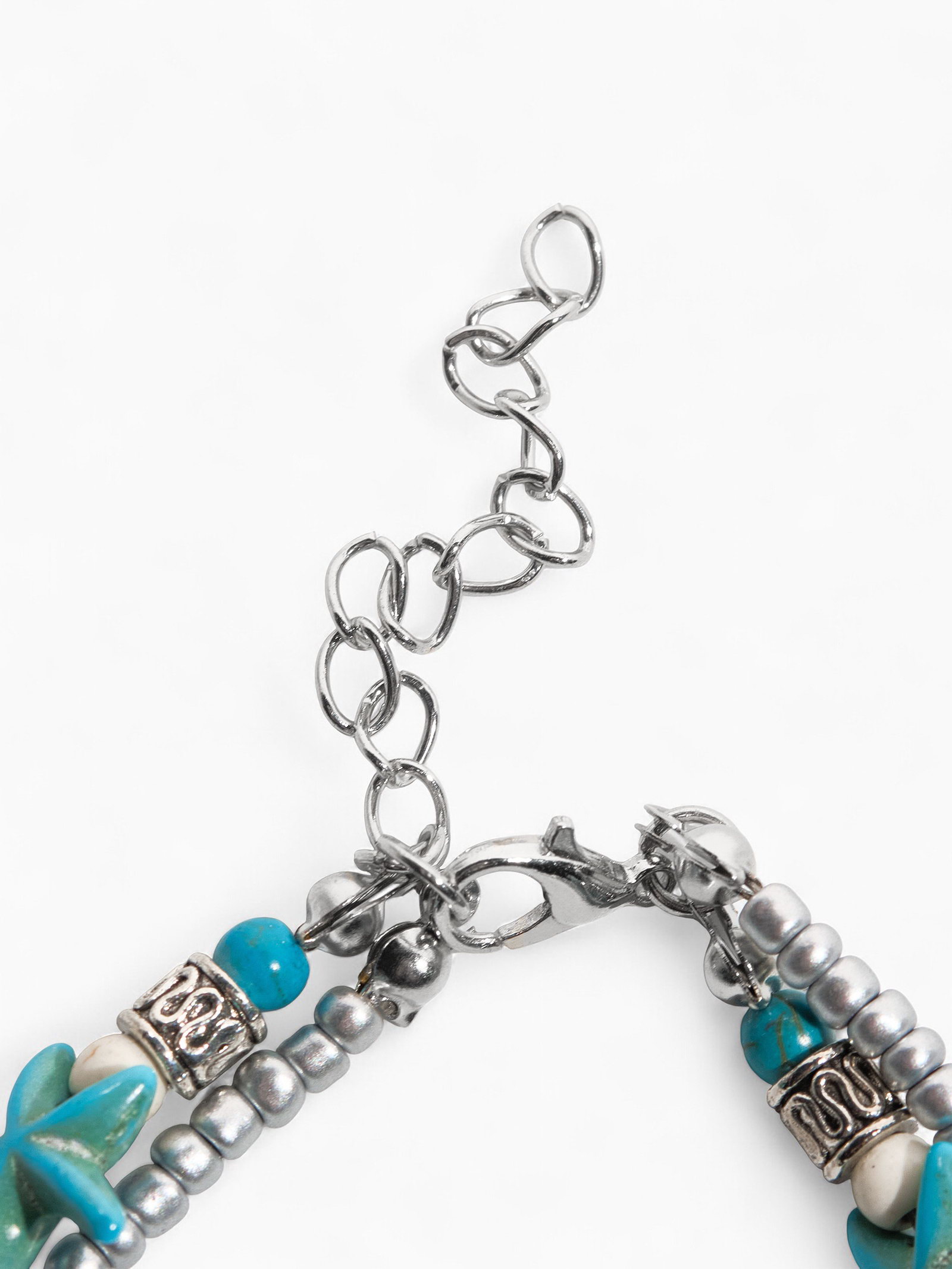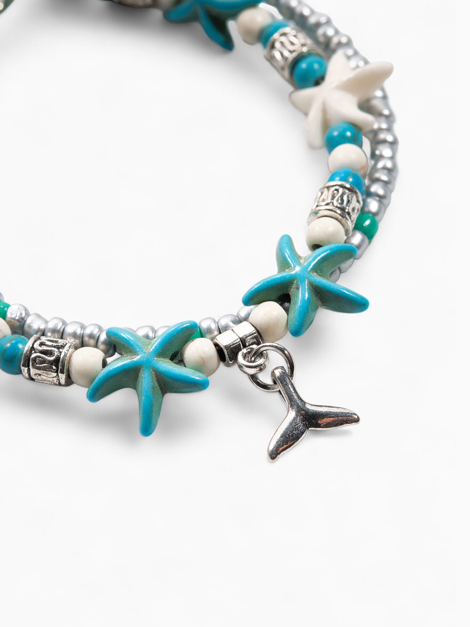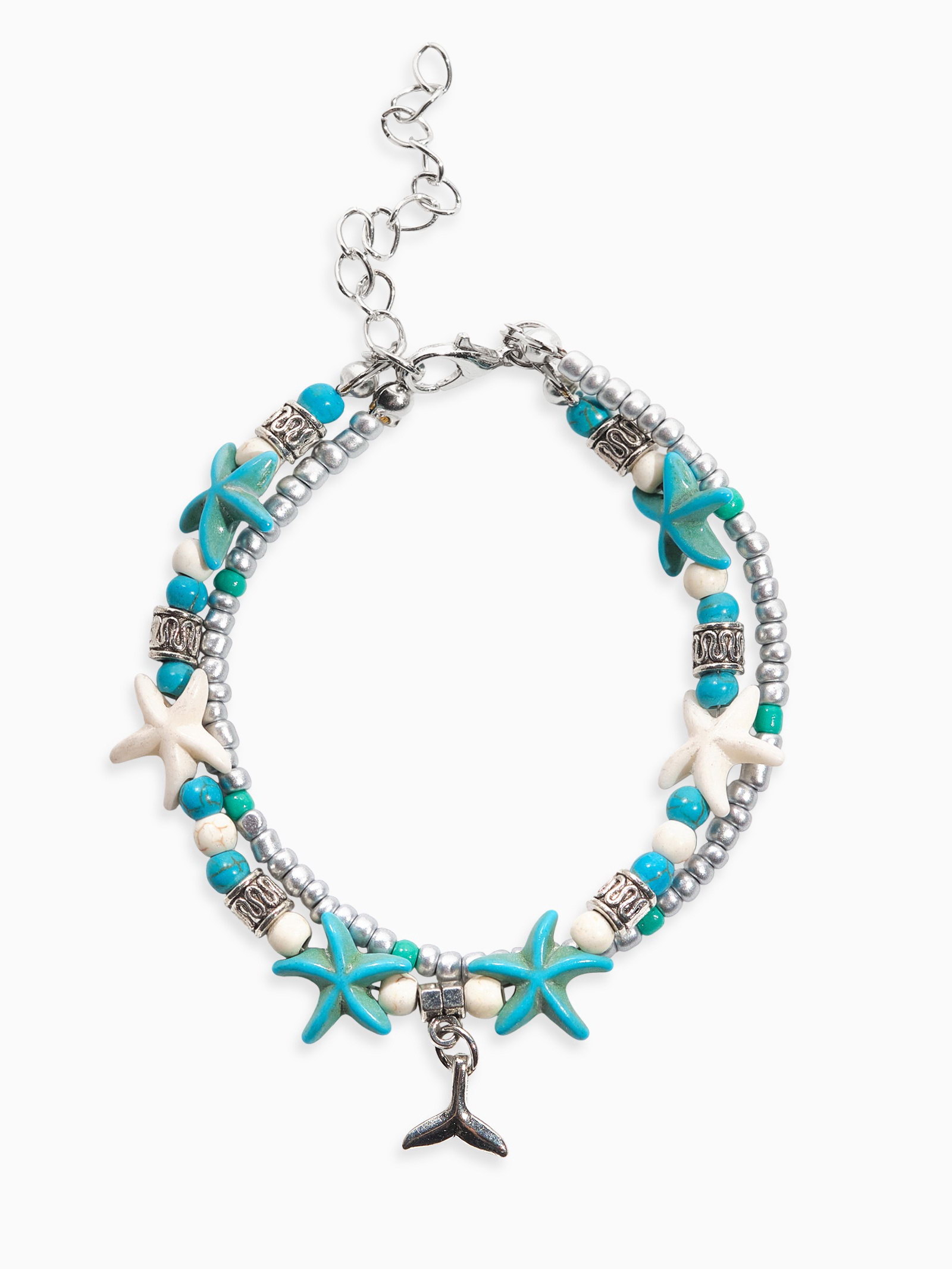 Браслет на ногу "Морской" хвостик, цвет бело-голубой в серебре, 25 см + удлинитель 5 см, 0.5x25x0.5 см., QF, Китай