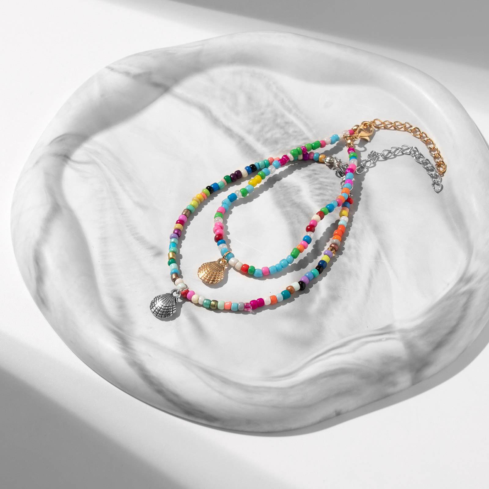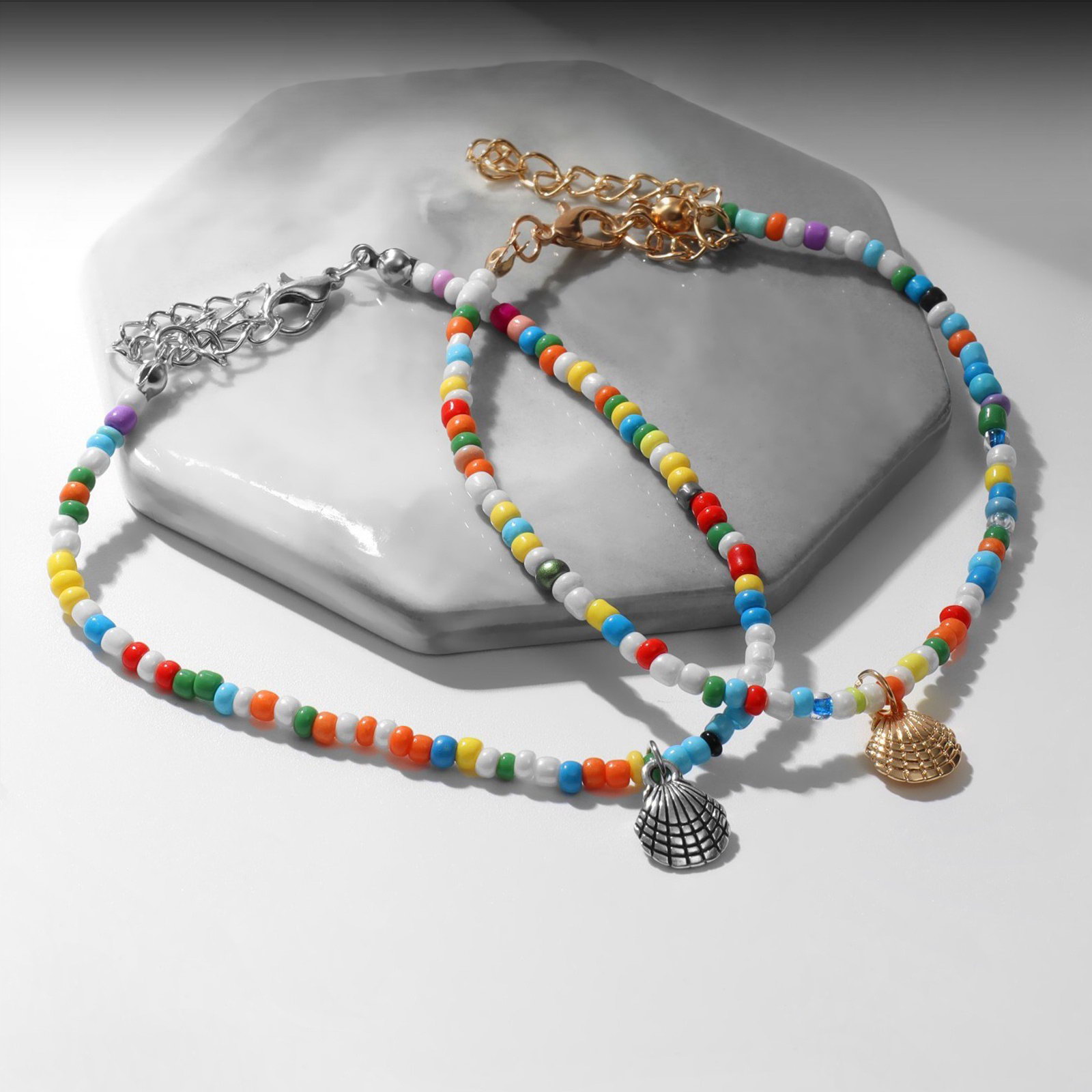 Браслет на ногу "Ракушки" бусины, набор, цветной, 23.3 см, 1.5x23.3x1 см., QF, Китай