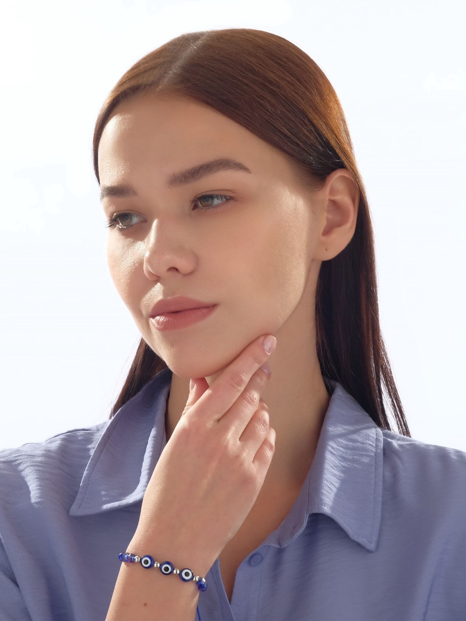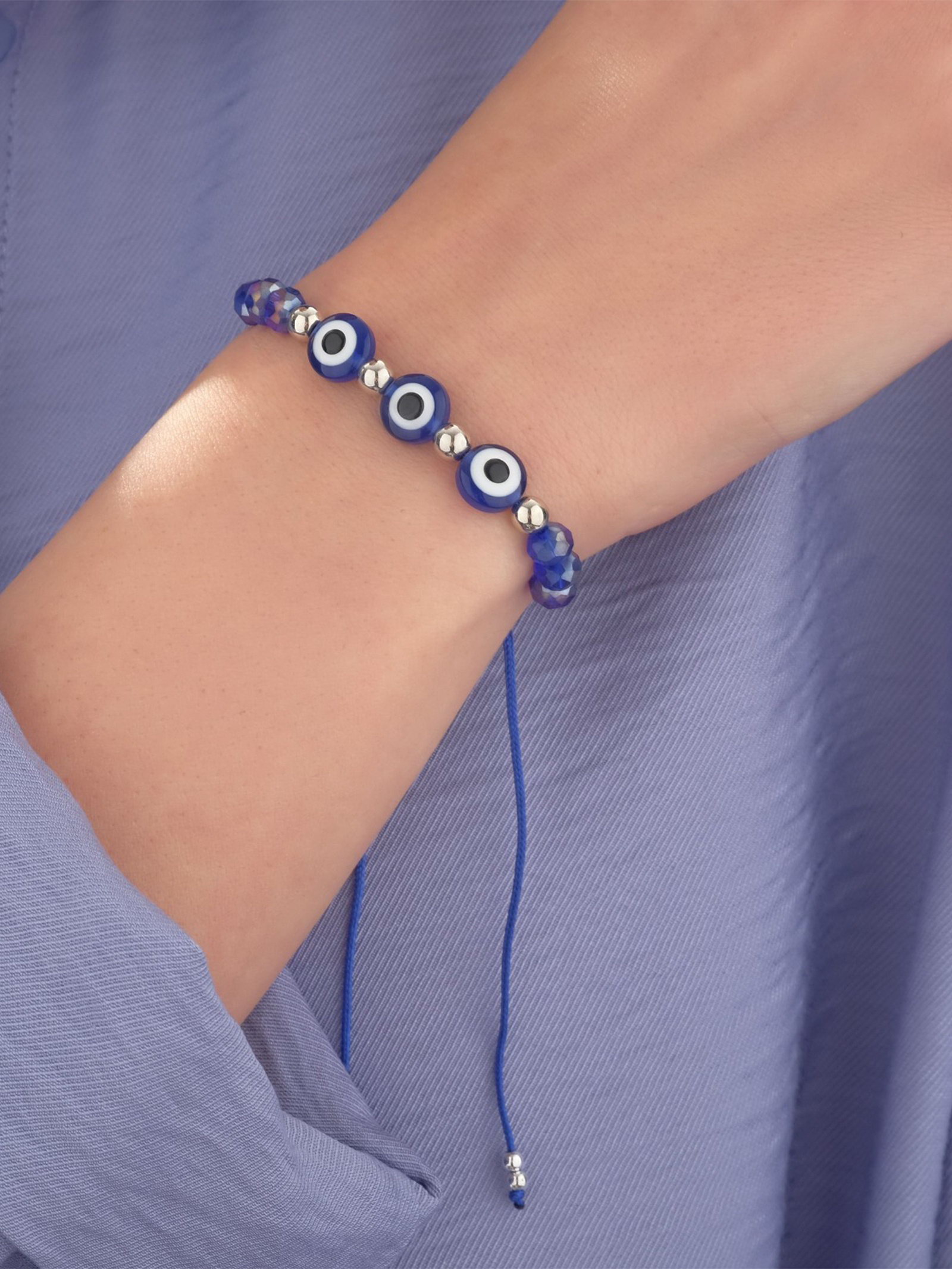 Браслет-оберег "Глазик" трио, цвет синий, d=6 см, 0.8x6x0.8 см., QF, Китай