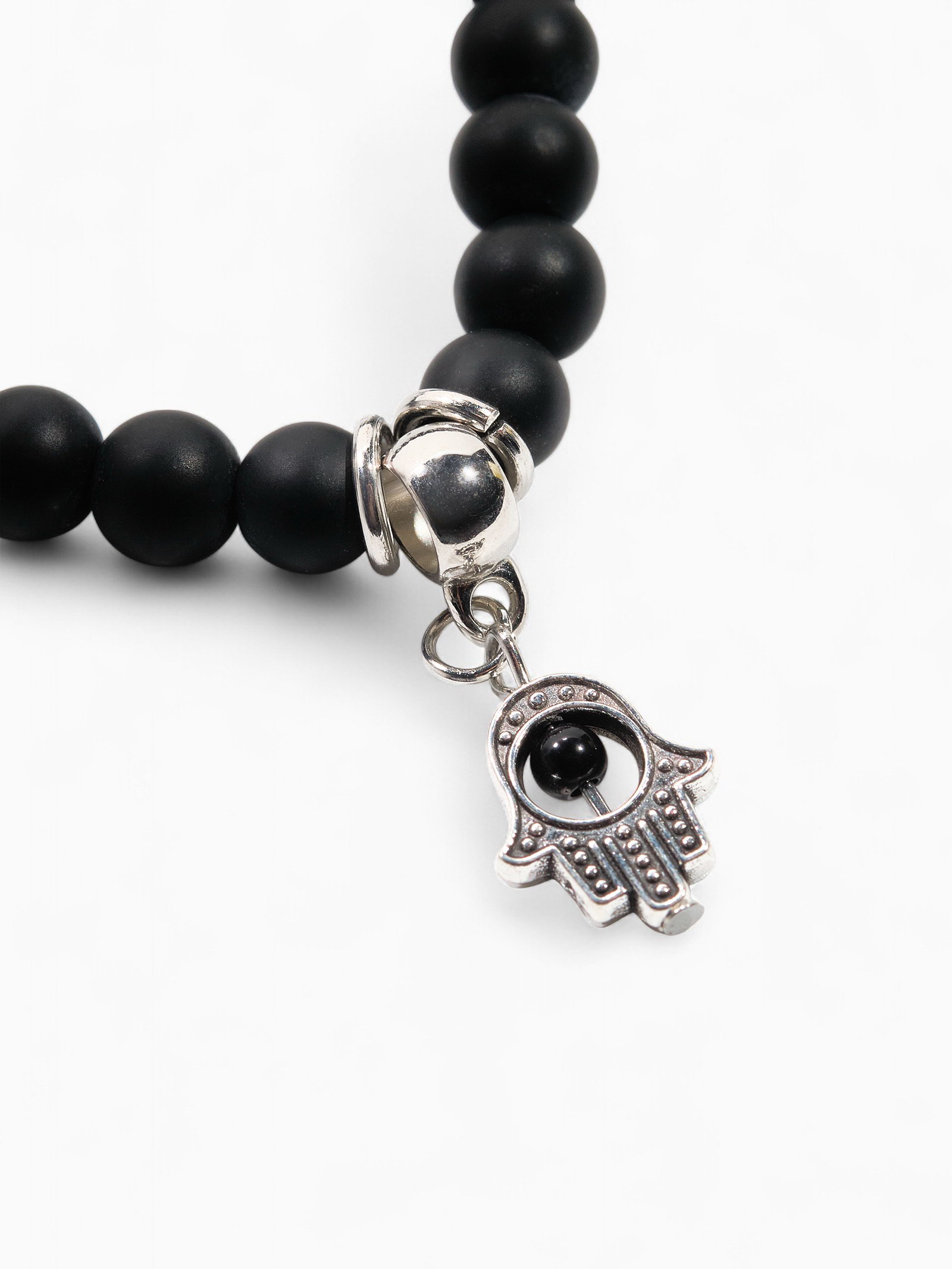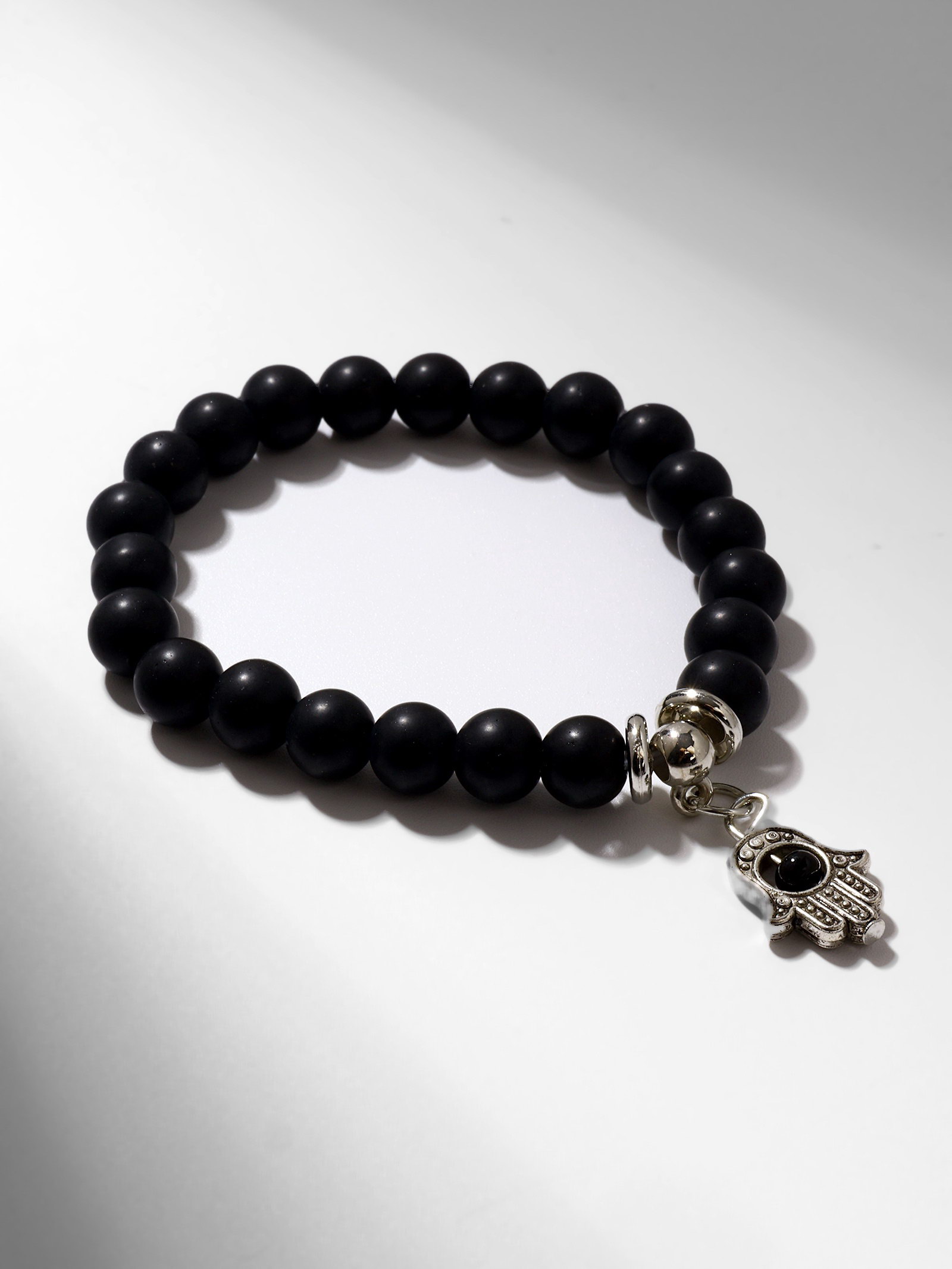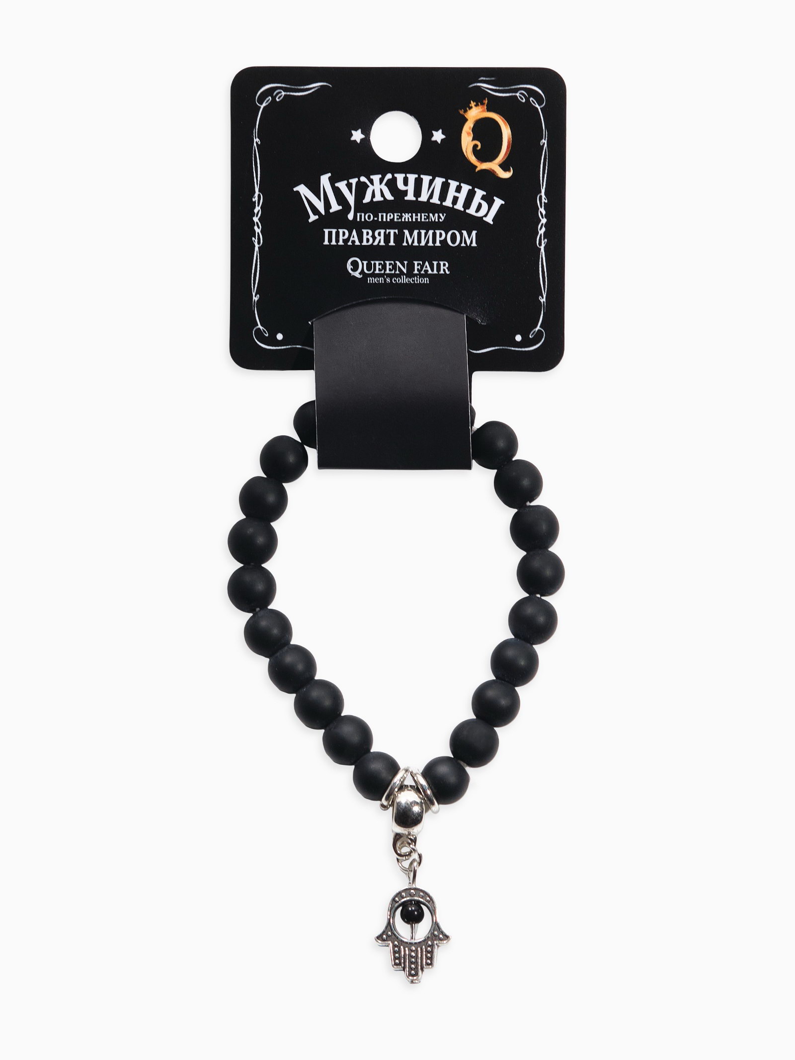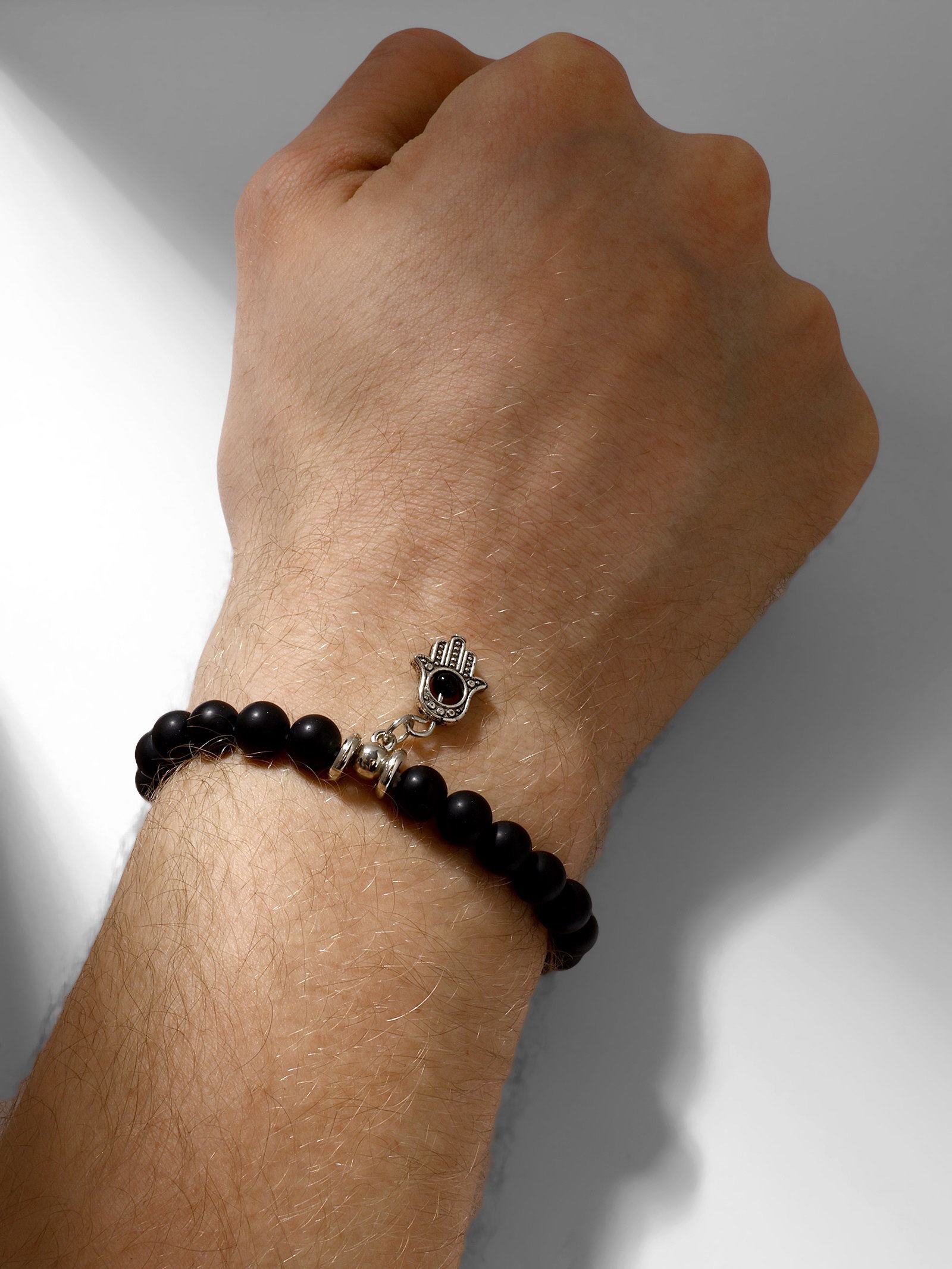 Браслет-оберег "Рука счастья Хамса" шунгит, чёрный с серебром, d=6 см, 0.8x6x2 см., QF, Китай