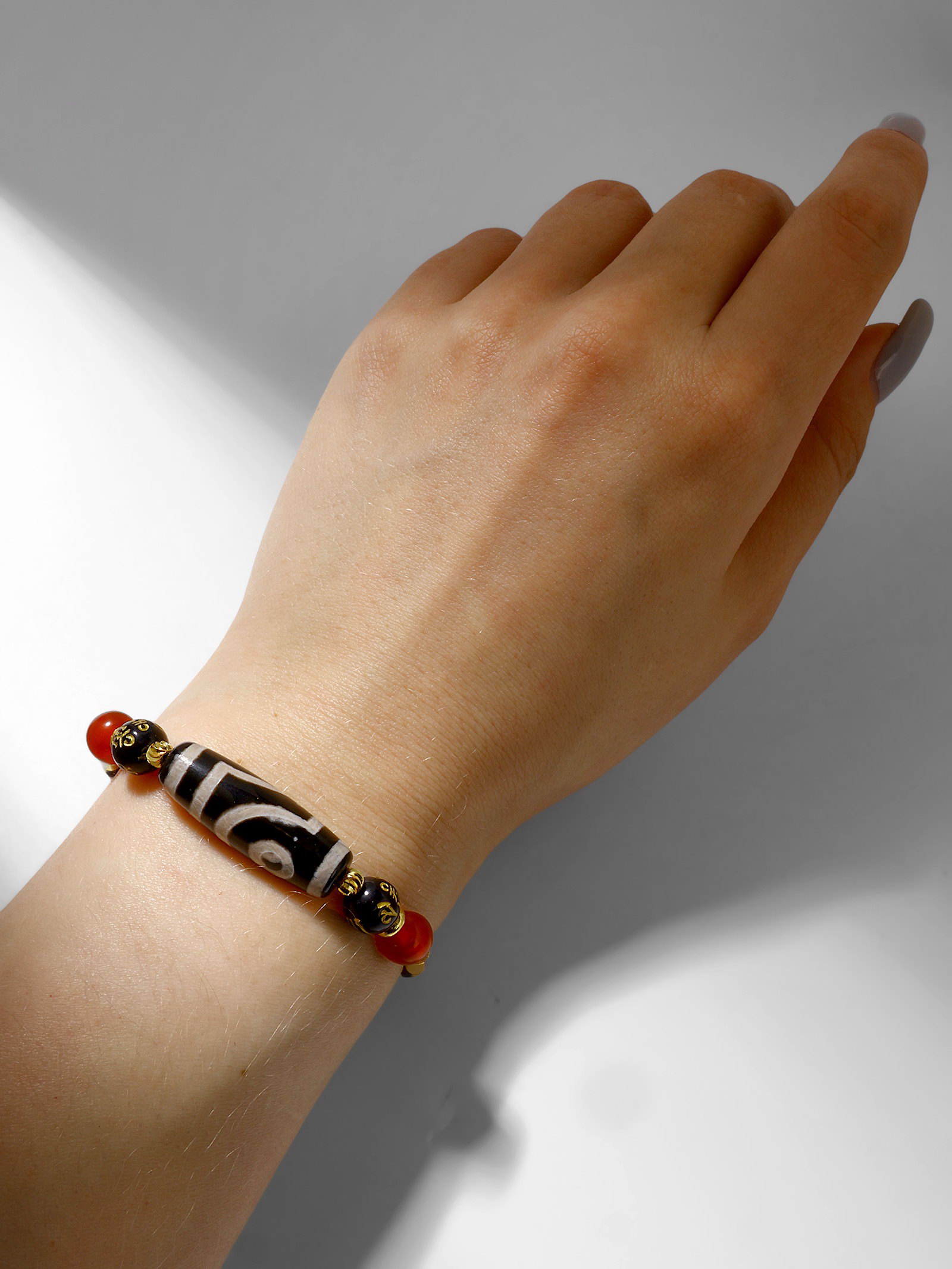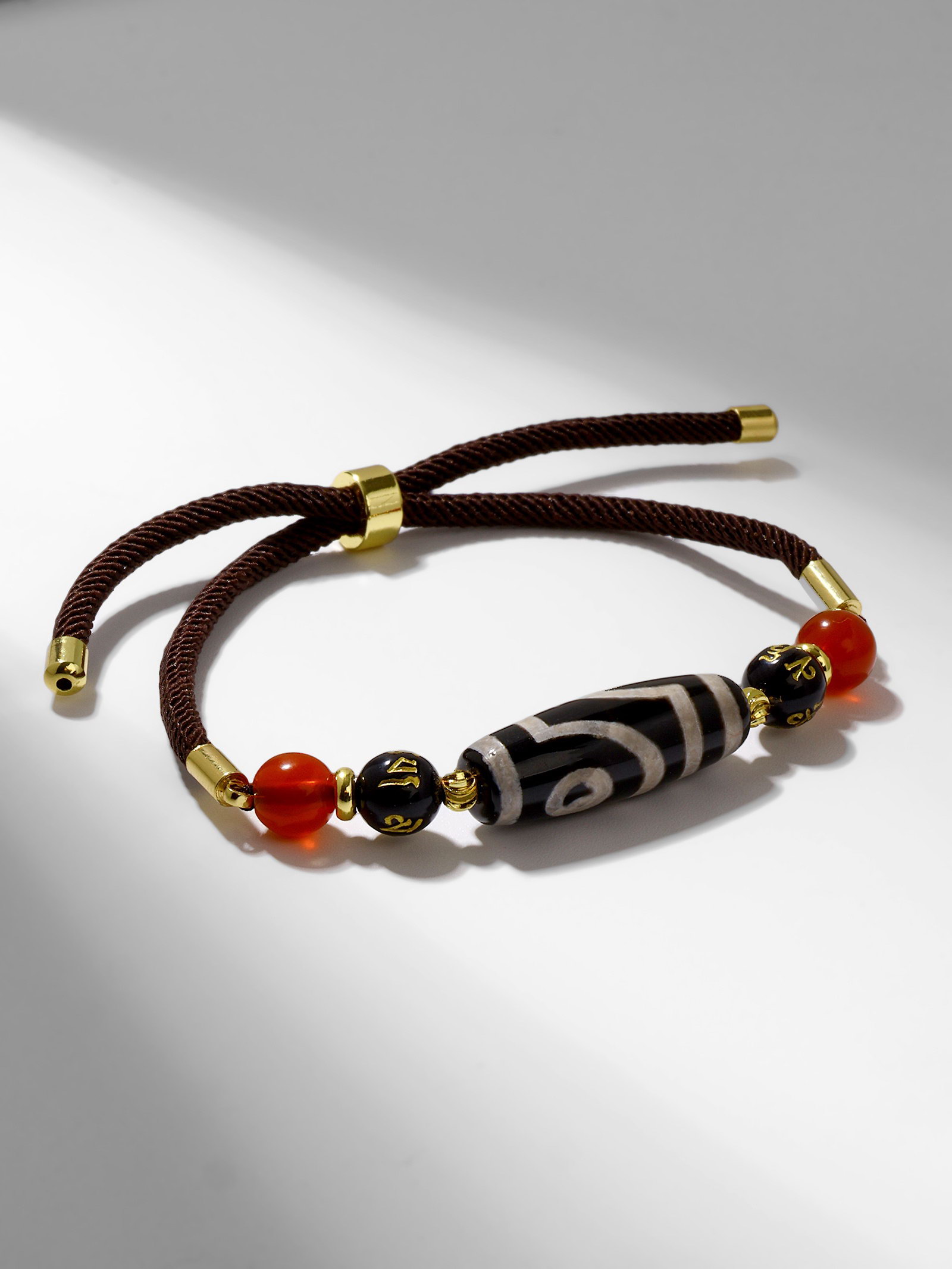 Вставка/Подвеска: Камень искусственный, Металл Вид: Браслет, Браслет со вставкой, Оберег Цвет вставки: Белый, Красный Назначение: Для защиты, На благополучие Размер упаковки: 8 x 1 x 10 см. С подвеской: Да Цвет: Чёрный Для кого: Унисекс Вид застёжки: Затяжка Вид застёжки: Затяжка tnved: 7117900000 Тематика: Знаки, символы, обереги Длина, см: 7 Материал основы: Текстиль Цвет фурнитуры: Золотой Набор: Нет Откройте для себя невероятную силу и красоту с браслетом-оберегом, выполненным из бусин Дзи на текстильном шнурке. Этот стильный аксессуар не только украсит ваш образ, но и станет верным спутником на пути к благополучию и защите от негативных энергий. С диаметром 7 см и затяжной застёжкой, браслет легко подстраивается под любое запястье, обеспечивая комфорт и удобство в носке. Чёрный цвет основы гармонично сочетается с яркими вставками из искусственного камня и металла, создавая эффектный контраст, который привлечёт внимание окружающих.