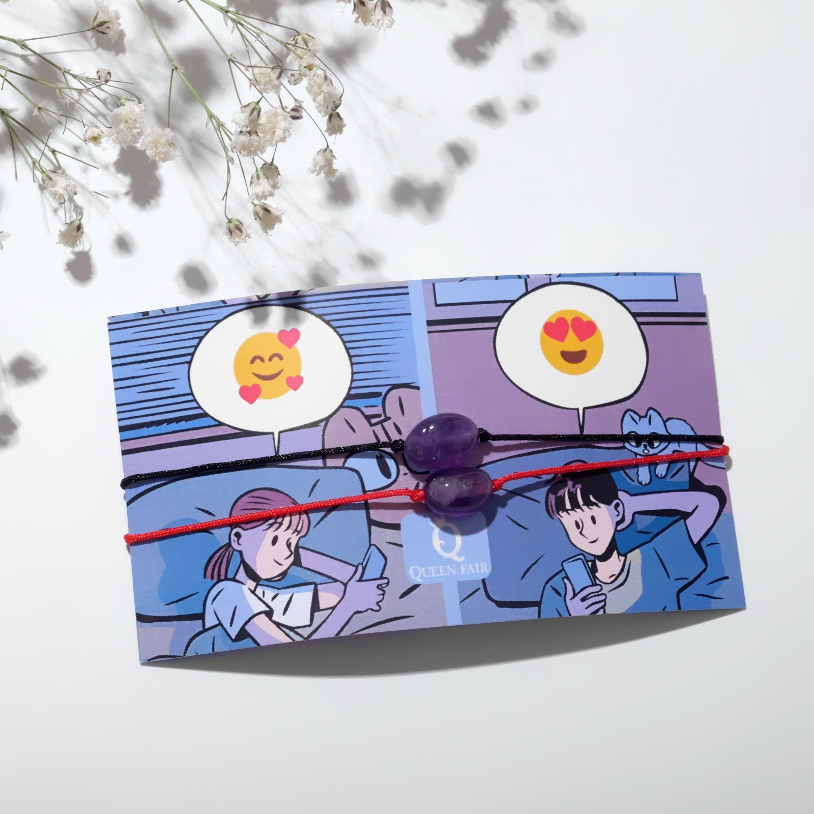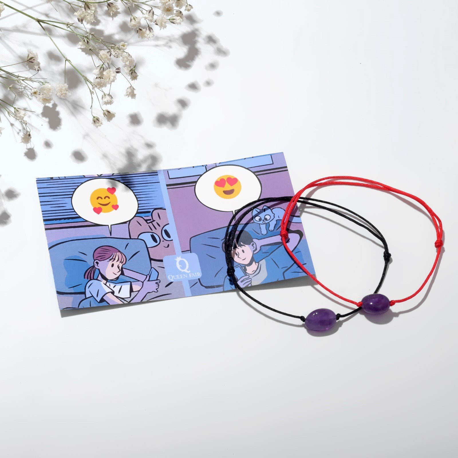 Браслеты на нити "Неразлучники. Аметист", красный, чёрный, 0.8x11x0.6 см., QF, Россия