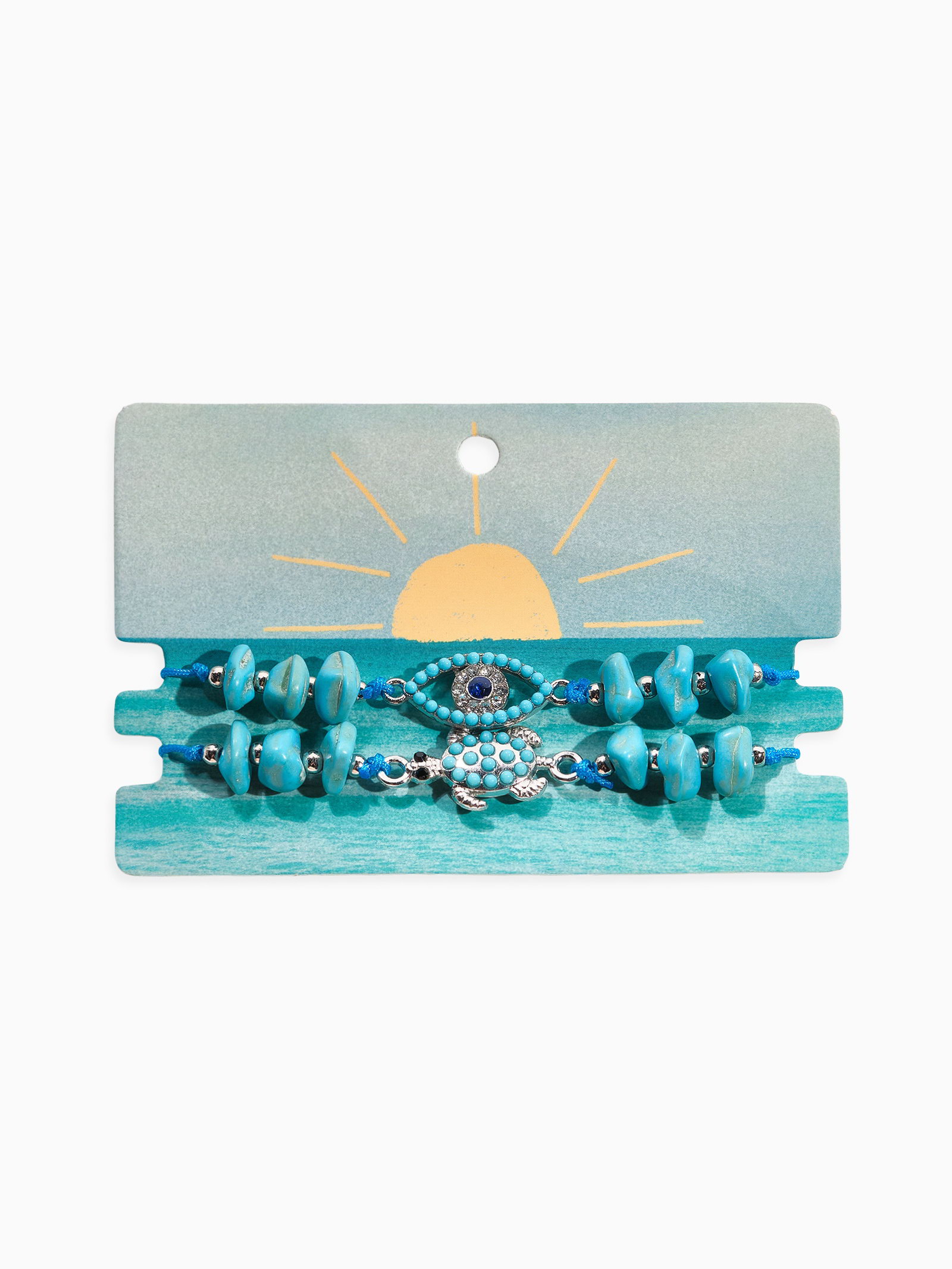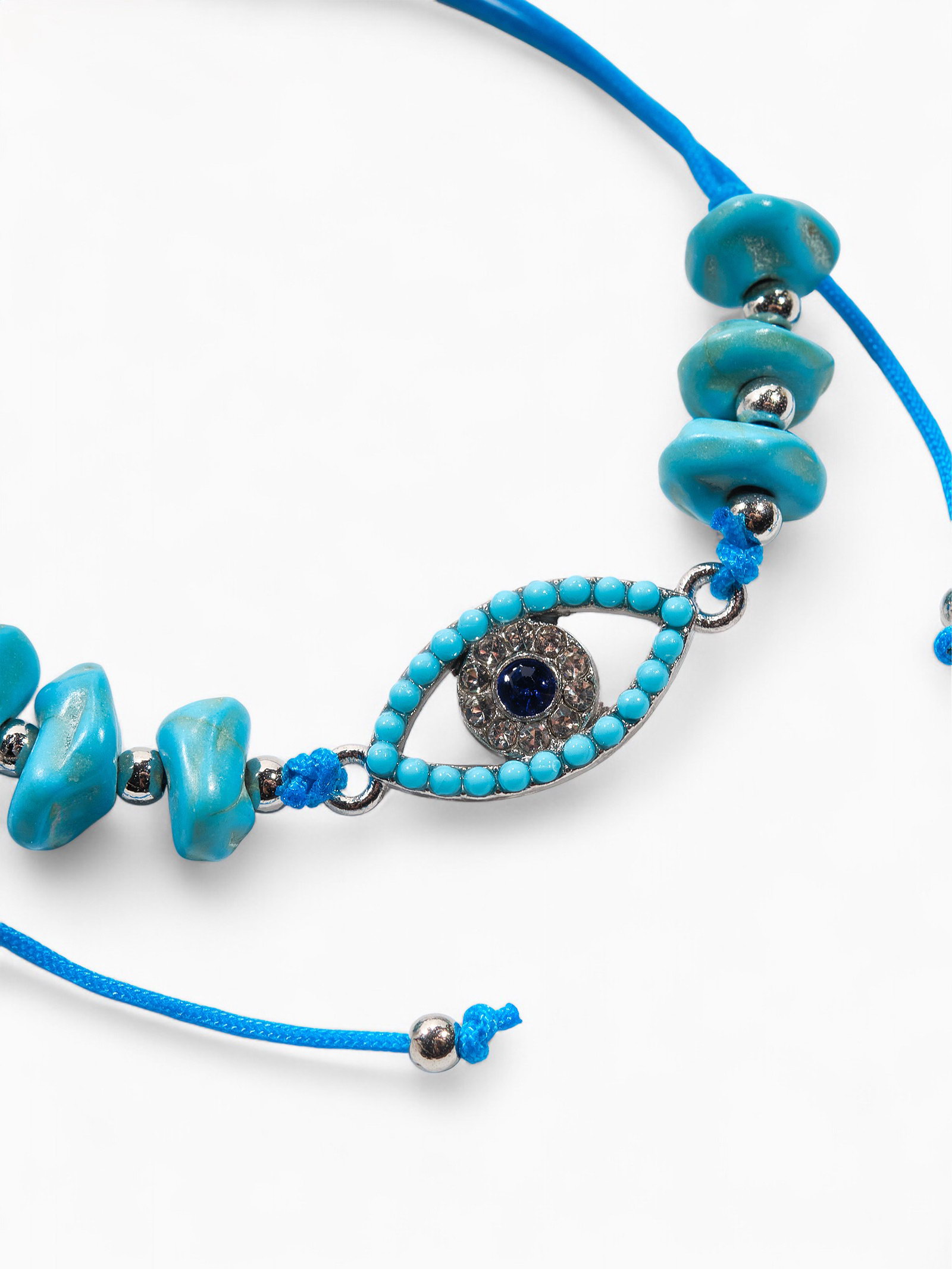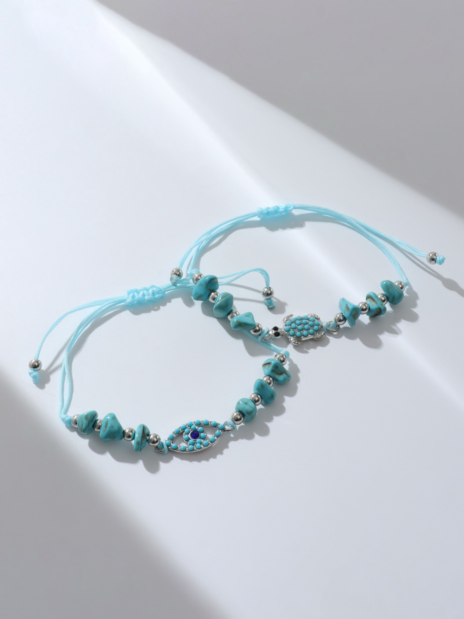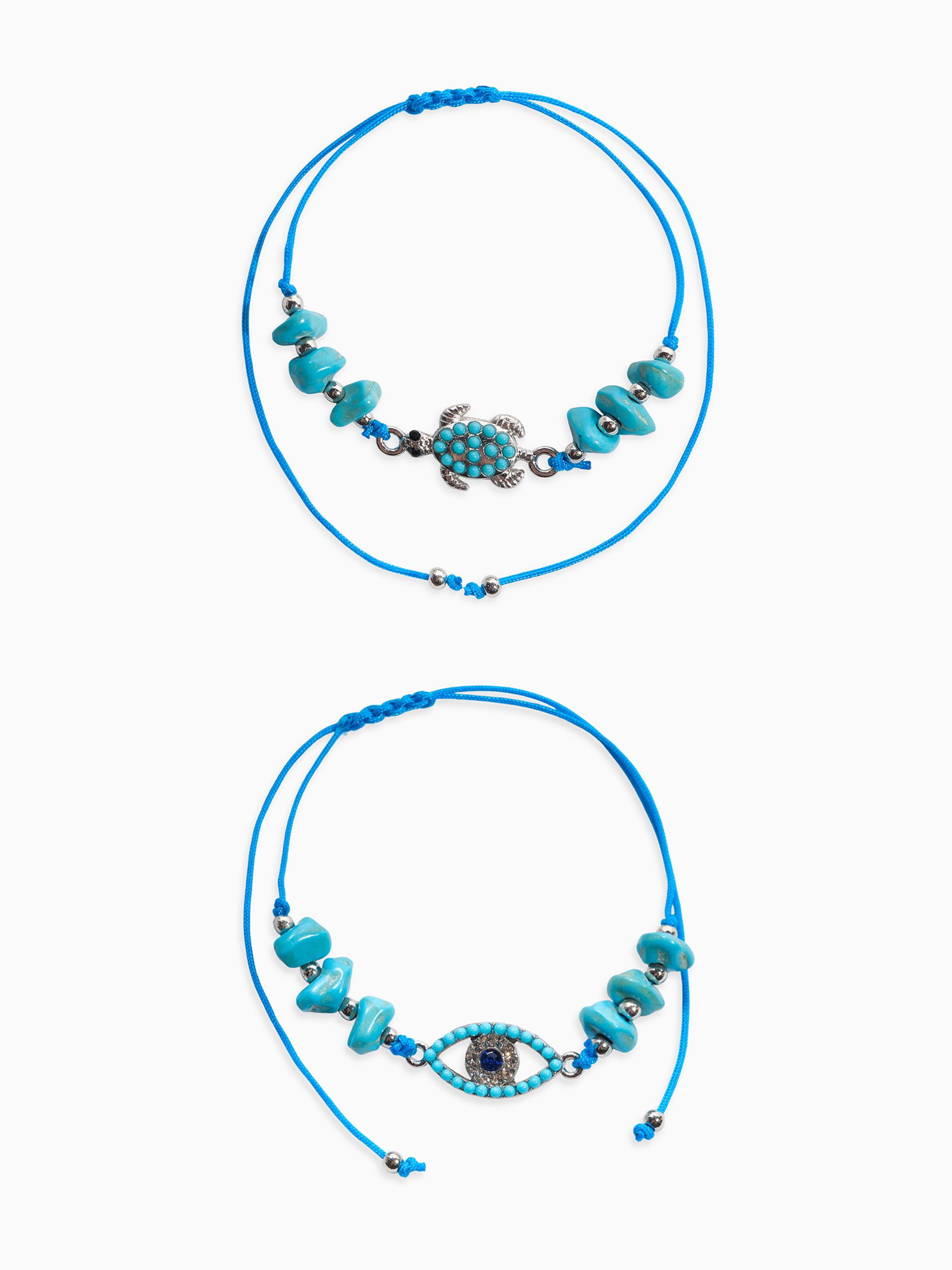 Браслеты-обереги "Нить желаний" набор 2 шт., камни, голубые, 1.2x6x0.4 см., QF, Китай