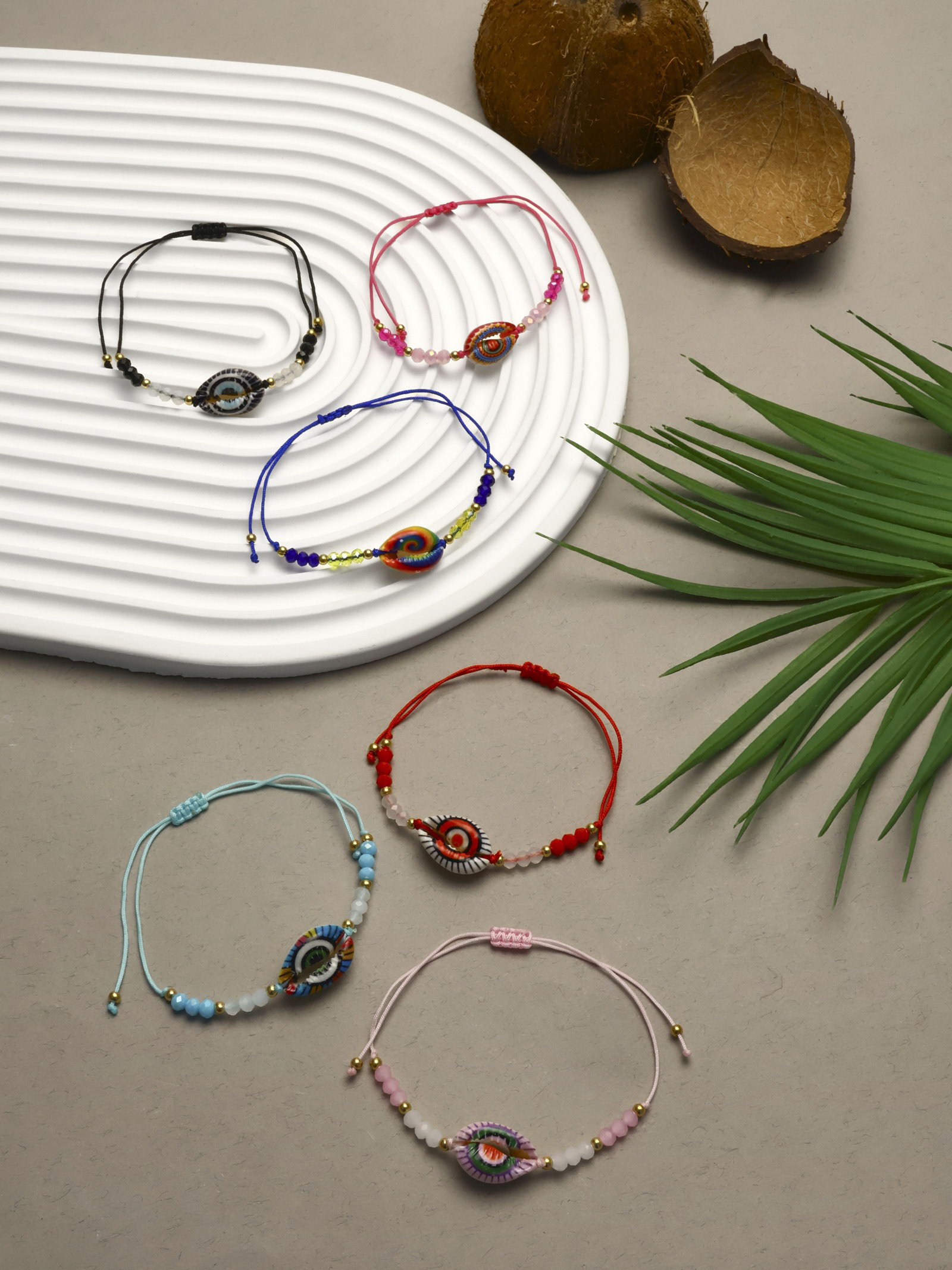 Браслет-оберег "Глазик" ракушка, цветной в золоте, 1x7x1.3 см., QF, Китай