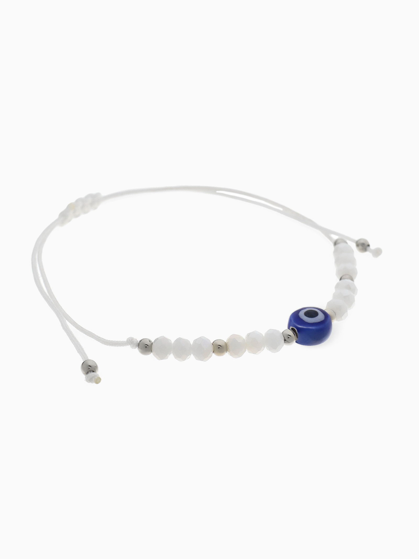 Браслет-оберег "Глазик" на нити, белый в серебре, 6x7x0.4 см., QF, Китай