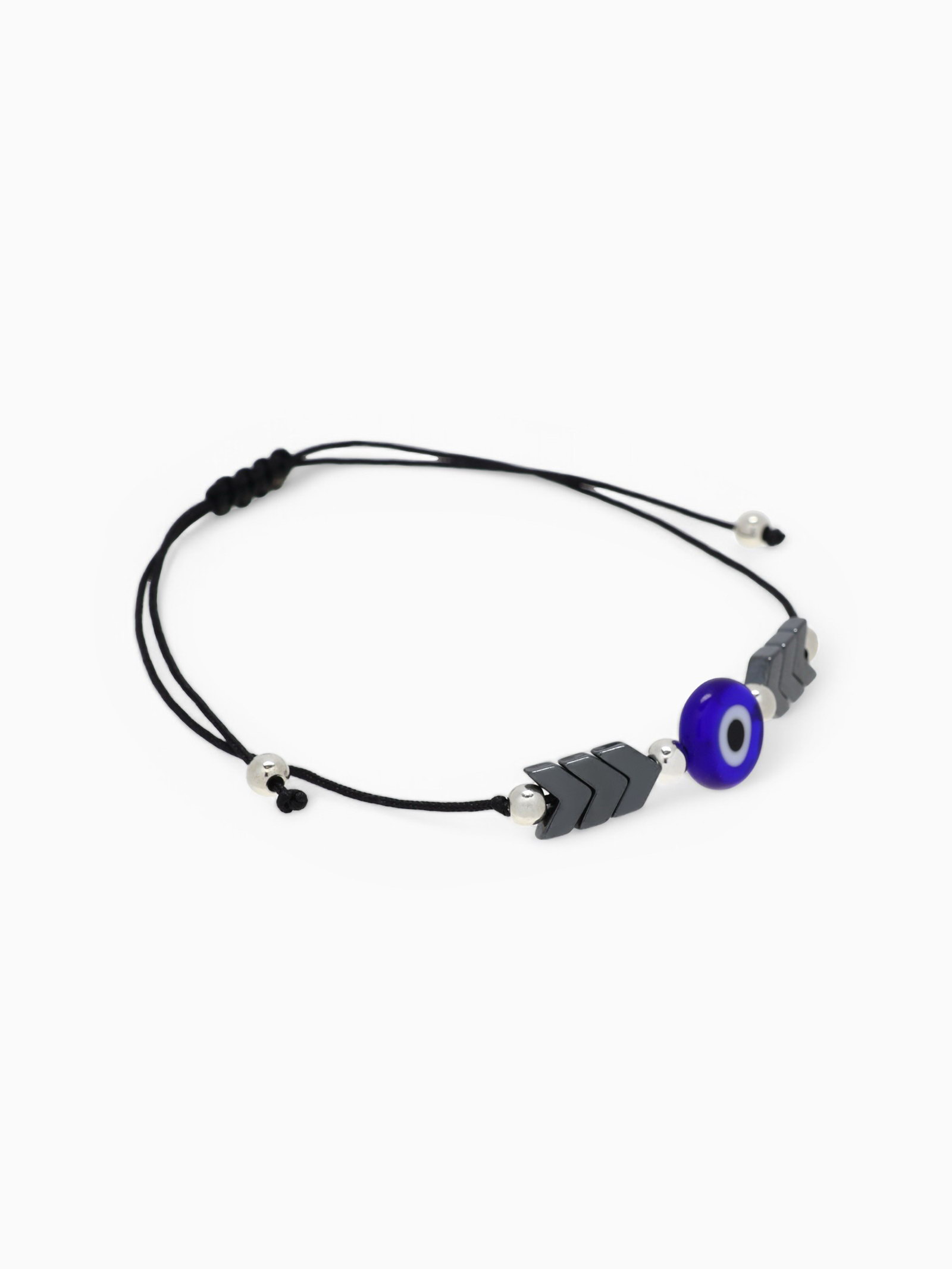 Браслет-оберег "Глазик" на нити, гематит, чёрный в серебре, 1x7x0.5 см., QF, Китай
