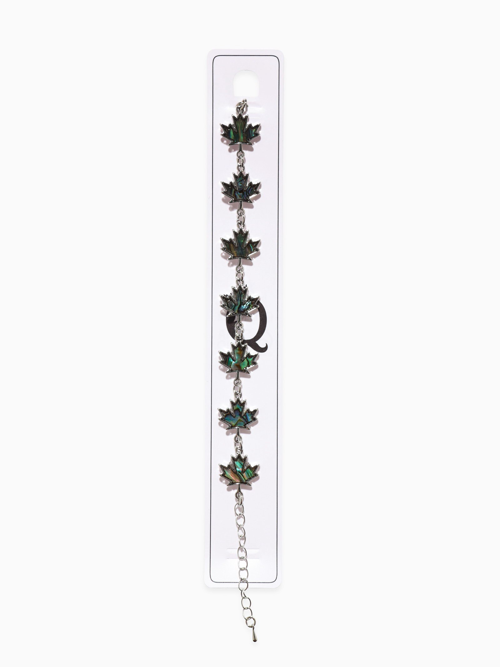 Браслет цепочка "Галиотис. Лист Клёна", L=17 см + доп.цепочка 5 см, цвет серебро, разноцветный, 1.6x22x1 см., QF, Китай