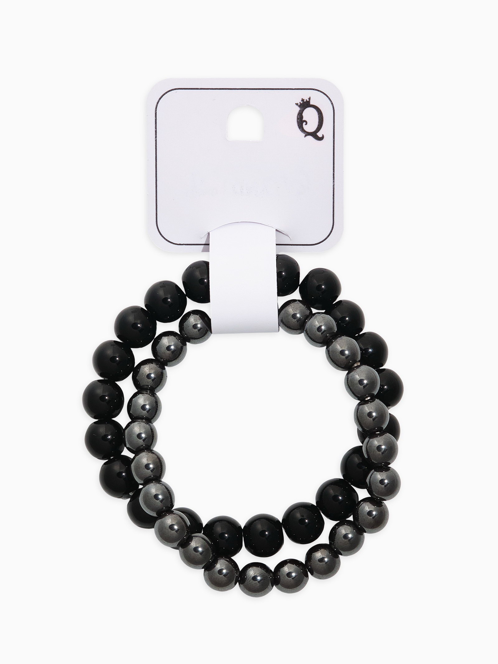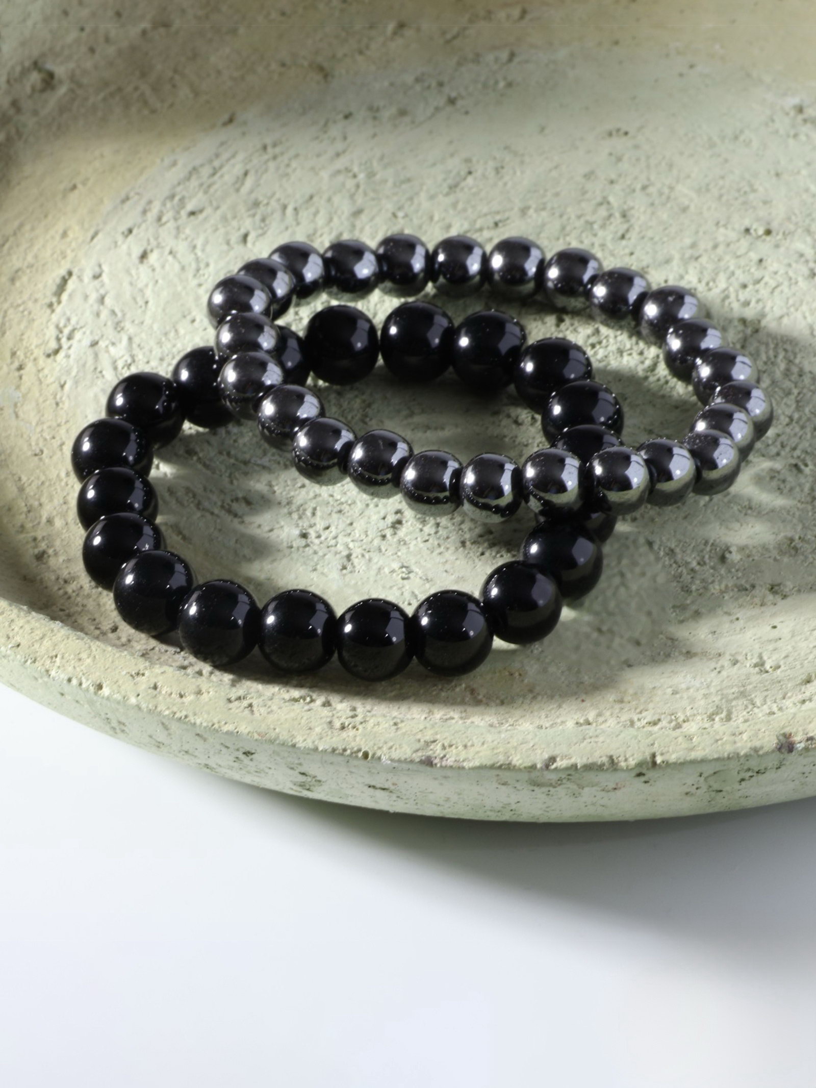 Набор браслетов 2 шт. шар №8 "Гематит" и шар №10 "Агат", 5.5x5.5x1 см., Queen fair, Китай