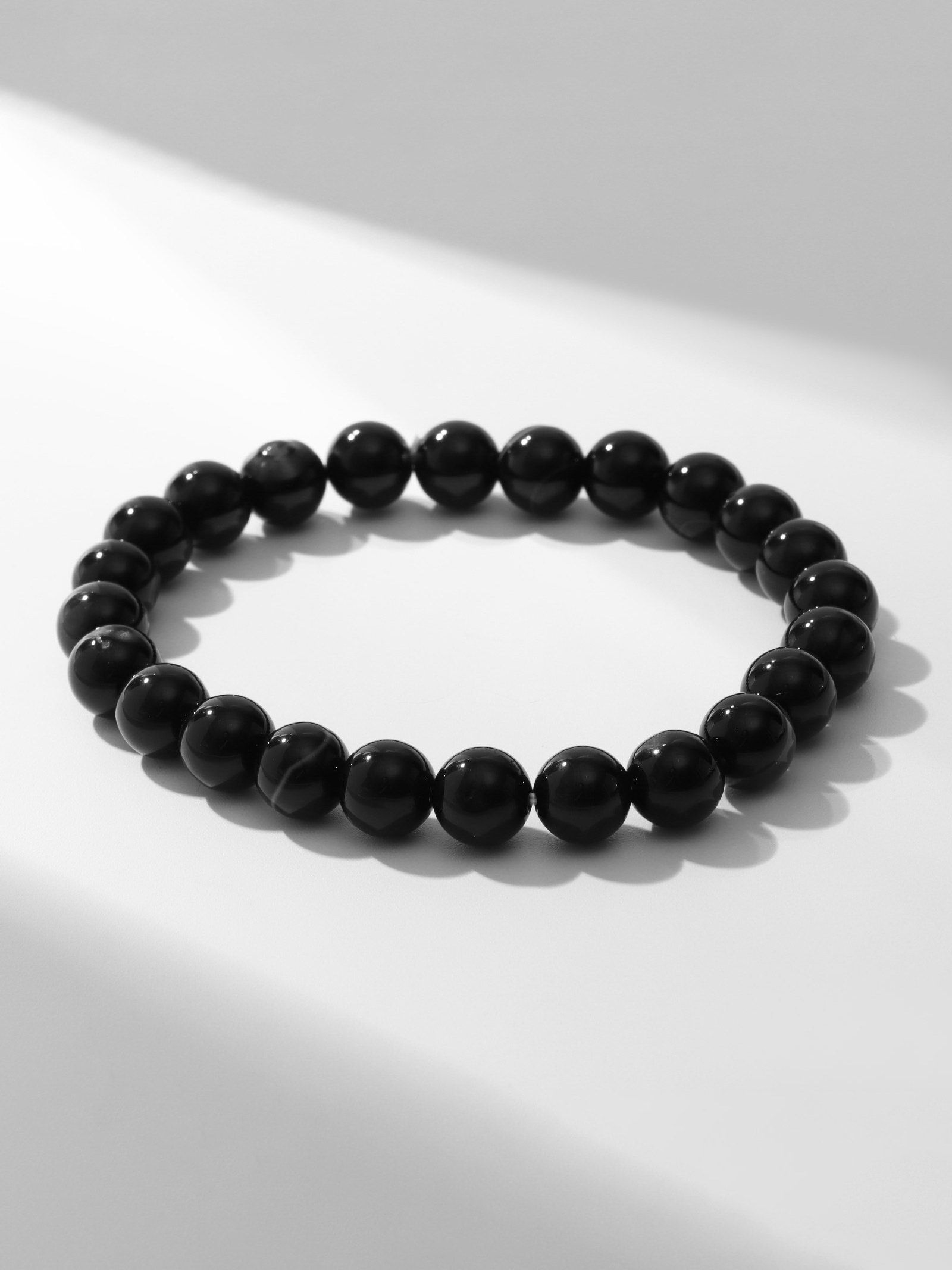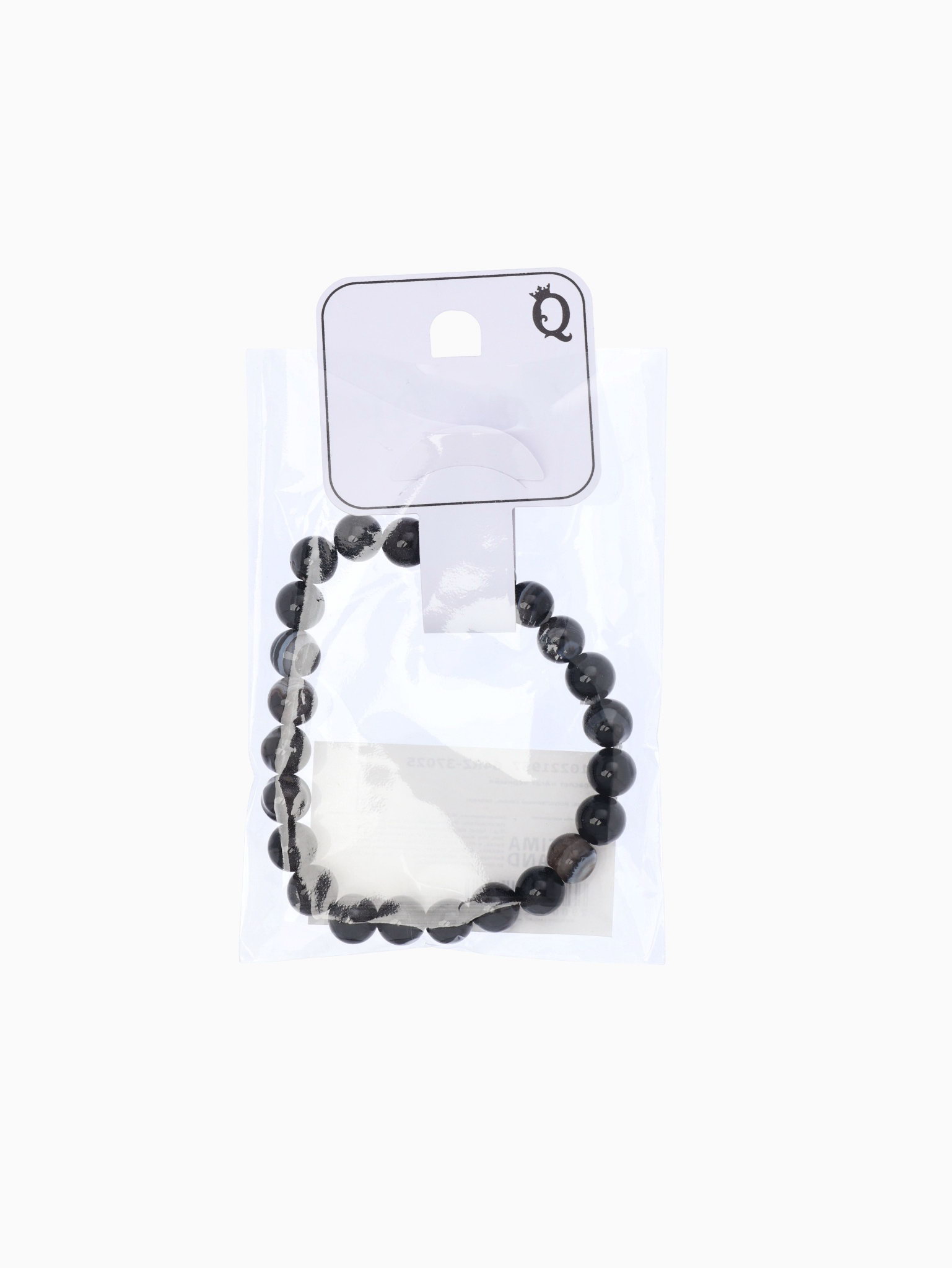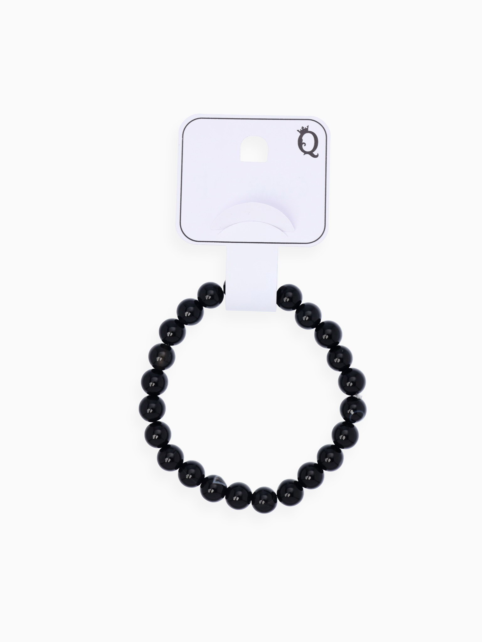 Браслет шар №8 "Агат чёрный", 5.5x5.5x0.8 см., QF, Китай