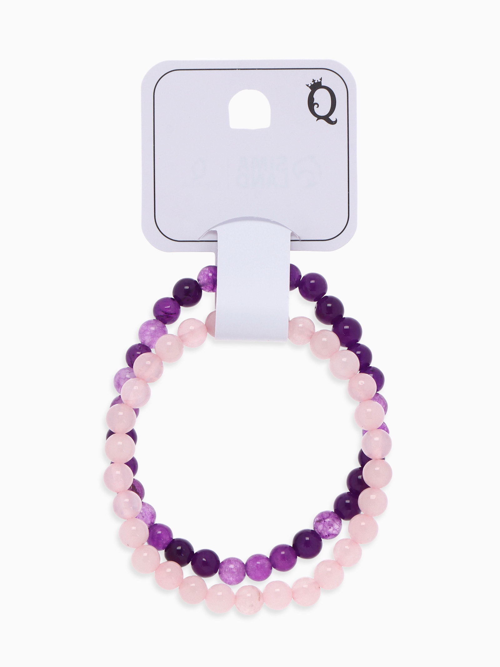 Набор браслетов 2 шт. шар №6 "Кварц розовый и Аметист", 5.5x5.5x0.6 см., Queen fair, Китай