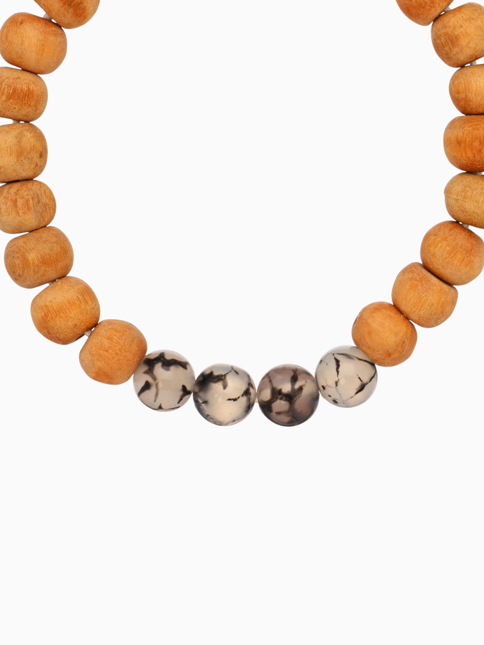 Браслет из сандалового дерева с агатом, длина 18 см, чёрный, 2x9x1 см., Индонезия