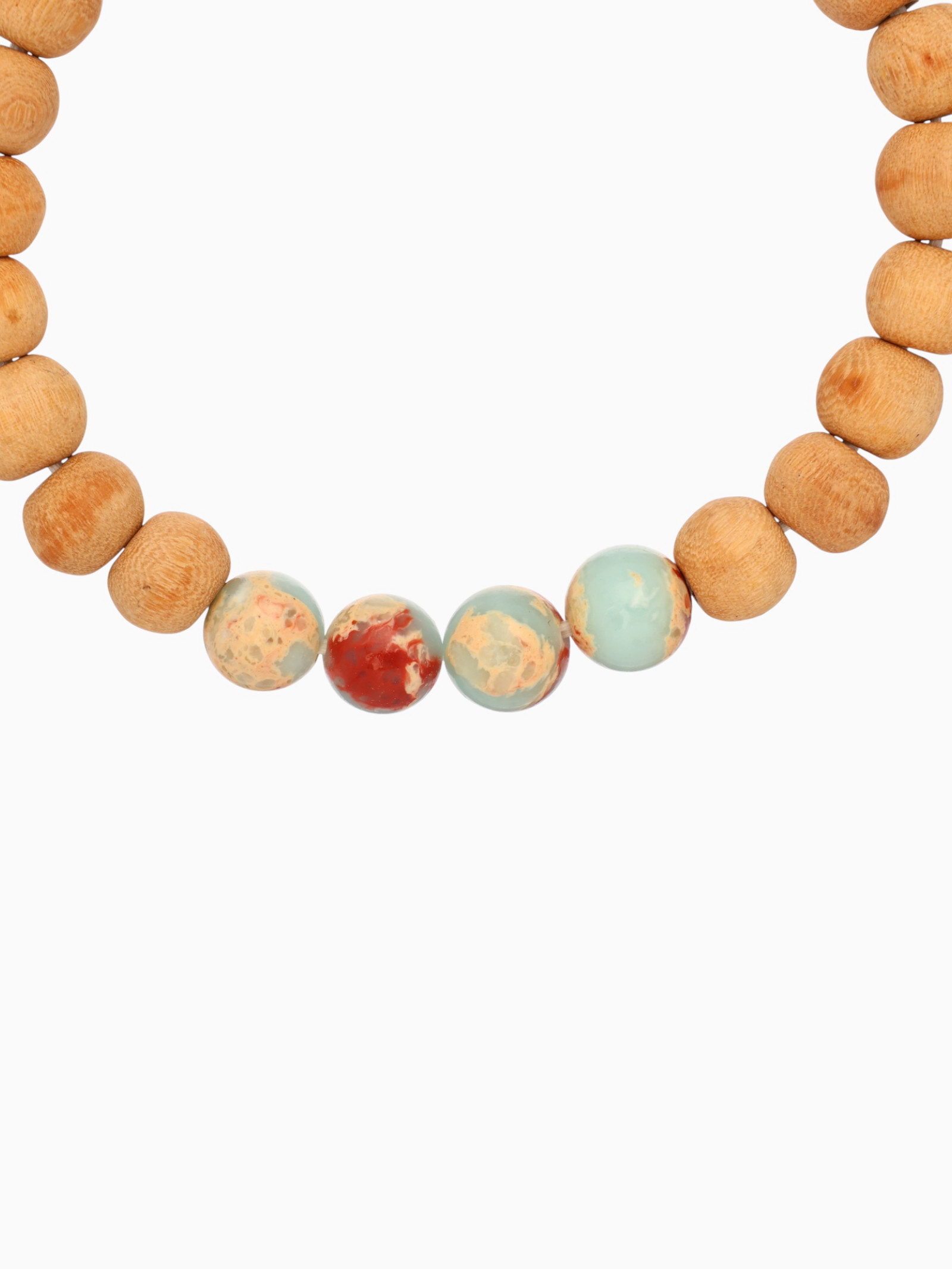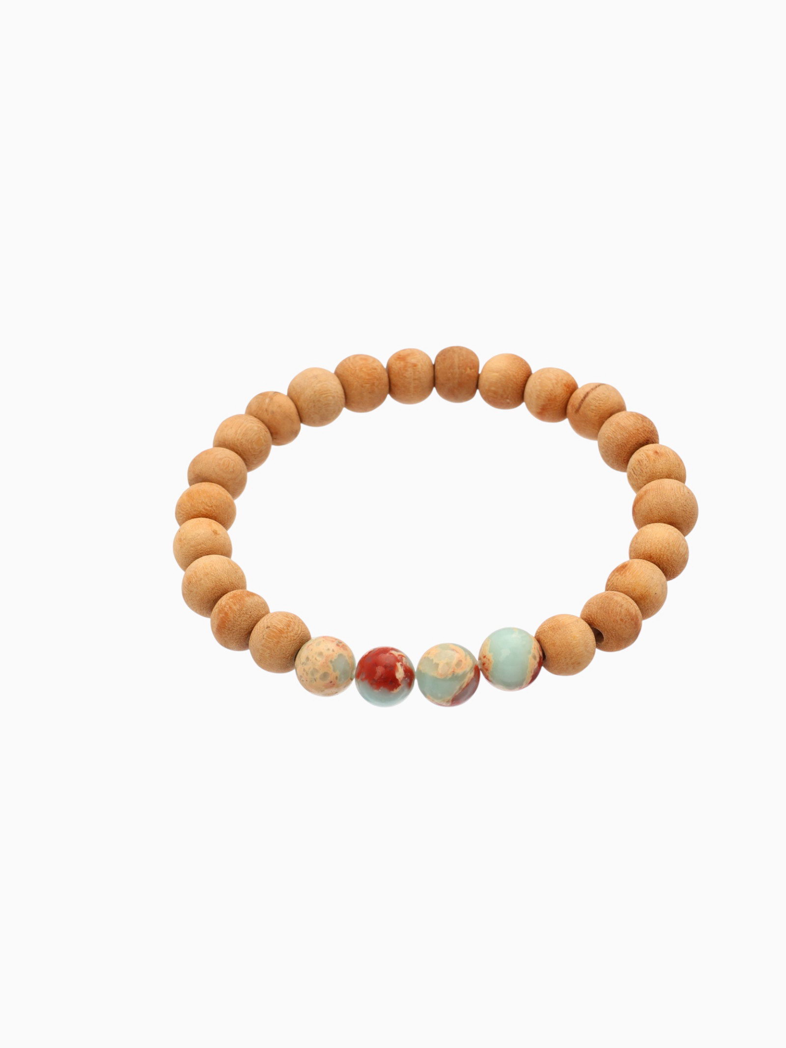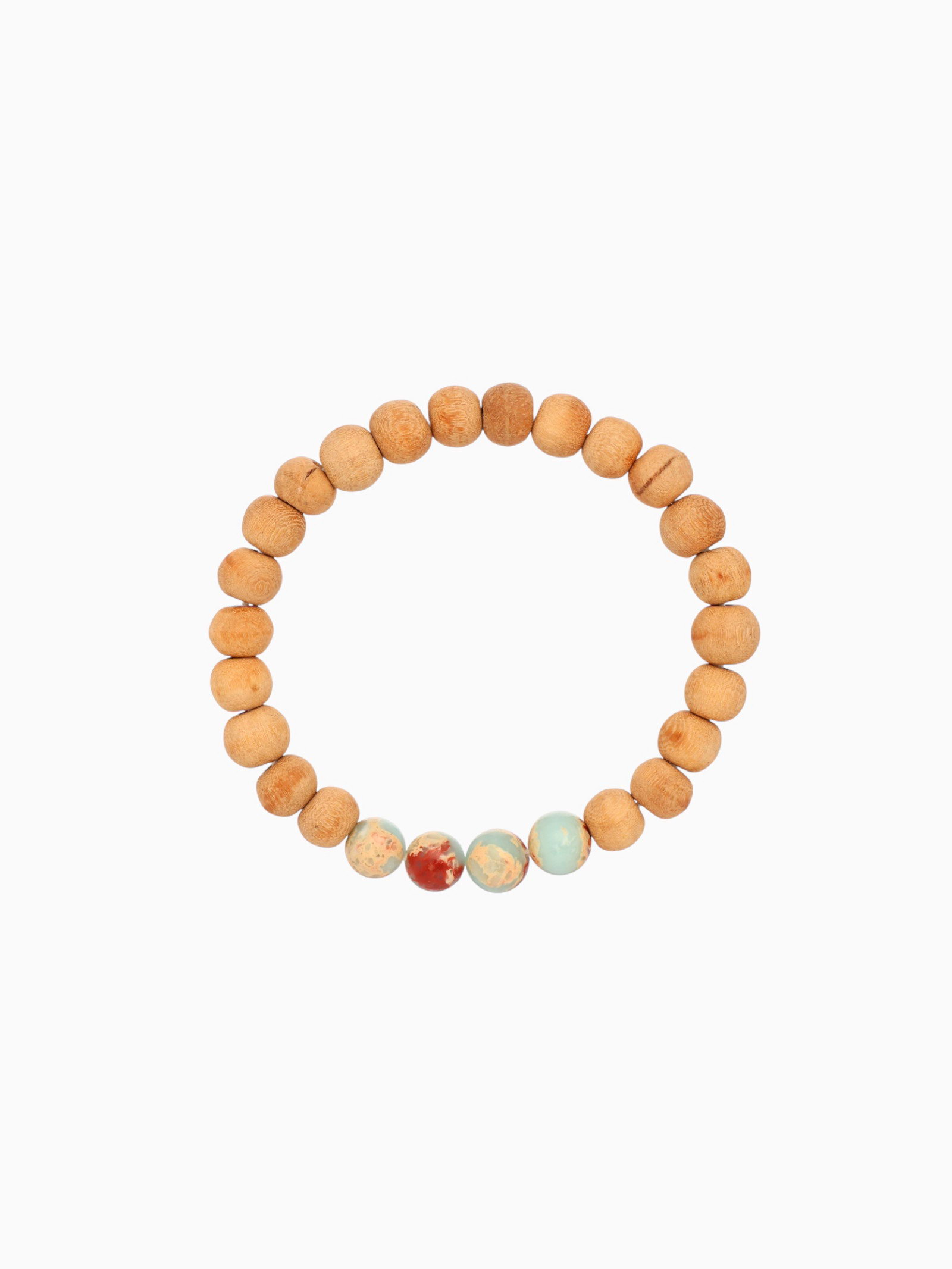 Браслет из сандалового дерева с агатом, длина 18 см, голубой, 2x9x1 см., Индонезия