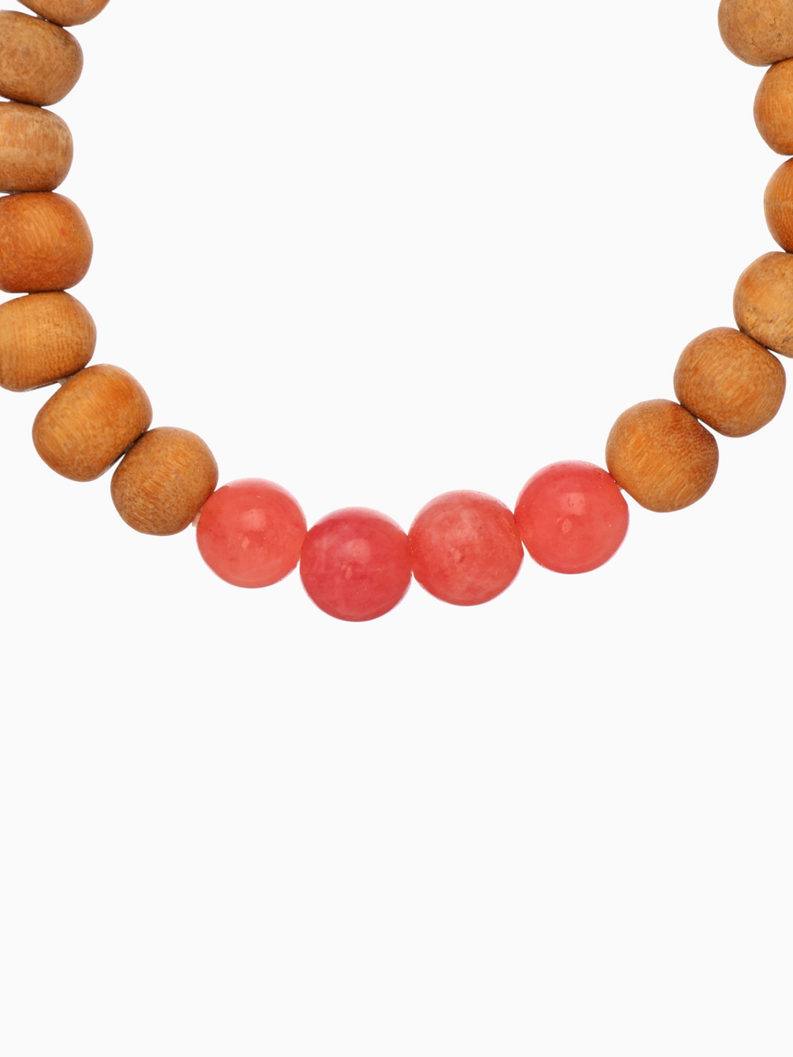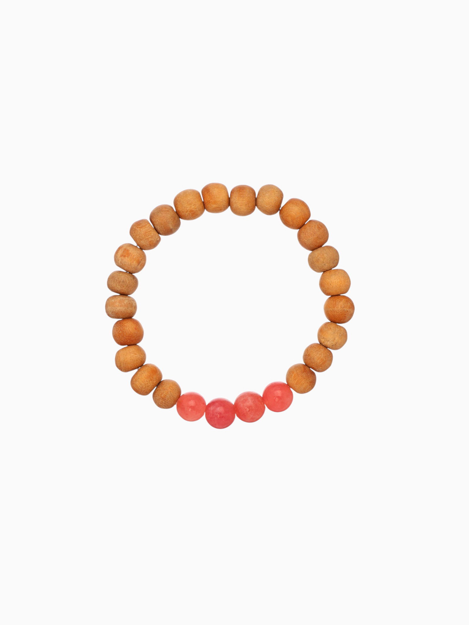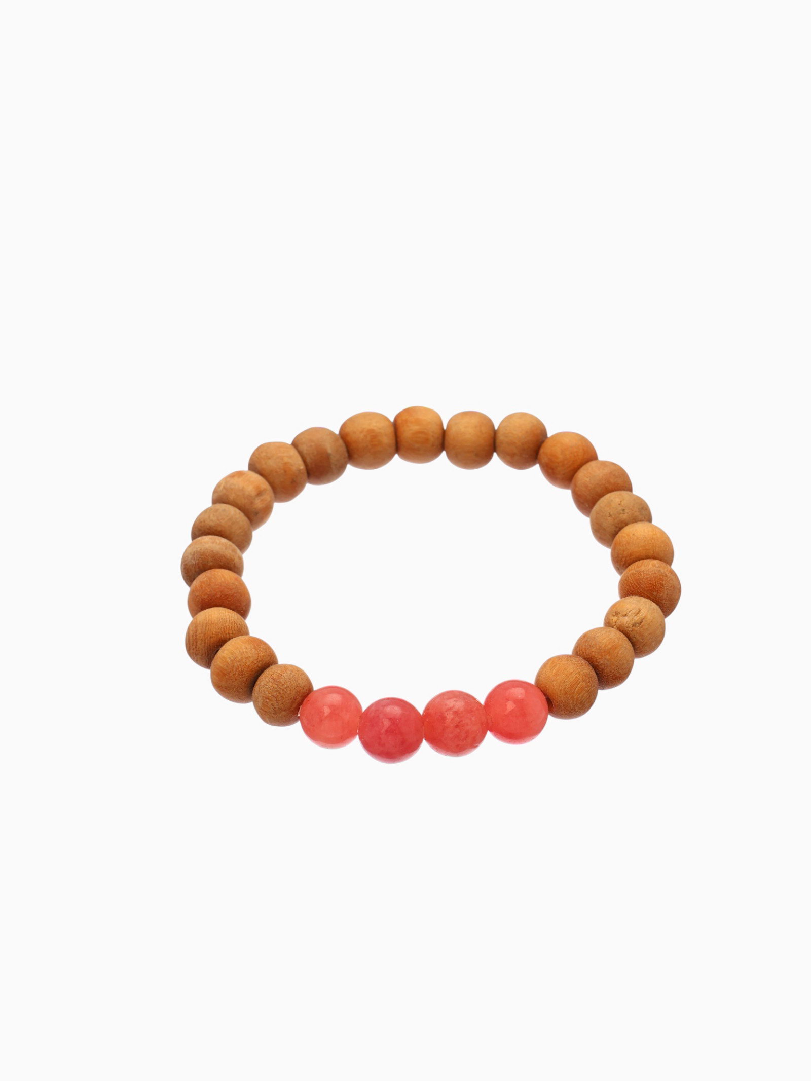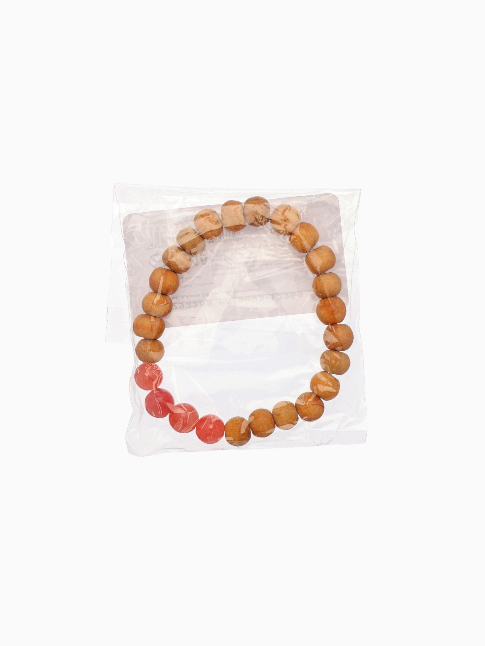 Браслет из сандалового дерева с агатом, длина 18 см, красный, 2x9x1 см., Индонезия