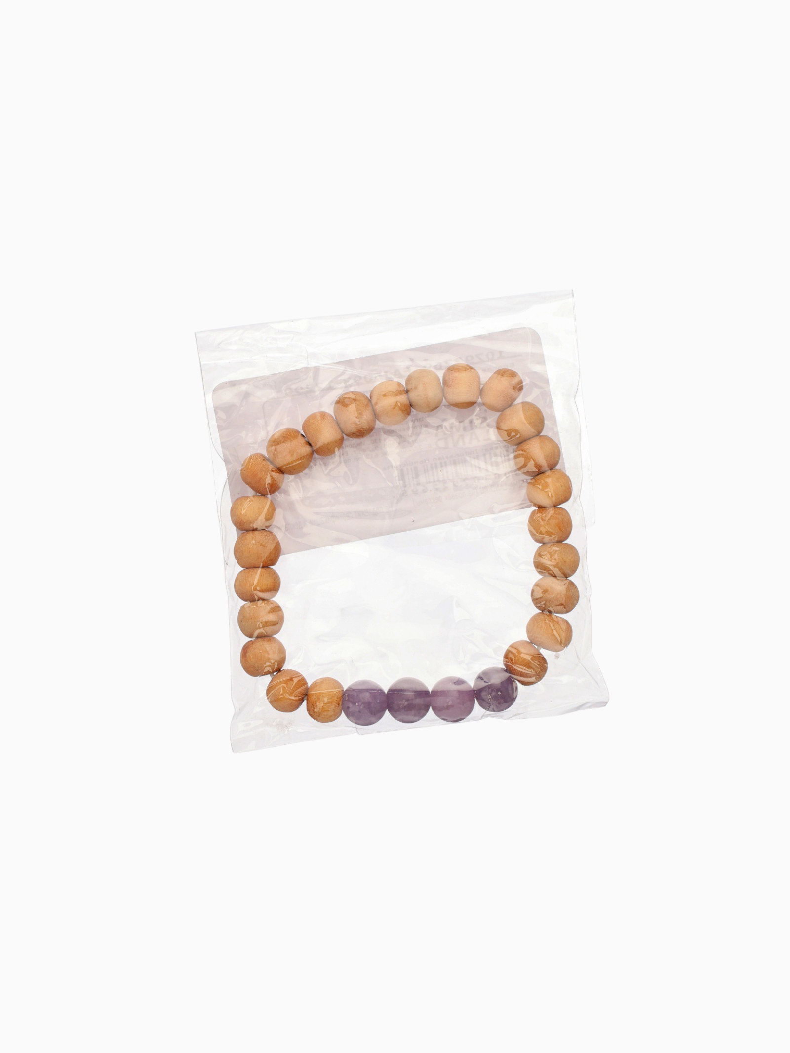 Браслет из сандалового дерева с агатом, длина 18 см, сиреневый, 2x9x1 см., Индонезия