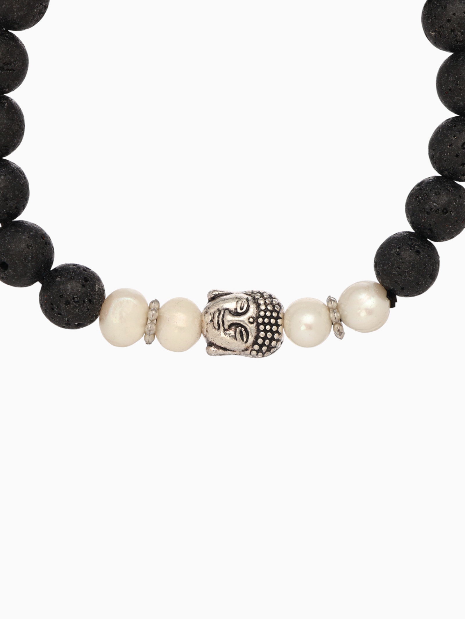 Браслет "Будда", длина 18 см, жемчуг, лава, 2x9x1 см., Индонезия