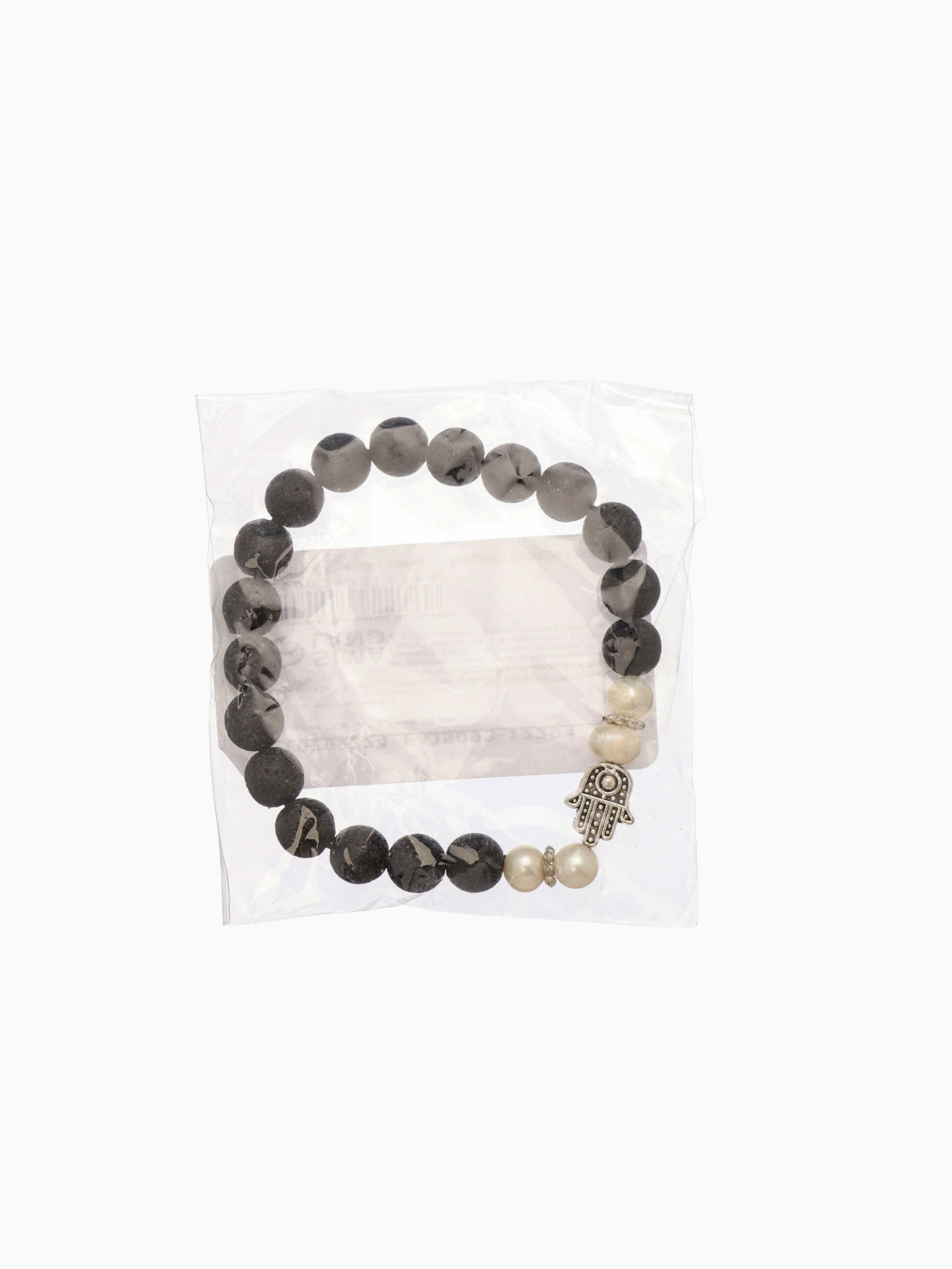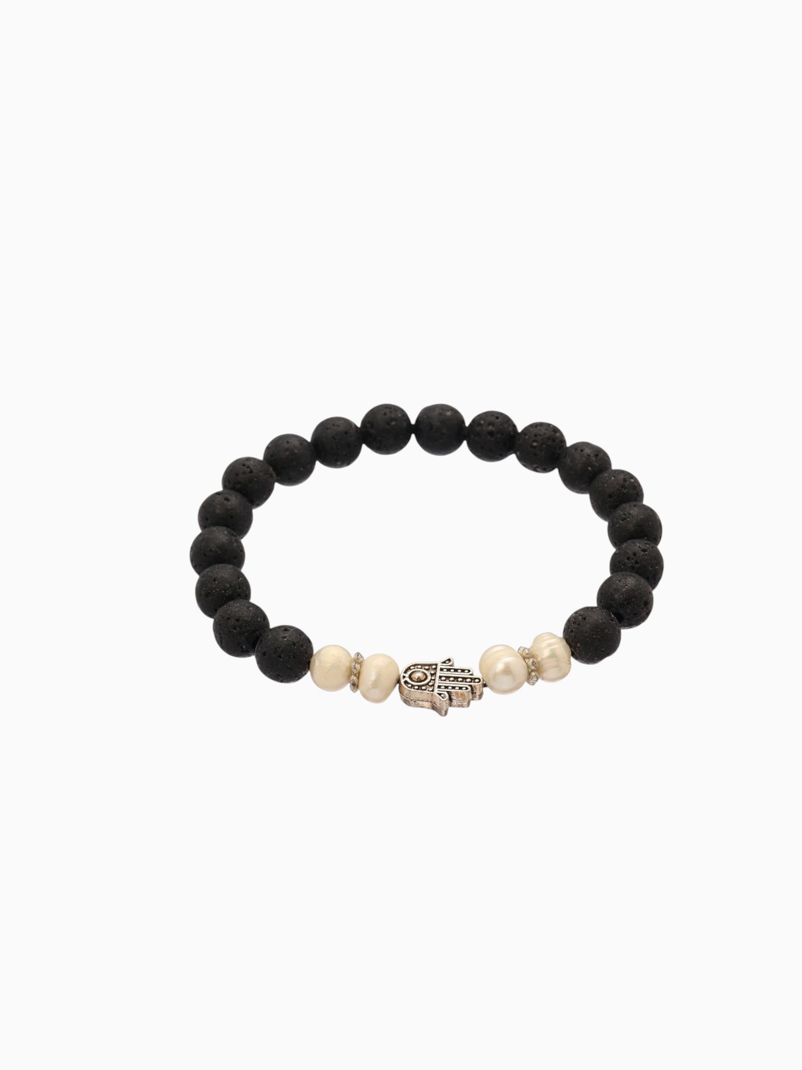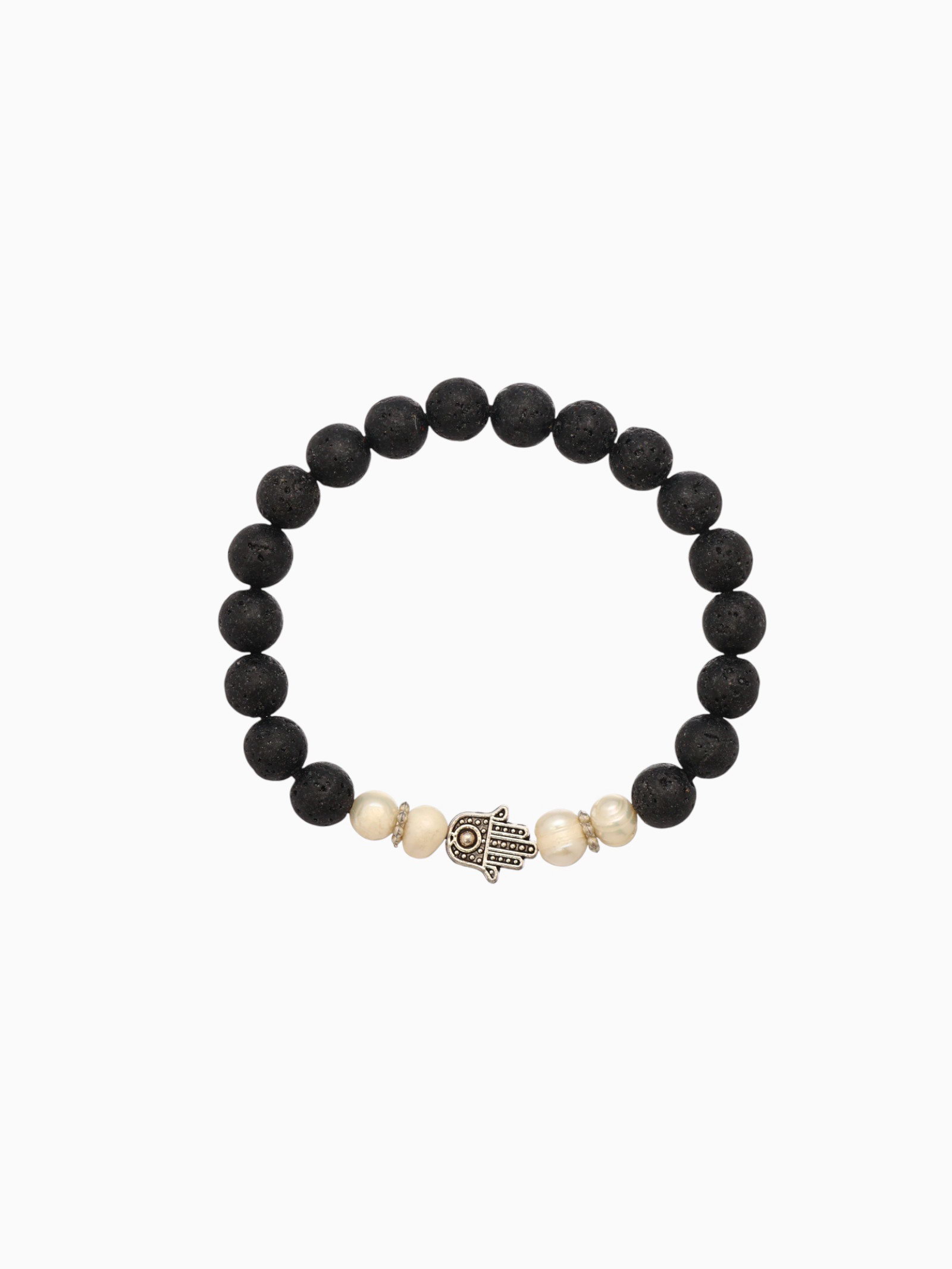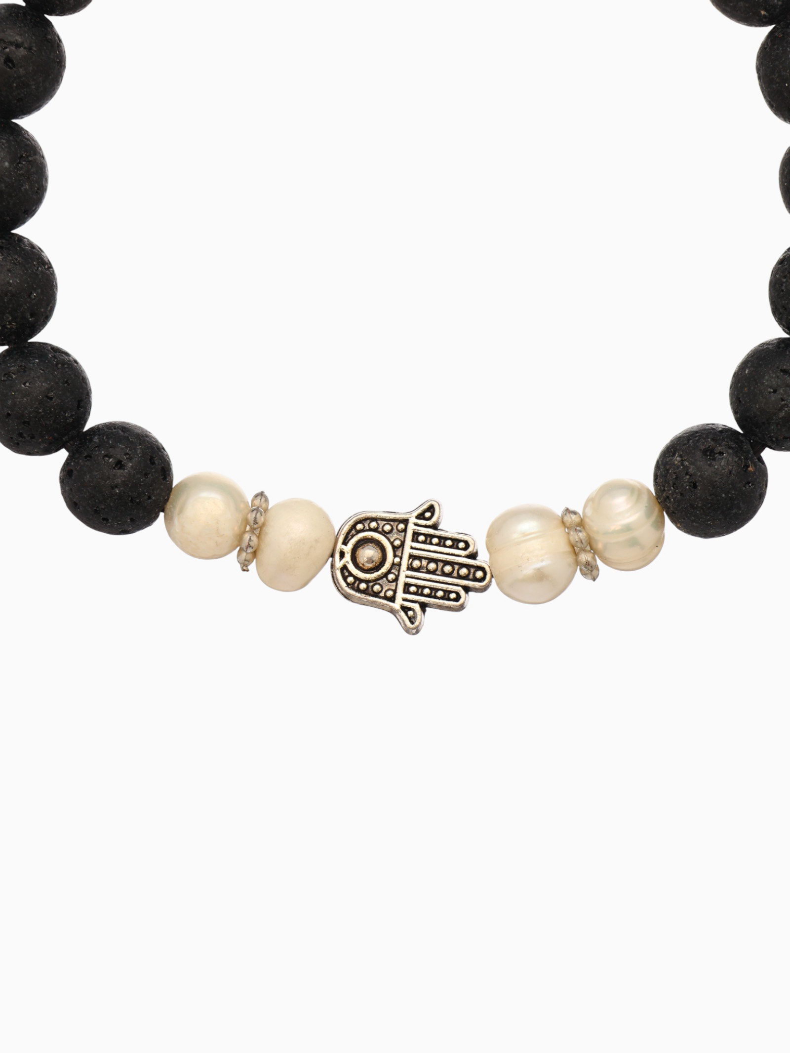 Браслет "Хамса", длина 18 см, жемчуг, лава, 2x9x1 см., Индонезия