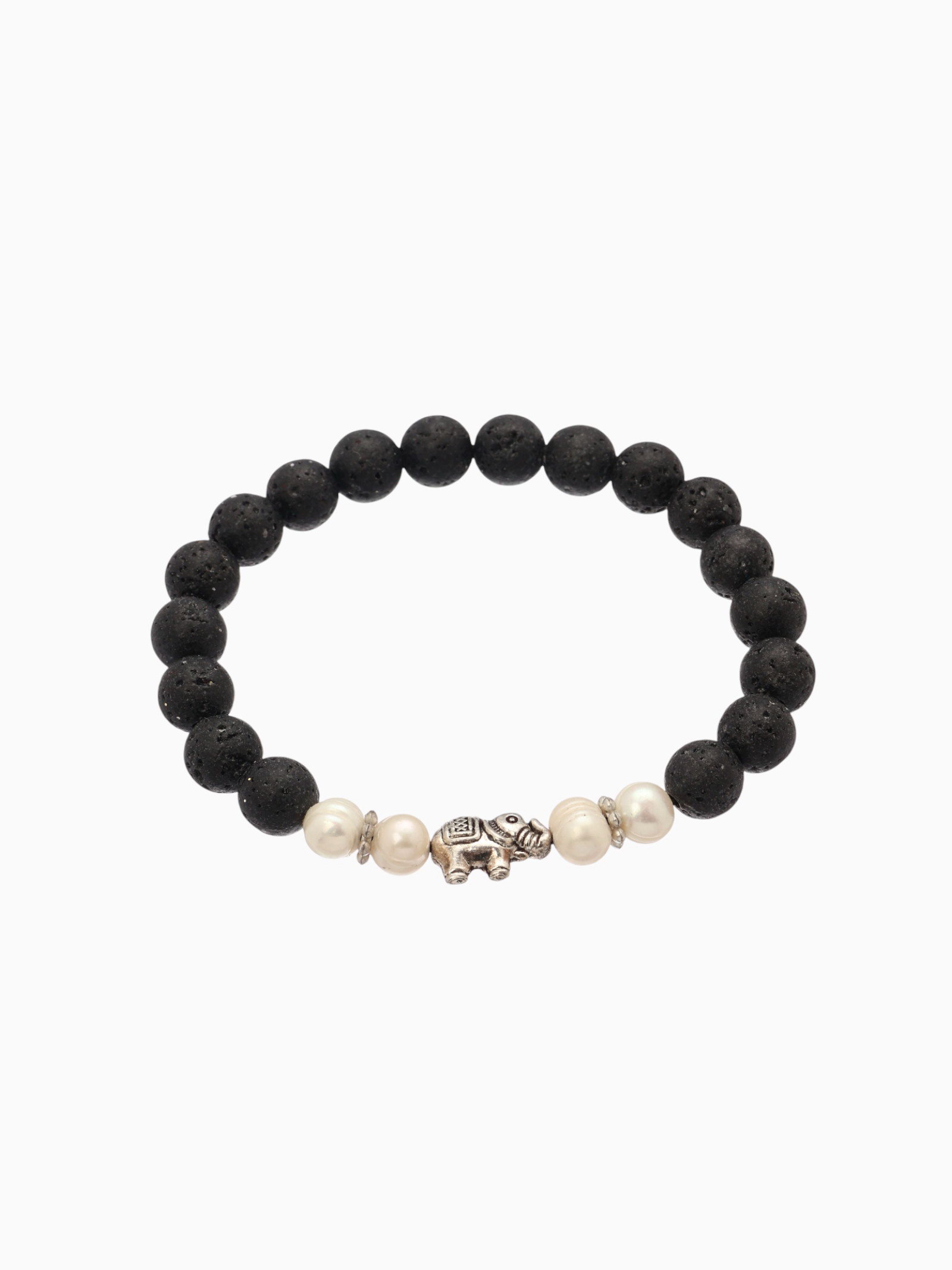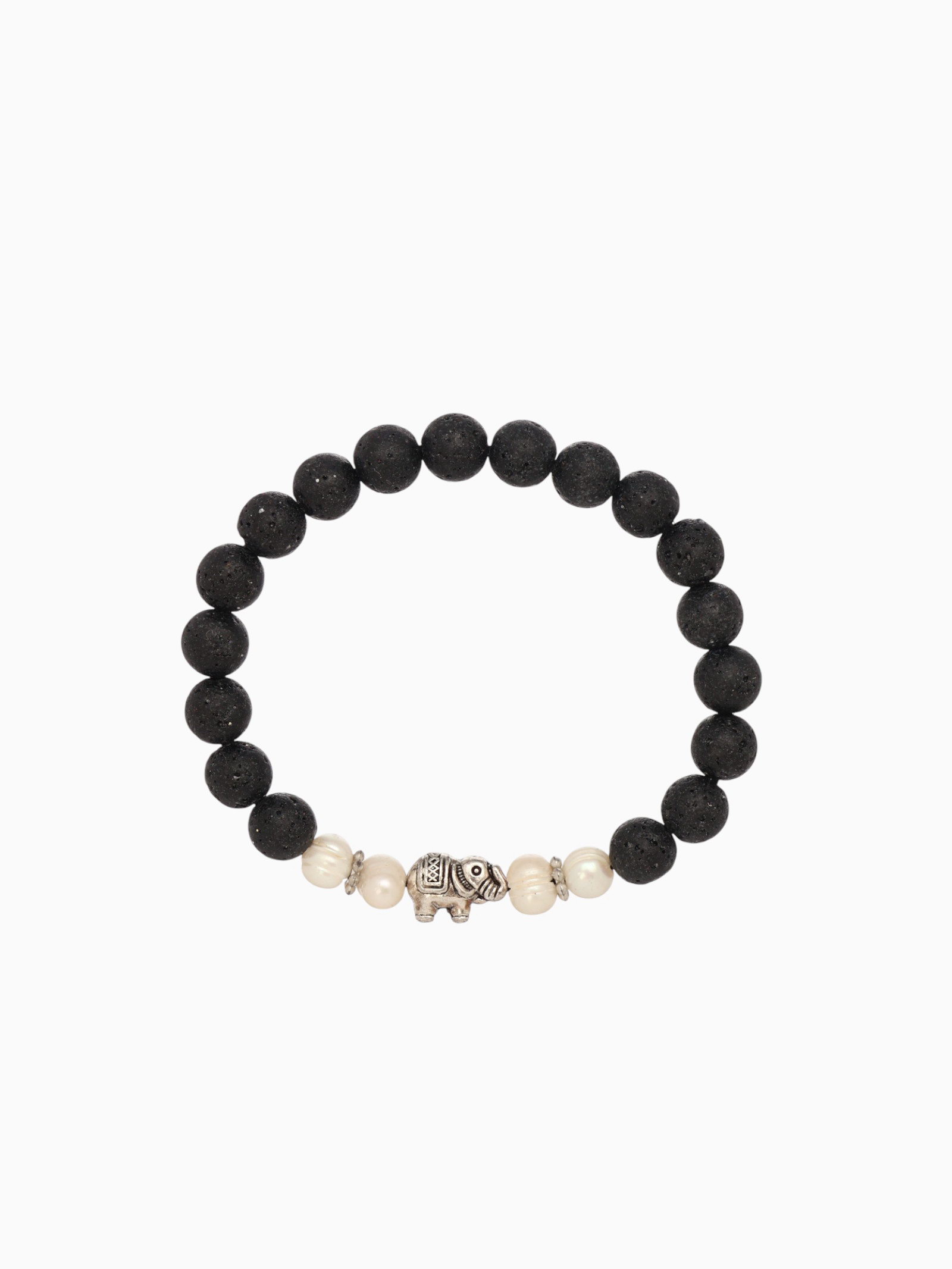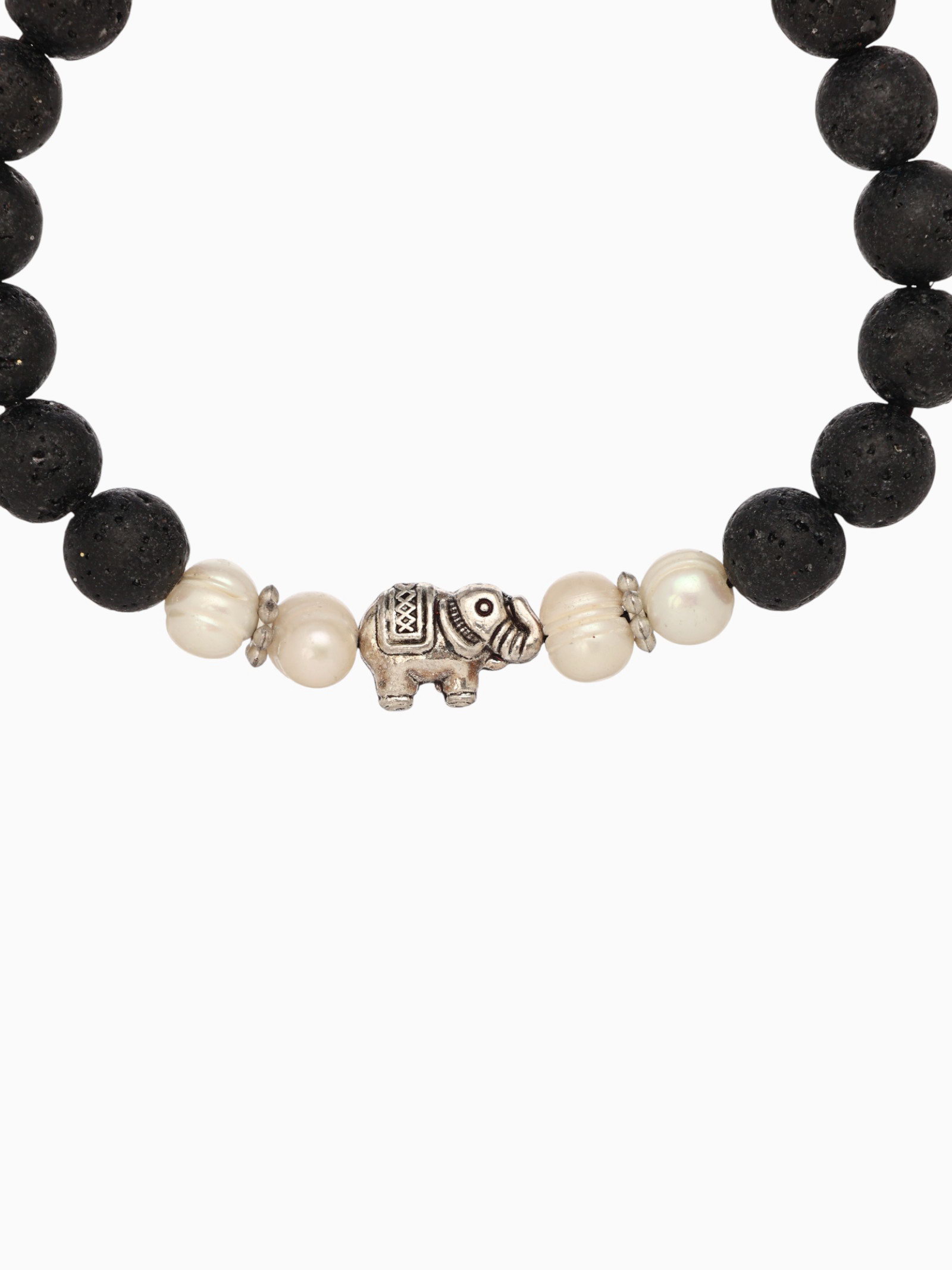 Браслет "Слоник", длина 18 см, жемчуг, лава, 2x9x1 см., Индонезия
