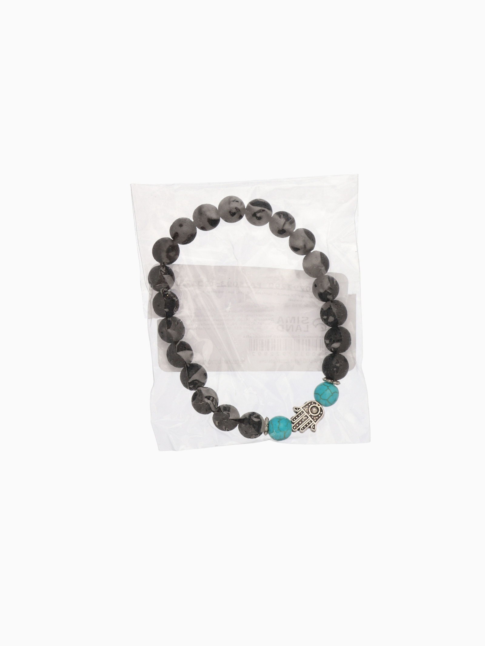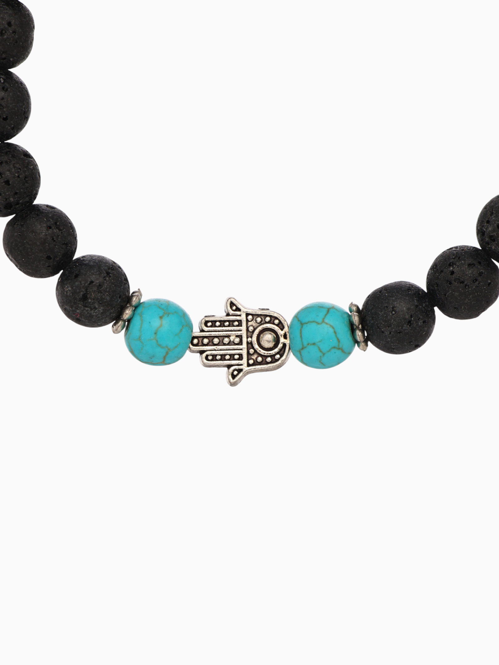 Браслет "Хамса", длина 18 см, камень пирит, лава, чёрный, бирюзовый, 2x9x0.5 см., Индонезия