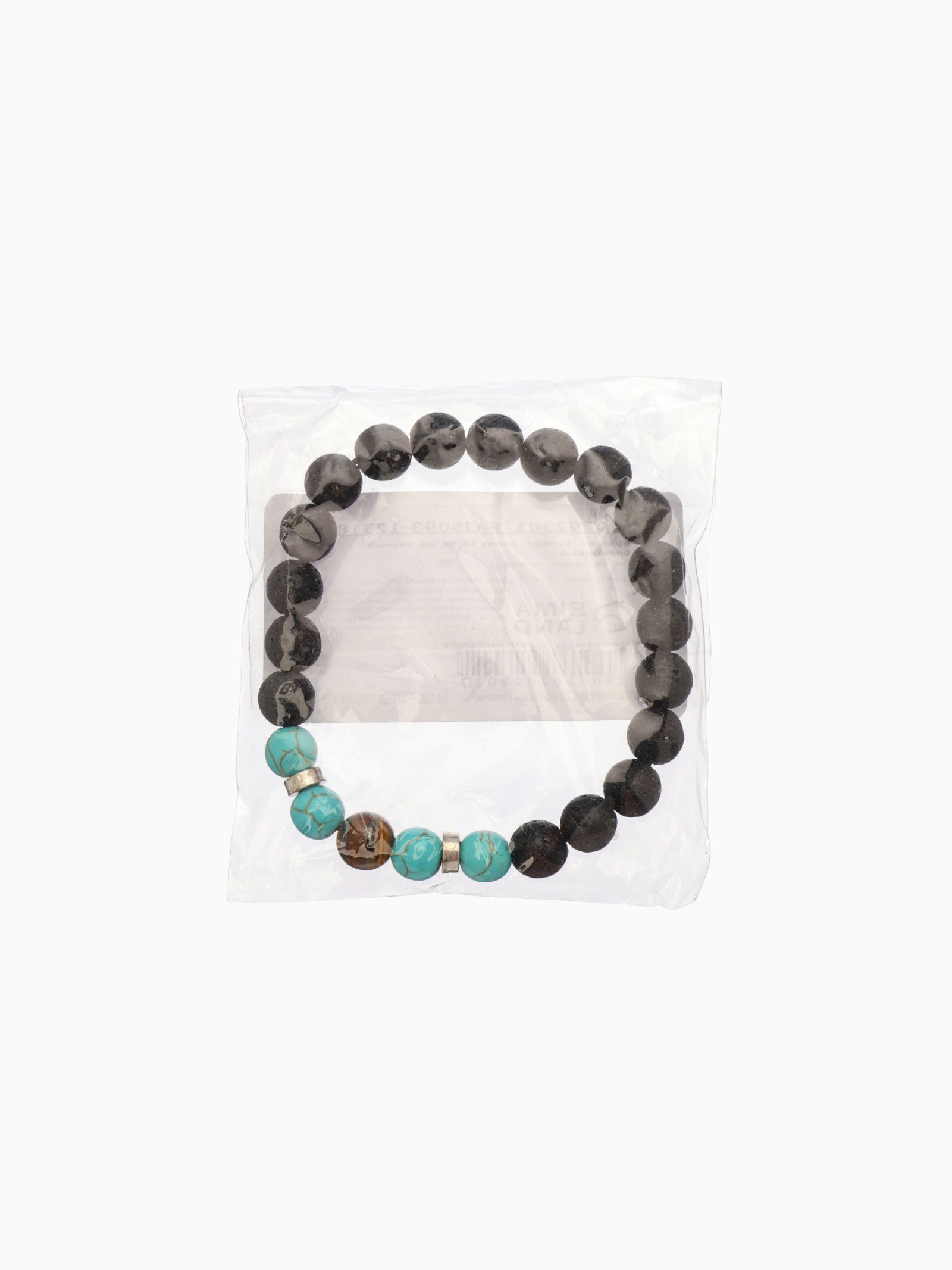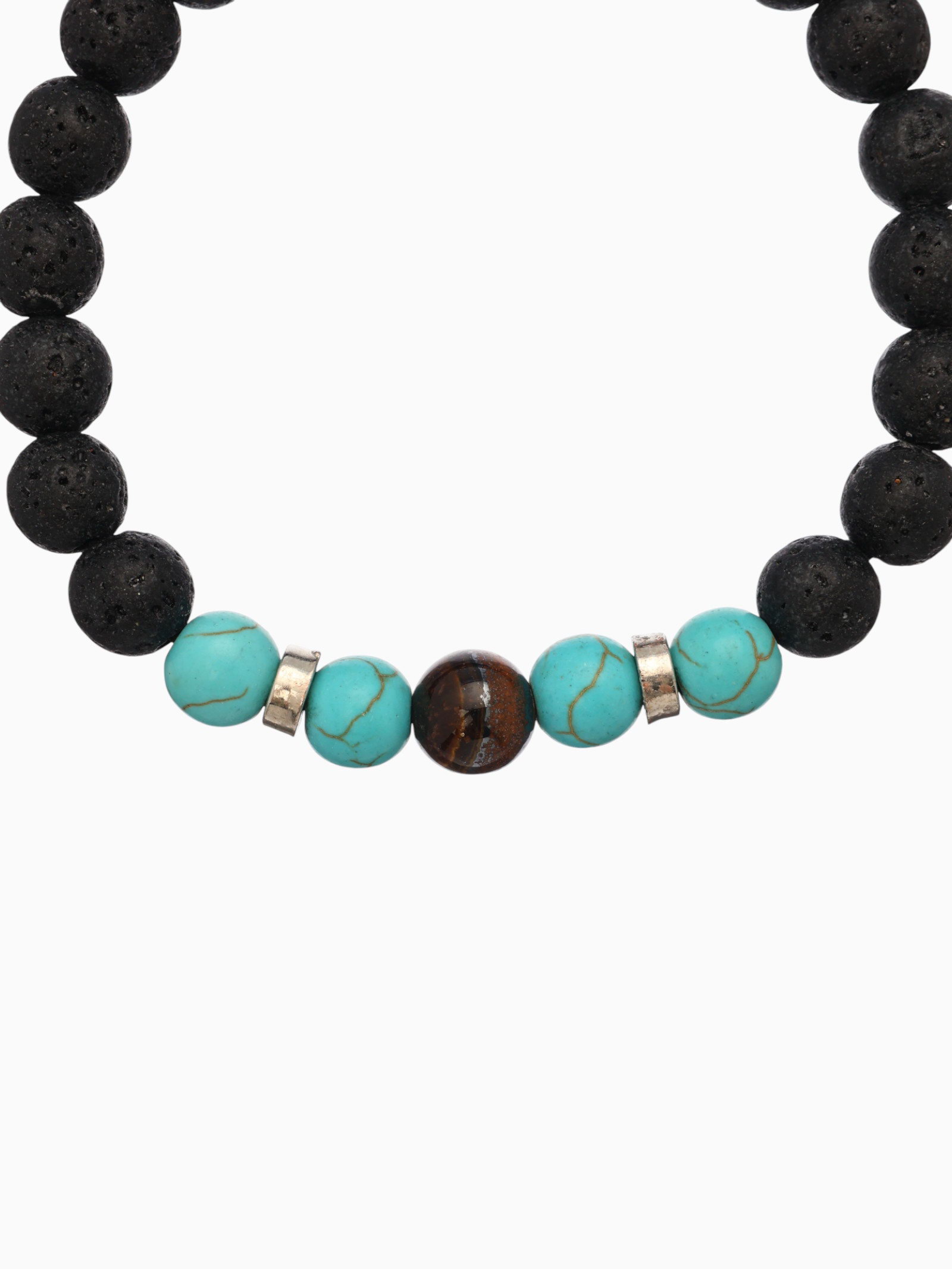 Браслет "Вулкан", длина 18 см, камень пирит, лава, чёрный, бирюзовый, 2x9x0.5 см., Индонезия