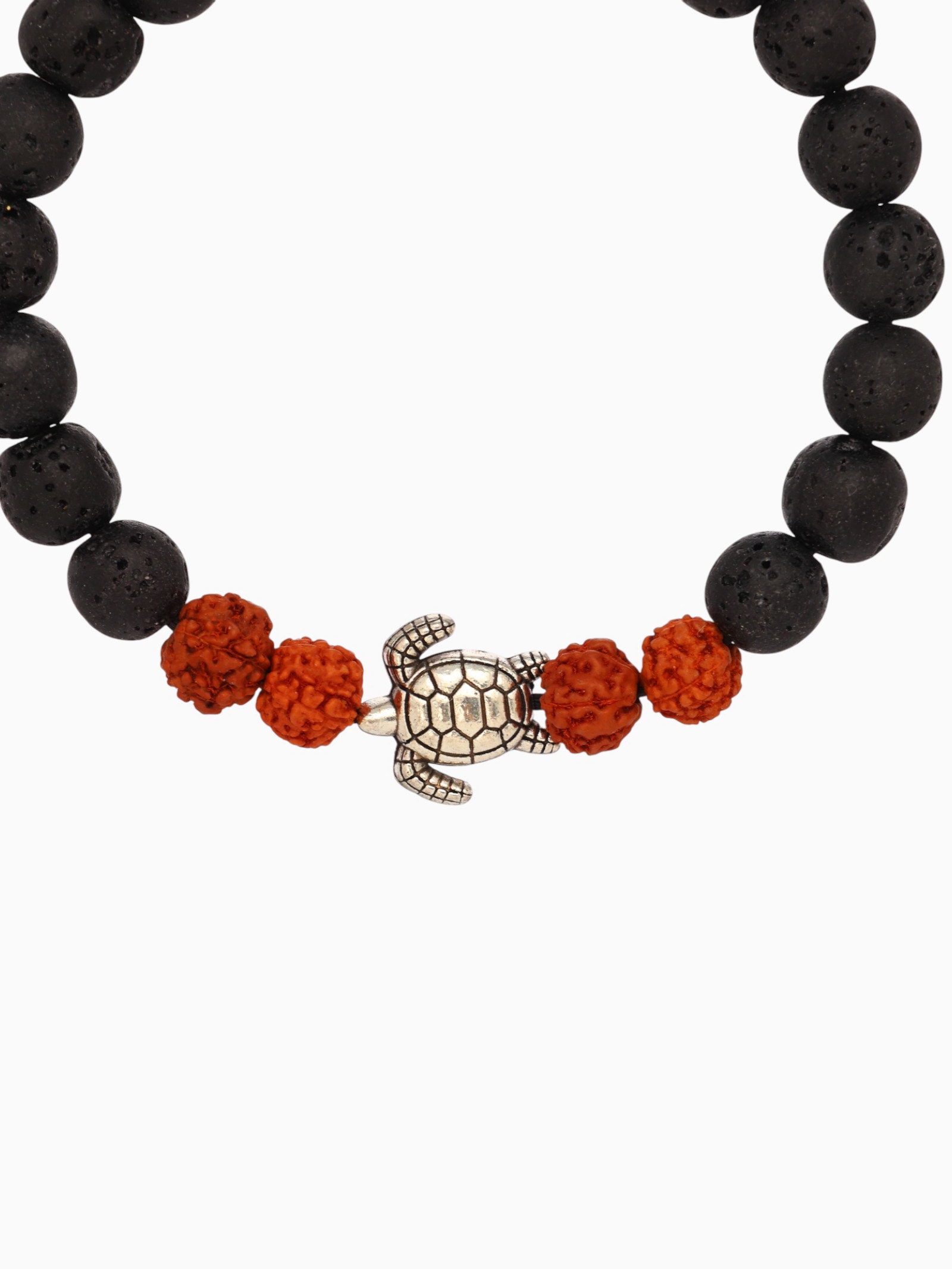 Браслет "Черепашка", лава, рудракша, длина 18 см, чёрный, коричневый, 2x9x0.5 см., Индонезия