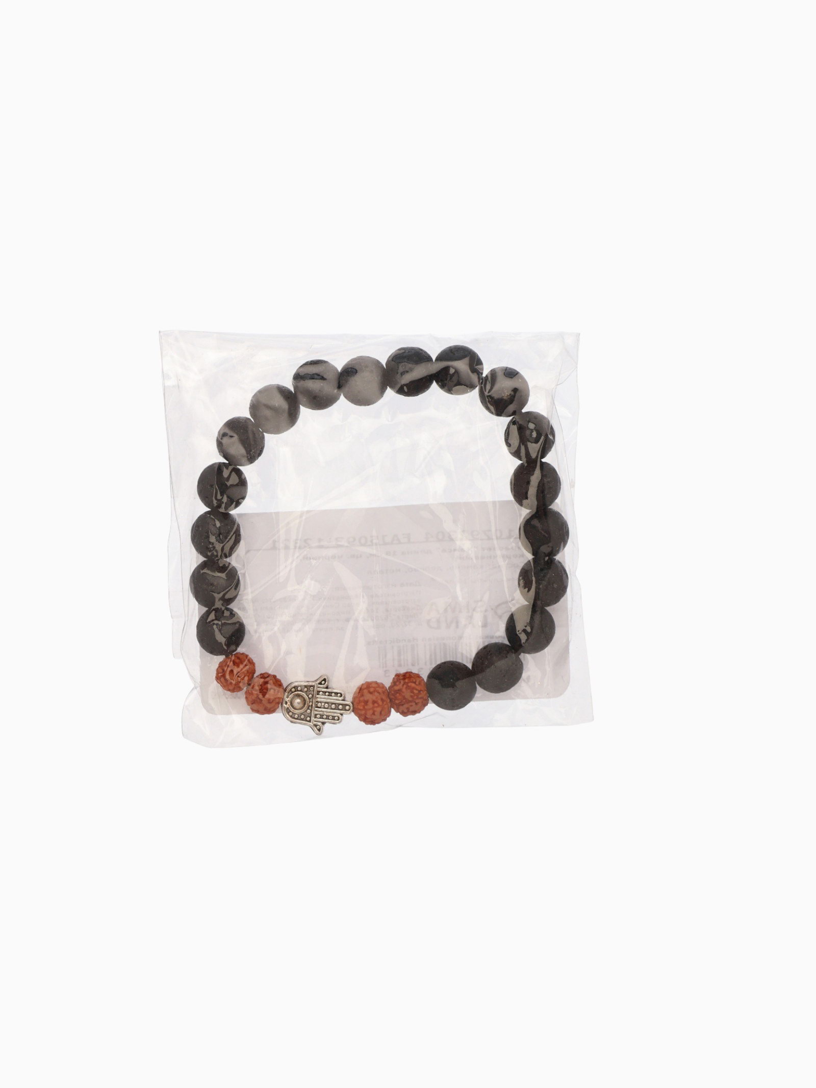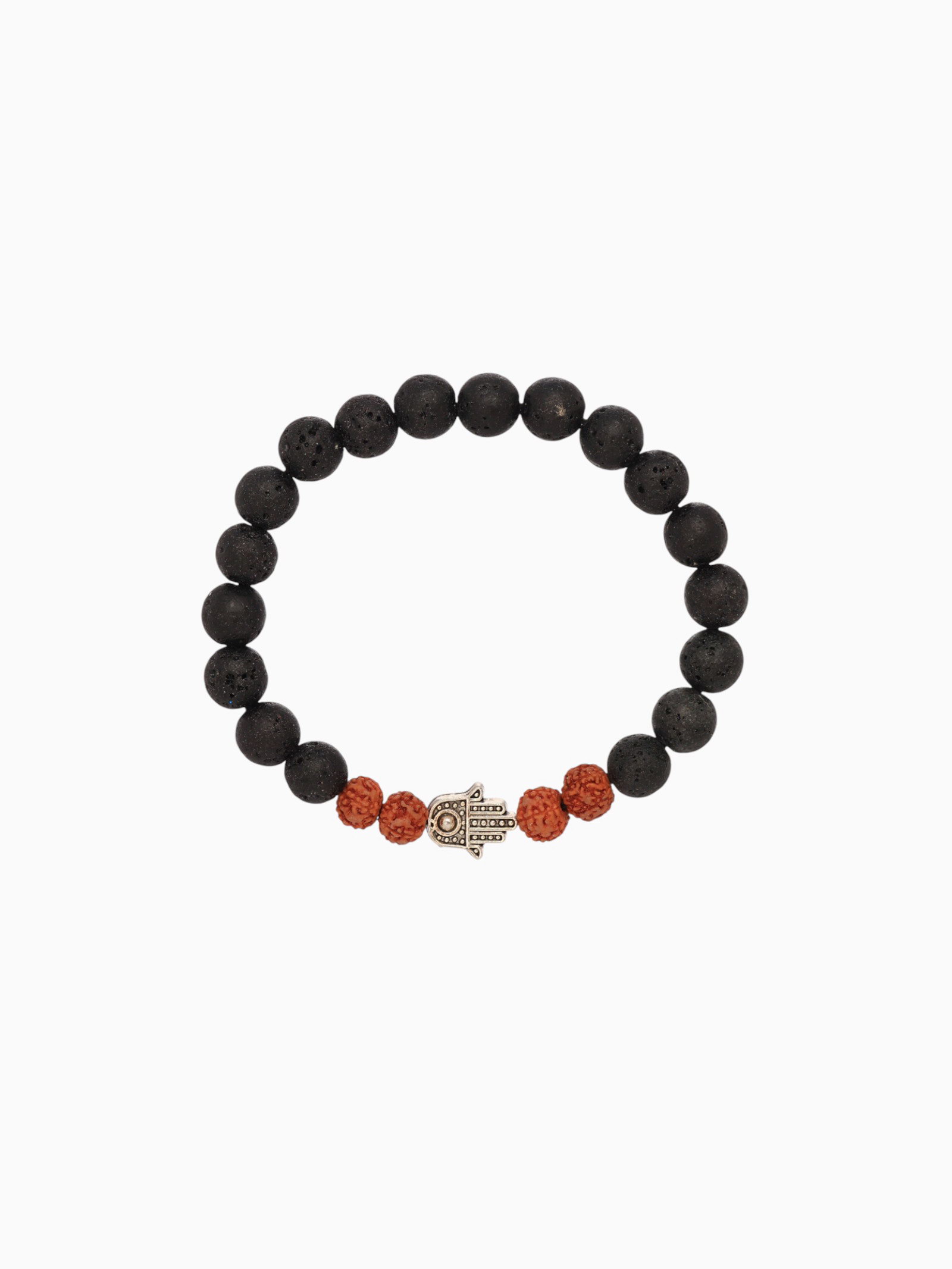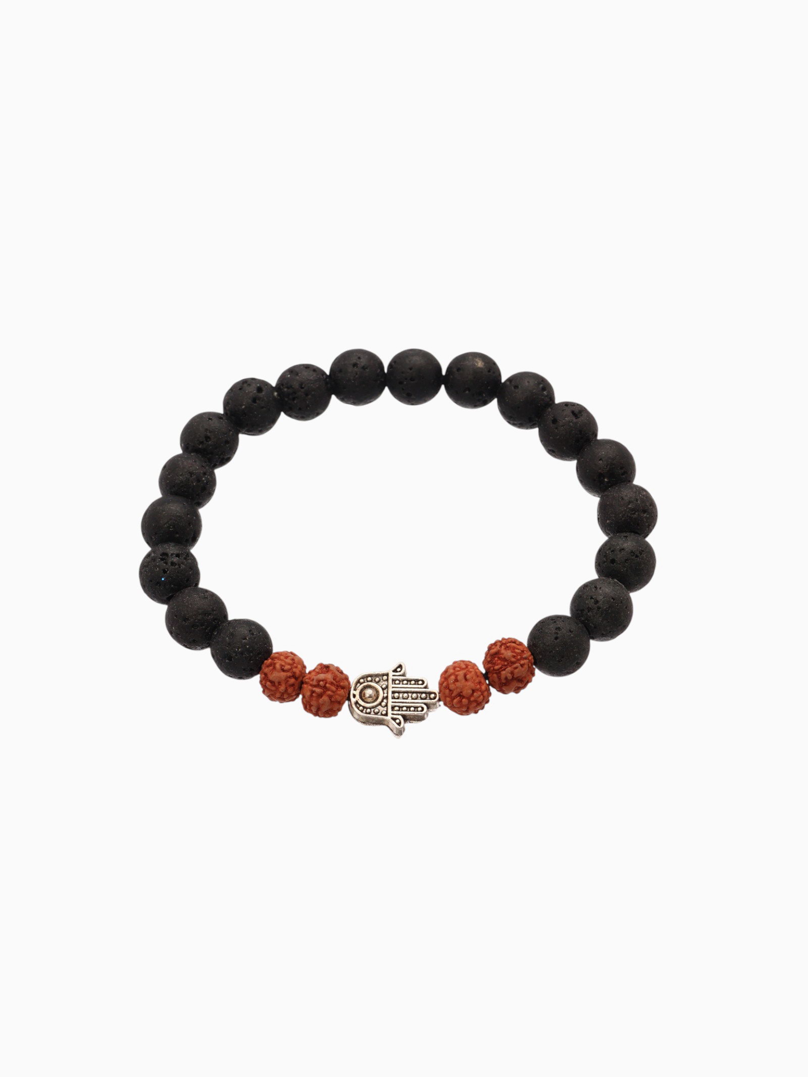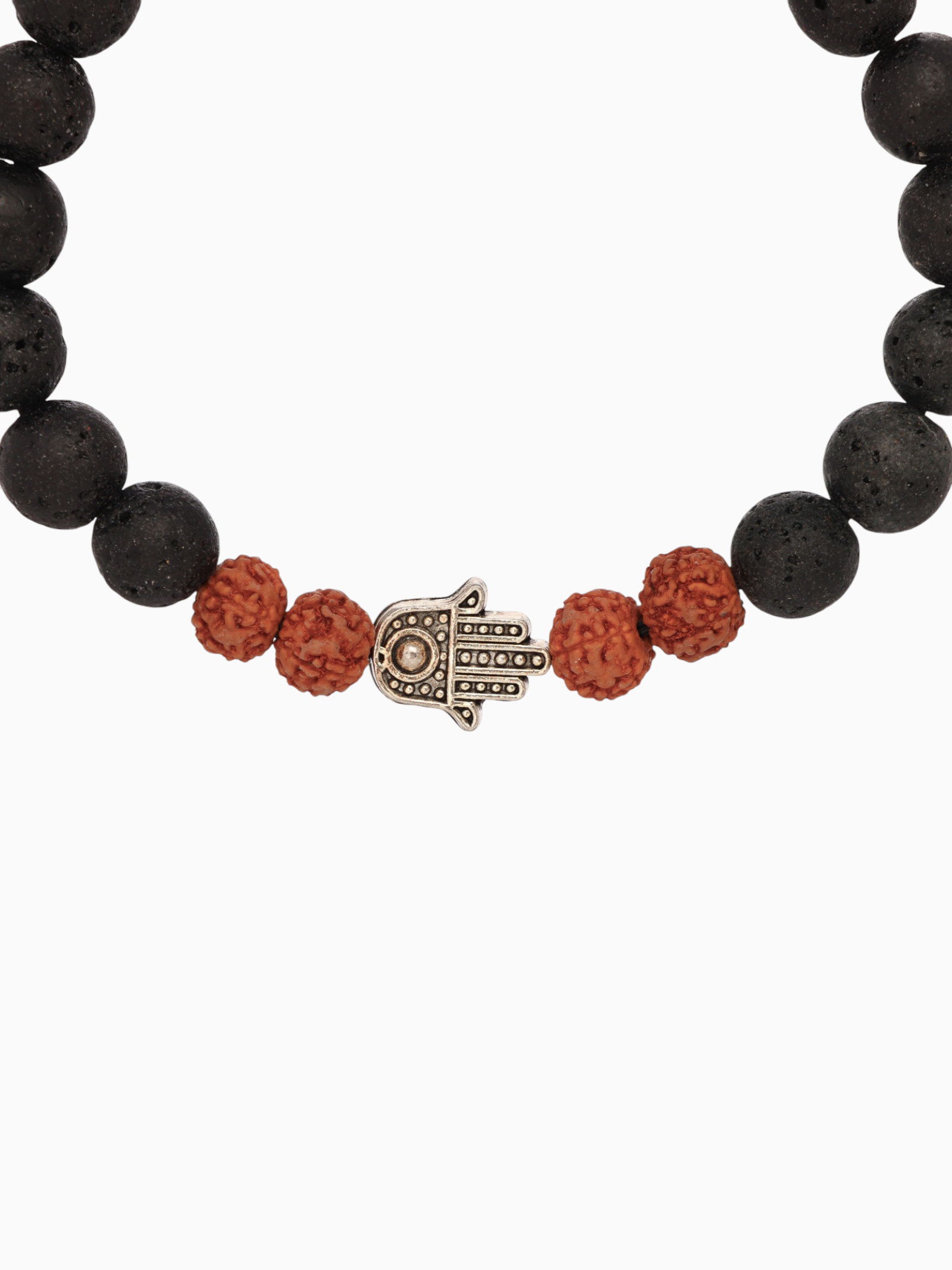 Браслет "Хамса", лава, рудракша, длина 18 см, чёрный, коричневый, 2x9x0.5 см., Индонезия