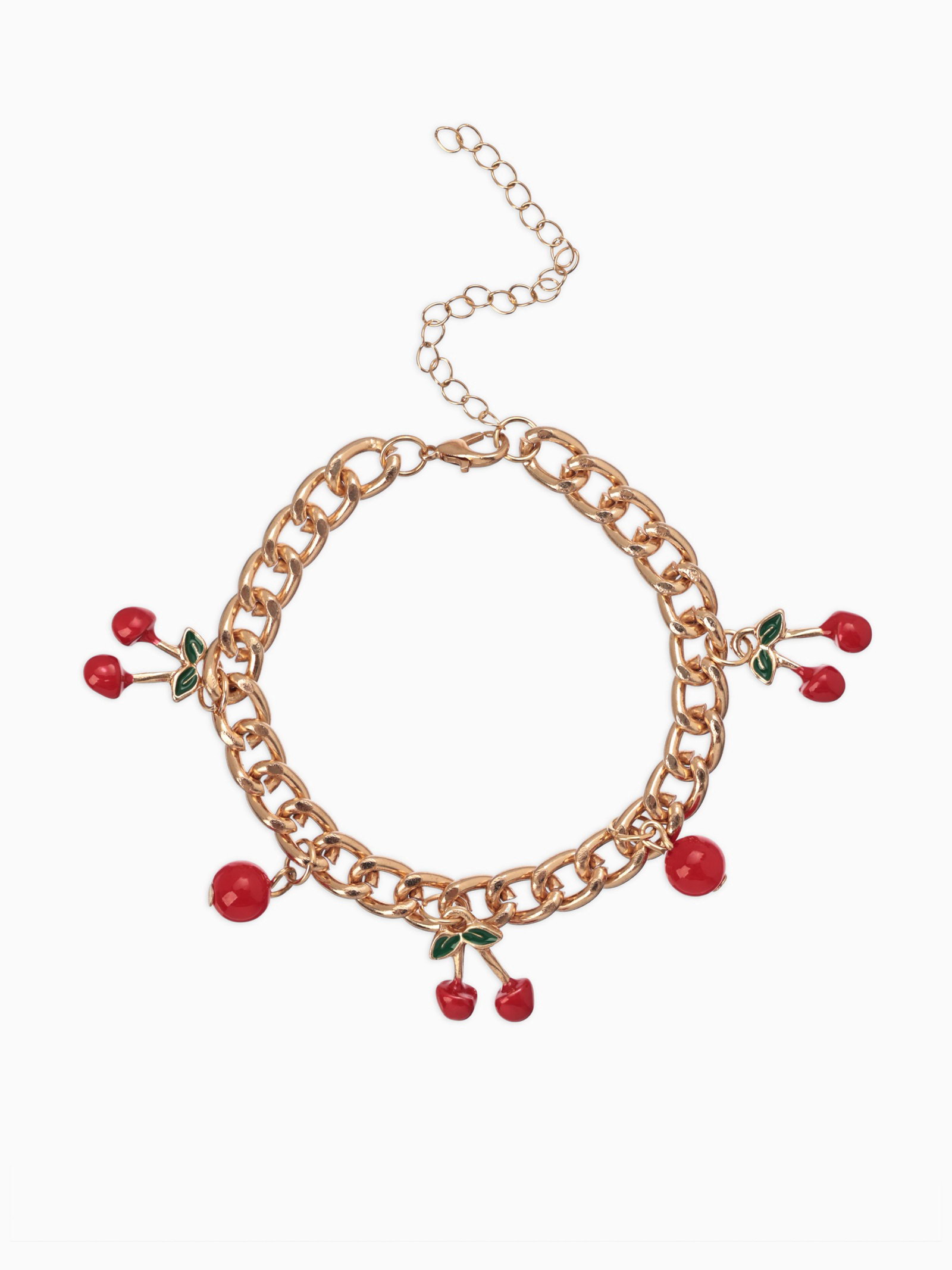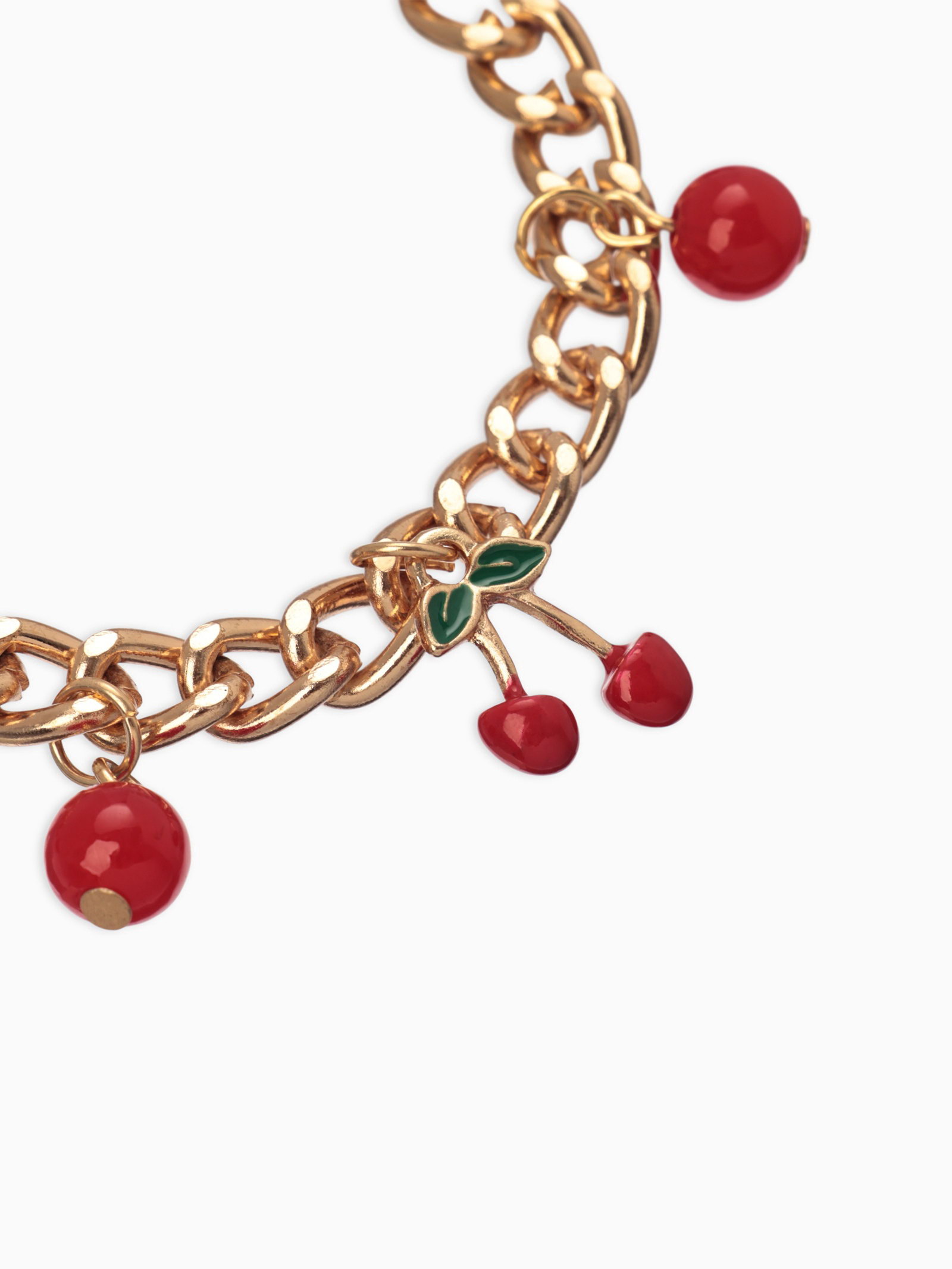 Браслет на цепи "Вишневый рай", малые, красный в золоте, 2x17x0.5 см., QF, Китай
