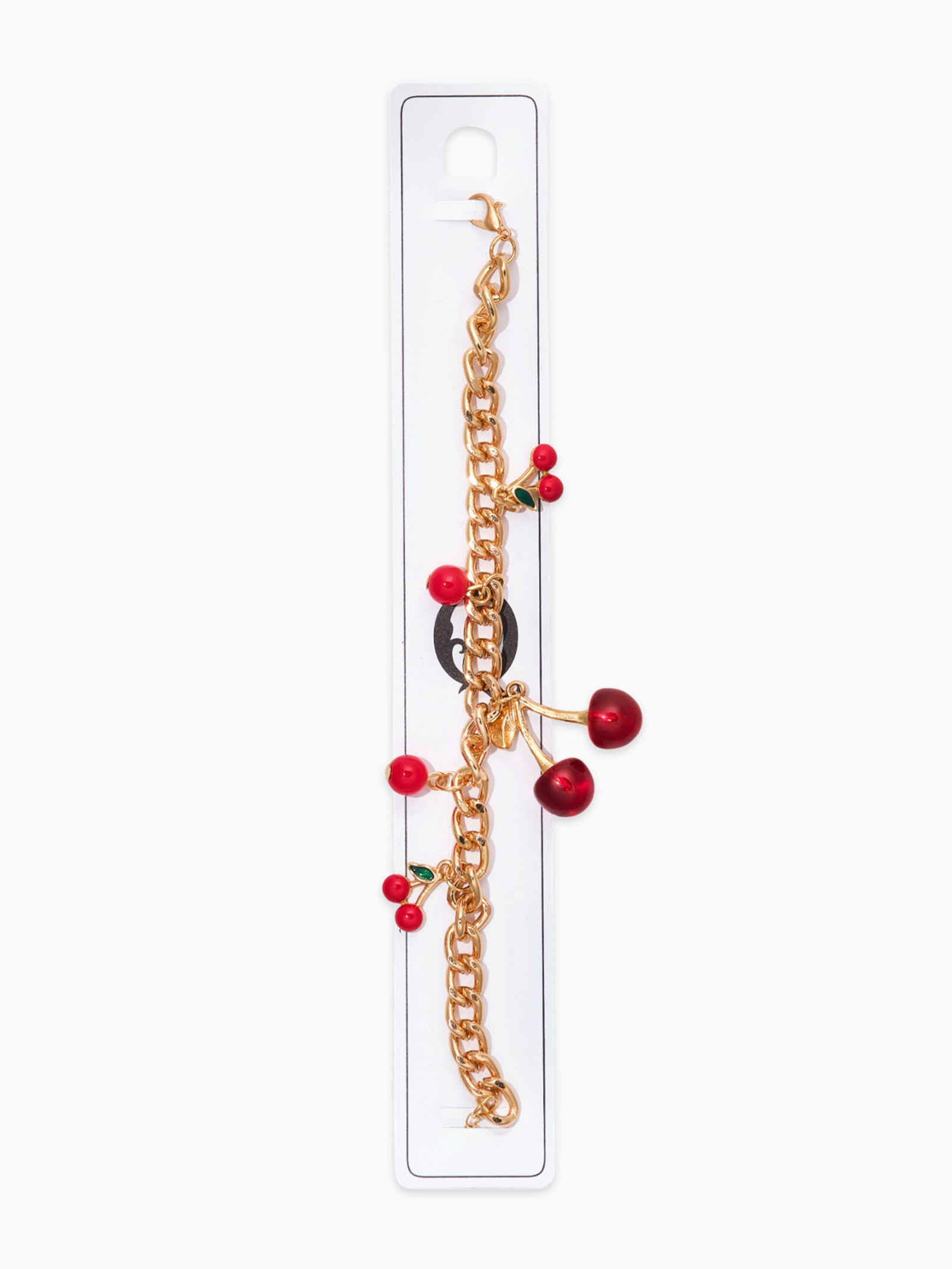 Браслет на цепи "Вишневый рай. Большая вишенка", красный в золоте, 3.5x17x0.5 см., QF, Китай