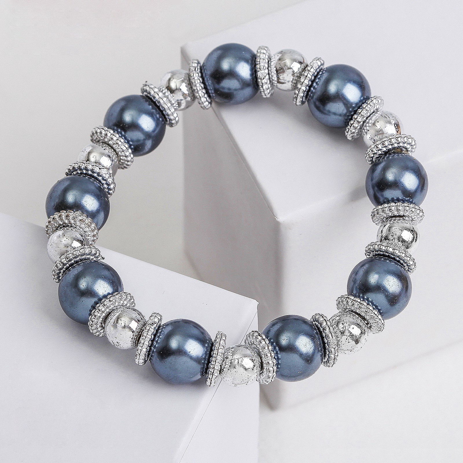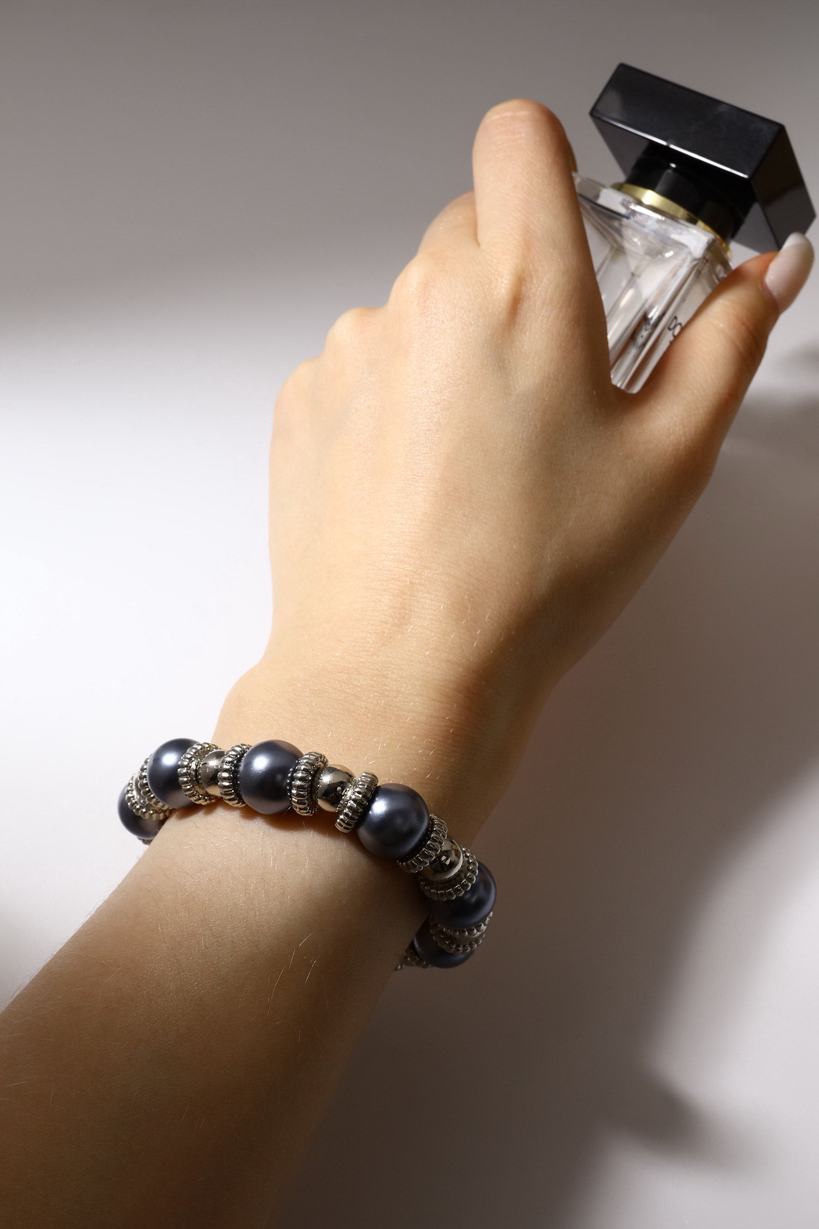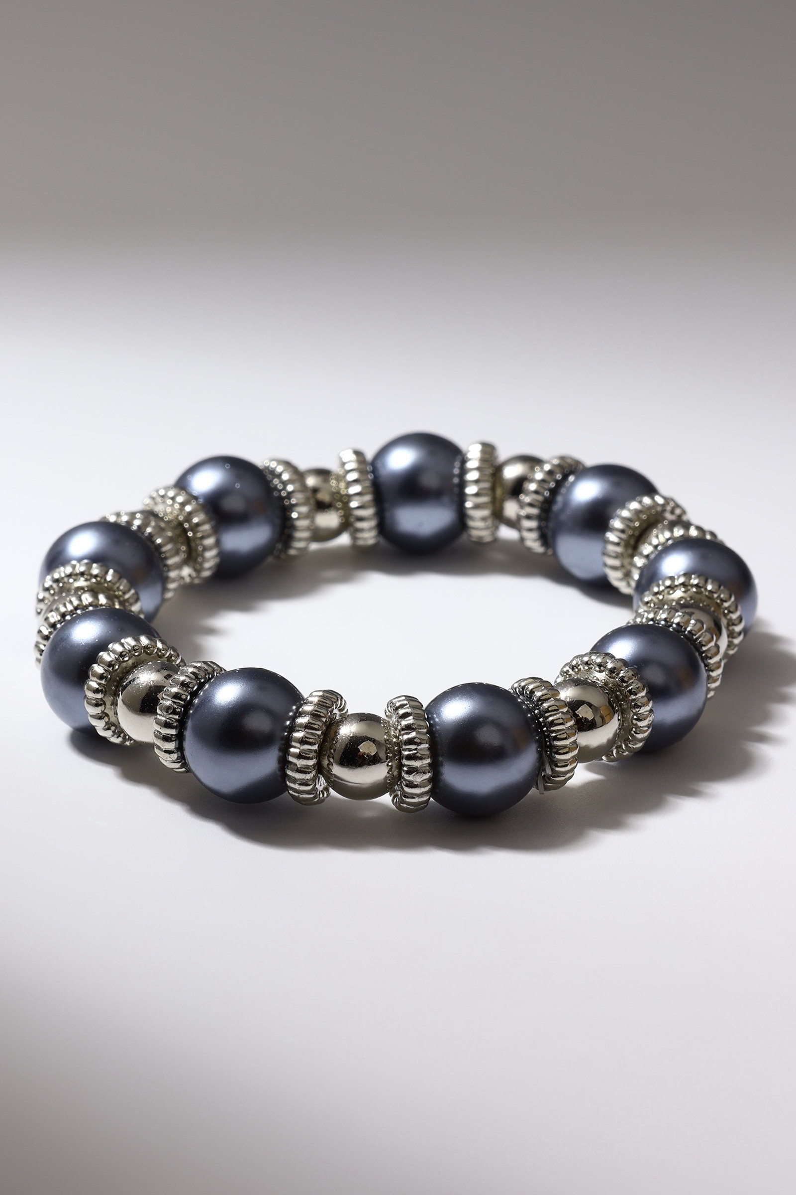 Браслет жемчуг "Бусинка" шар № 10, цвет серый в серебре, d=6 см, 1.2x6x1.2 см., QF, Китай
