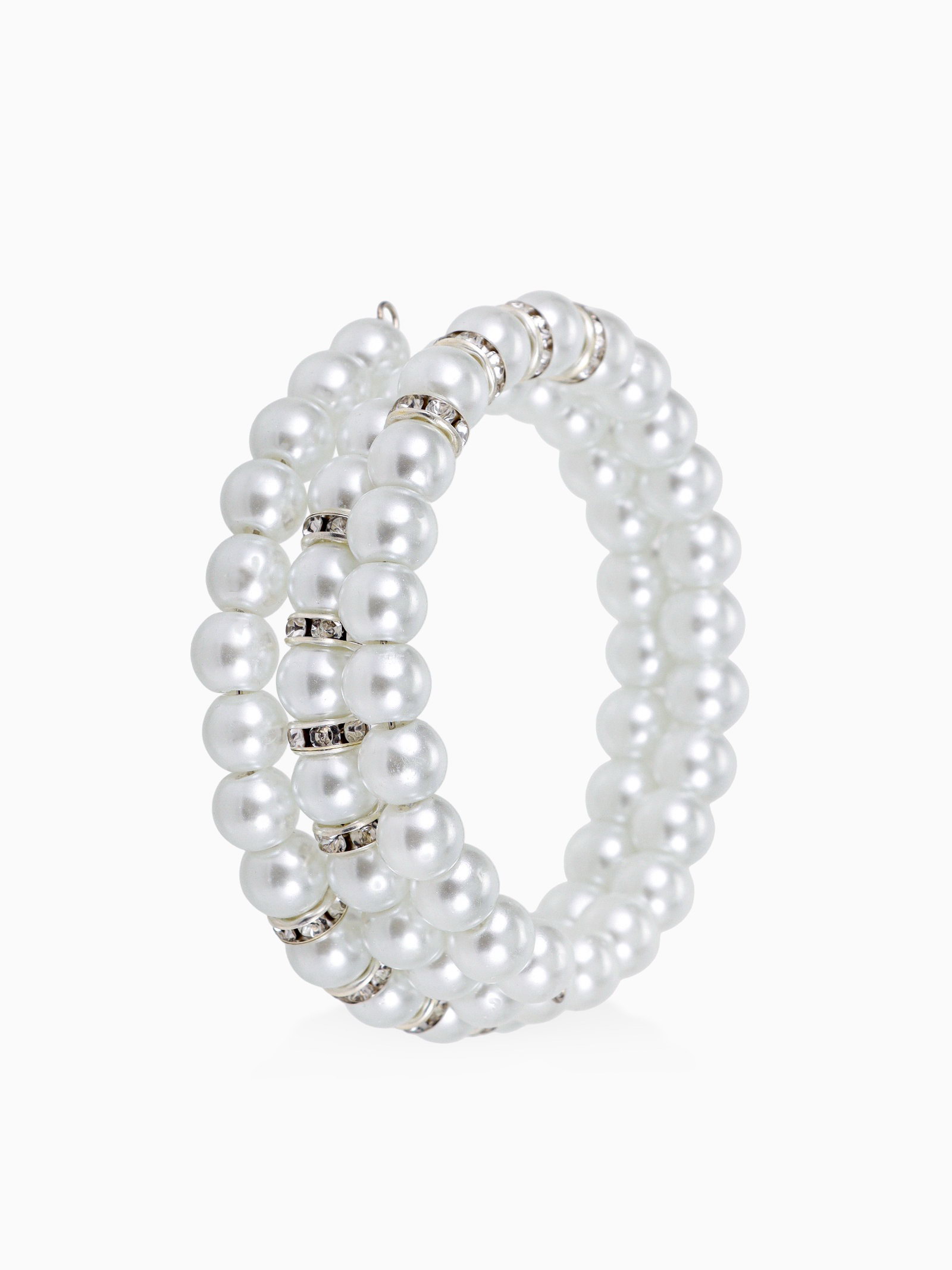 Браслет-пружинка "Жемчужинка морская" 3 ряда, белый в серебре, L=7 см, 4x7x0.8 см., QF, Китай