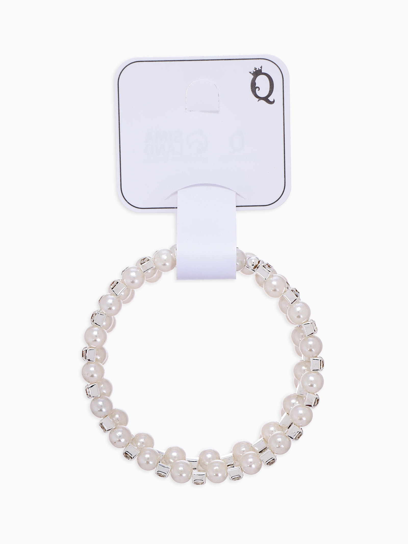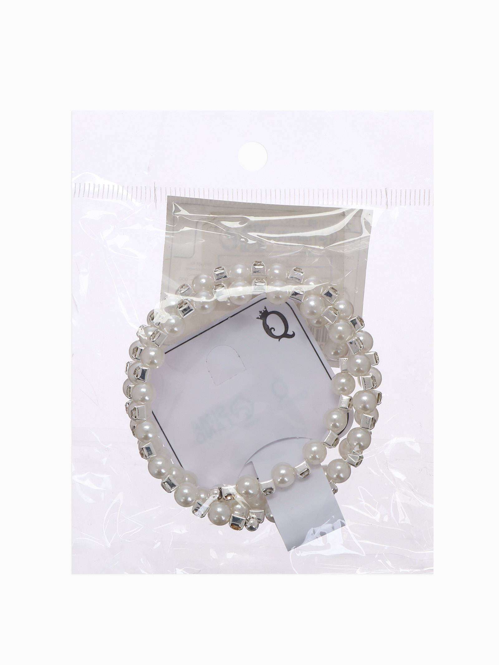Браслет-пружинка "Жемчужинка" 3 ряда, шахматы, белый, d=6.5 см, 2x6.5x2 см., QF, Китай