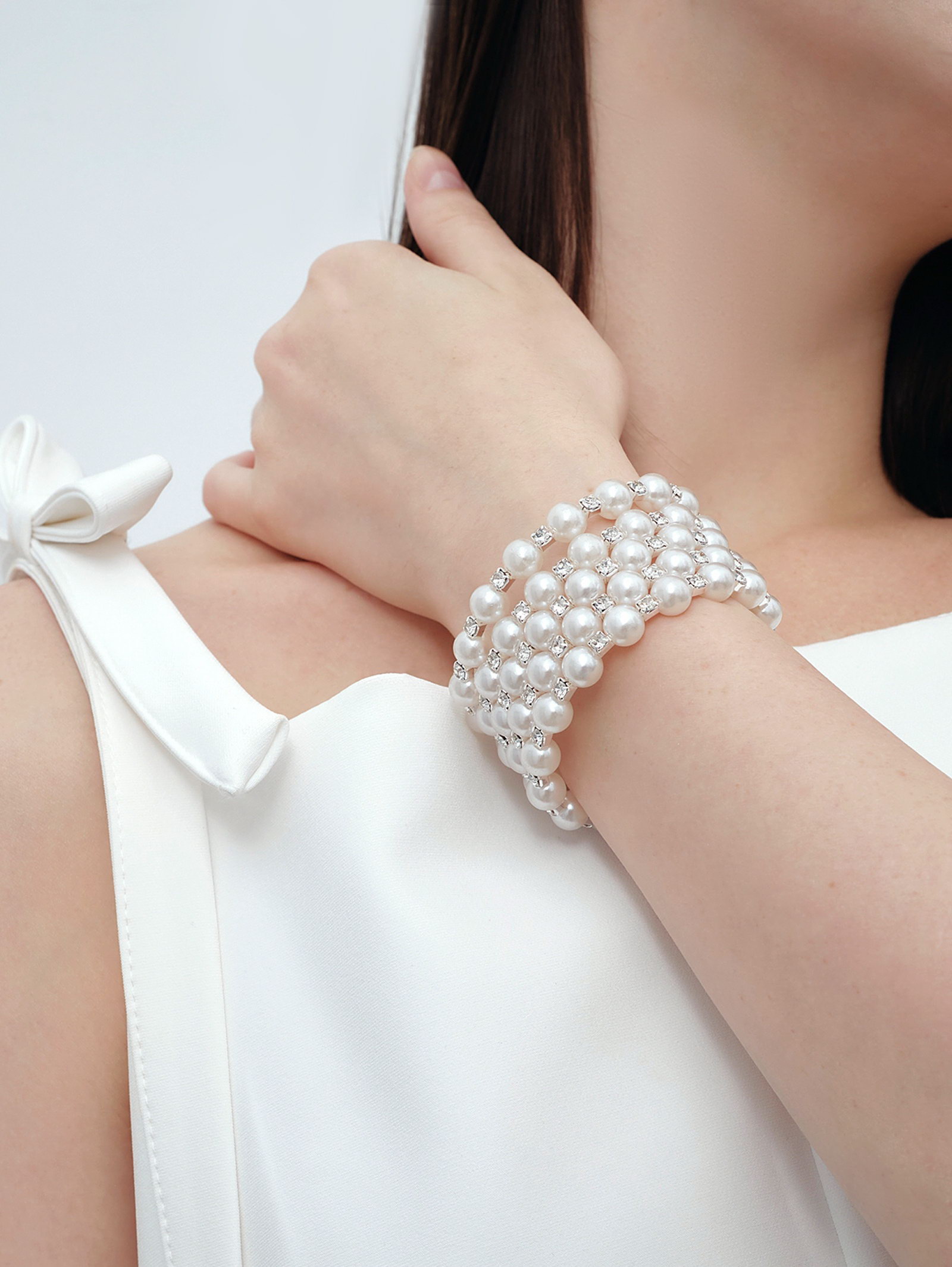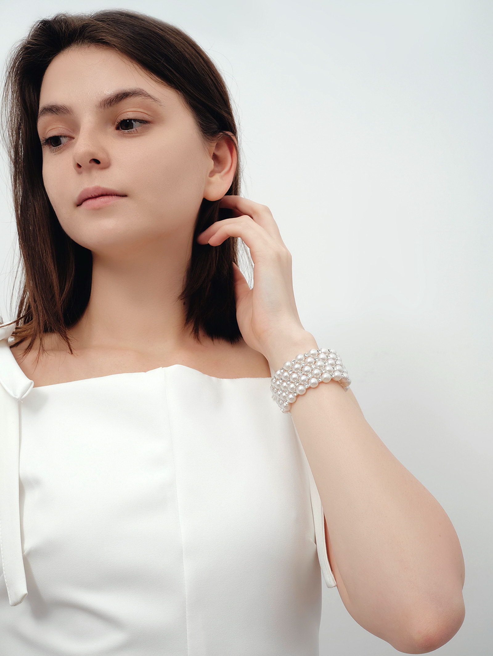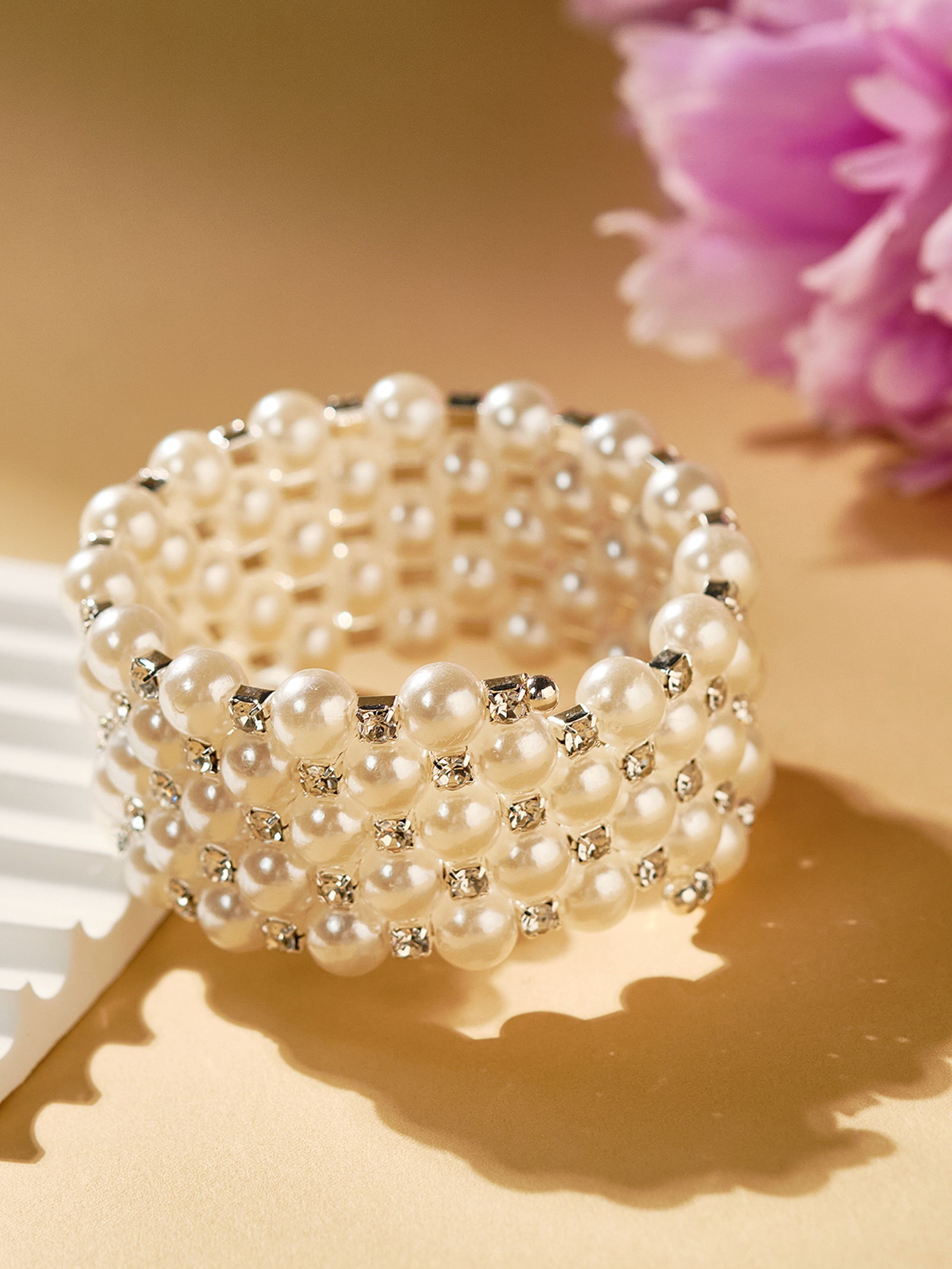 Браслет-пружинка "Жемчужинка" 5 рядов, шахматы, цвет белый, 6 см, 0.8x6x5 см., QF, Китай