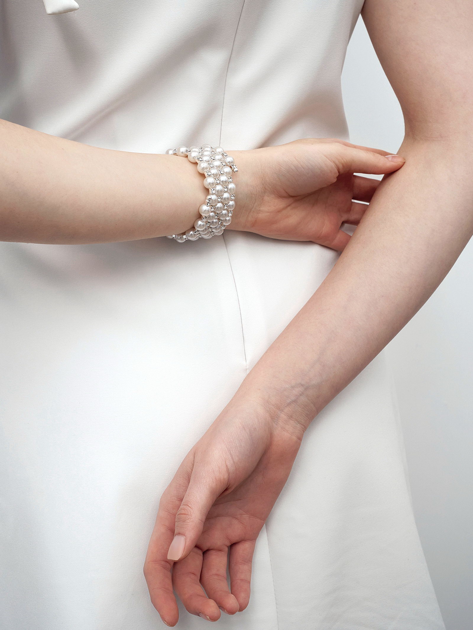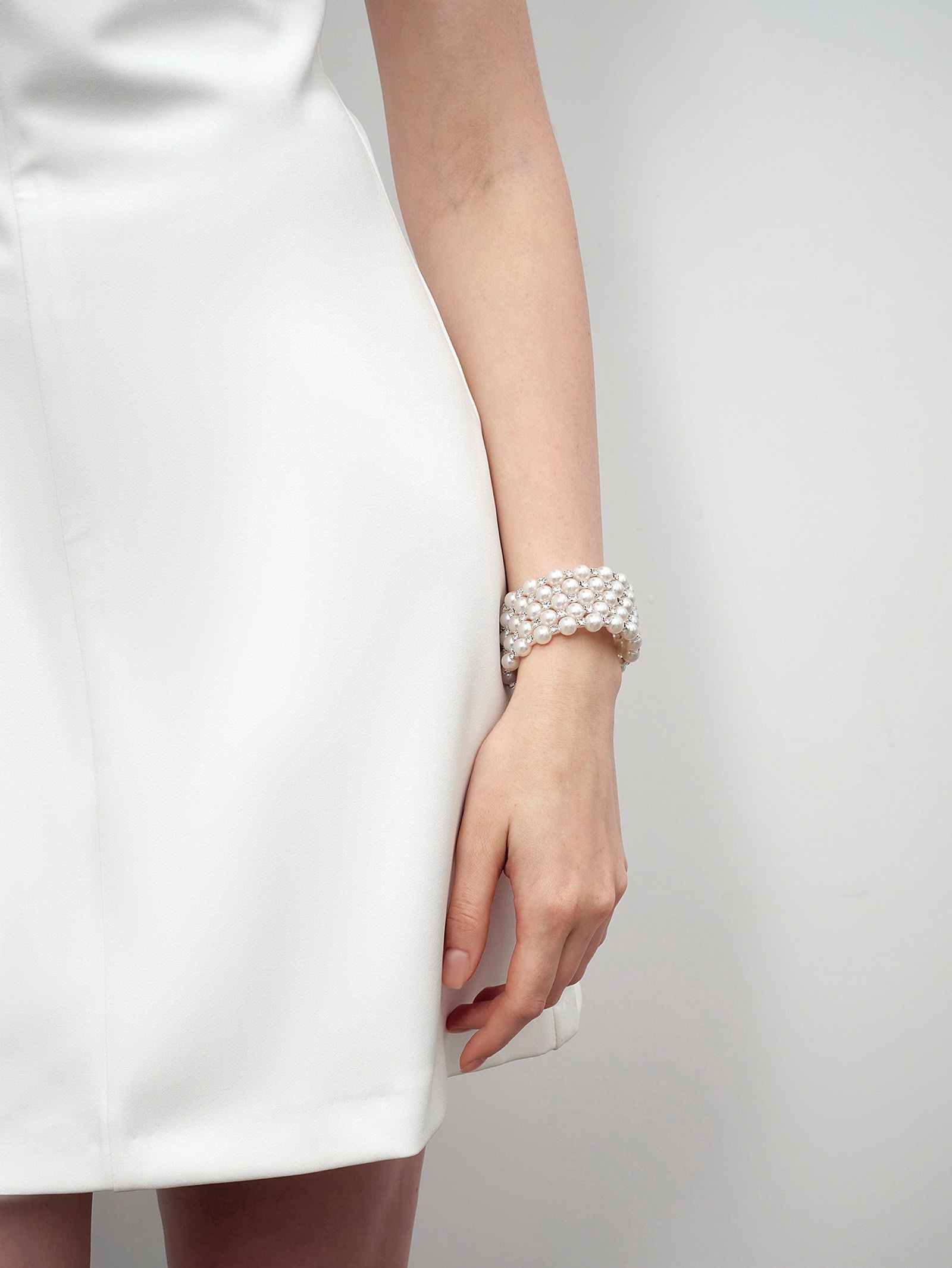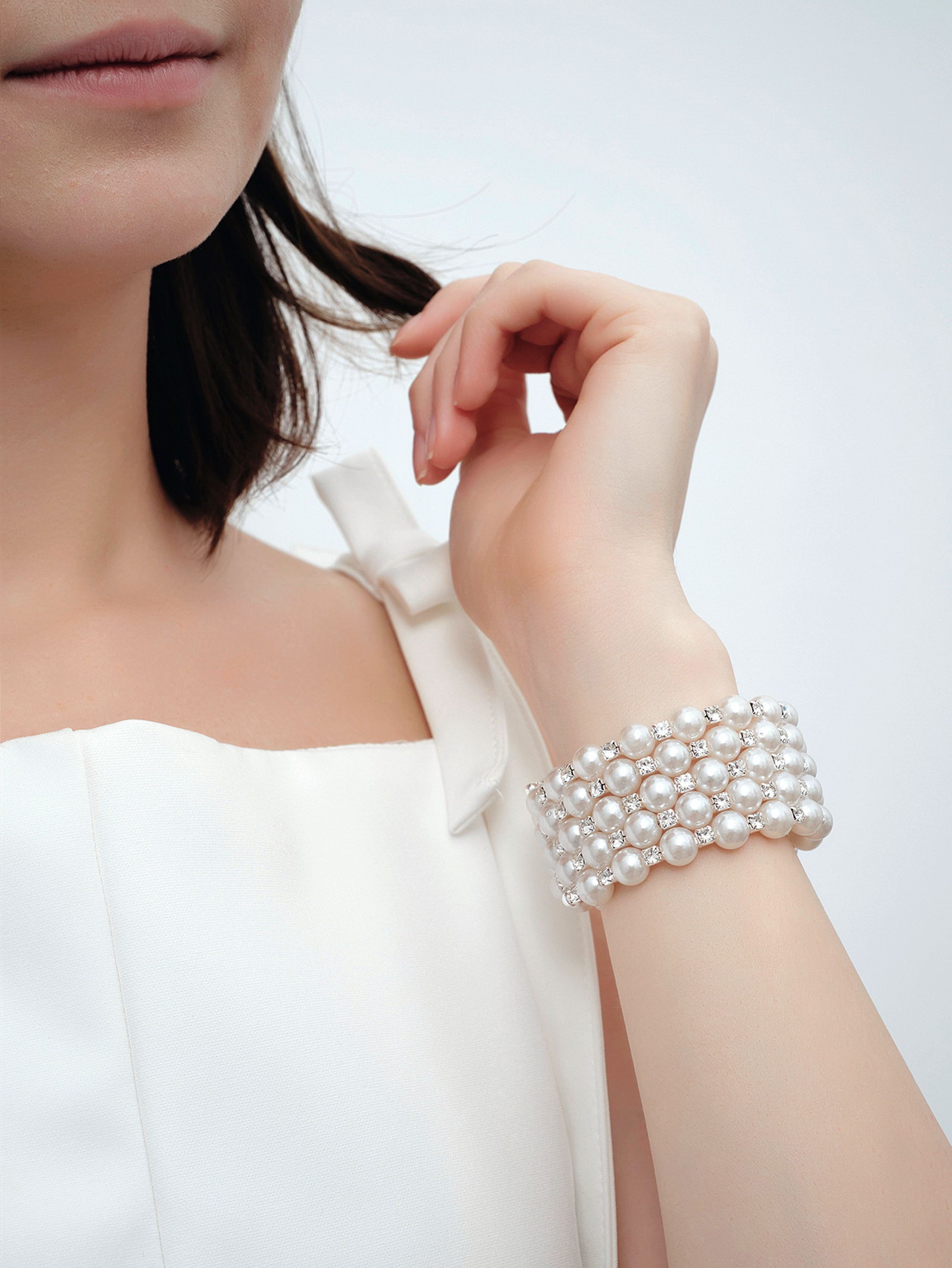 Браслет-пружинка "Жемчужинка" 5 рядов, шахматы, цвет белый, 6 см, 0.8x6x5 см., QF, Китай