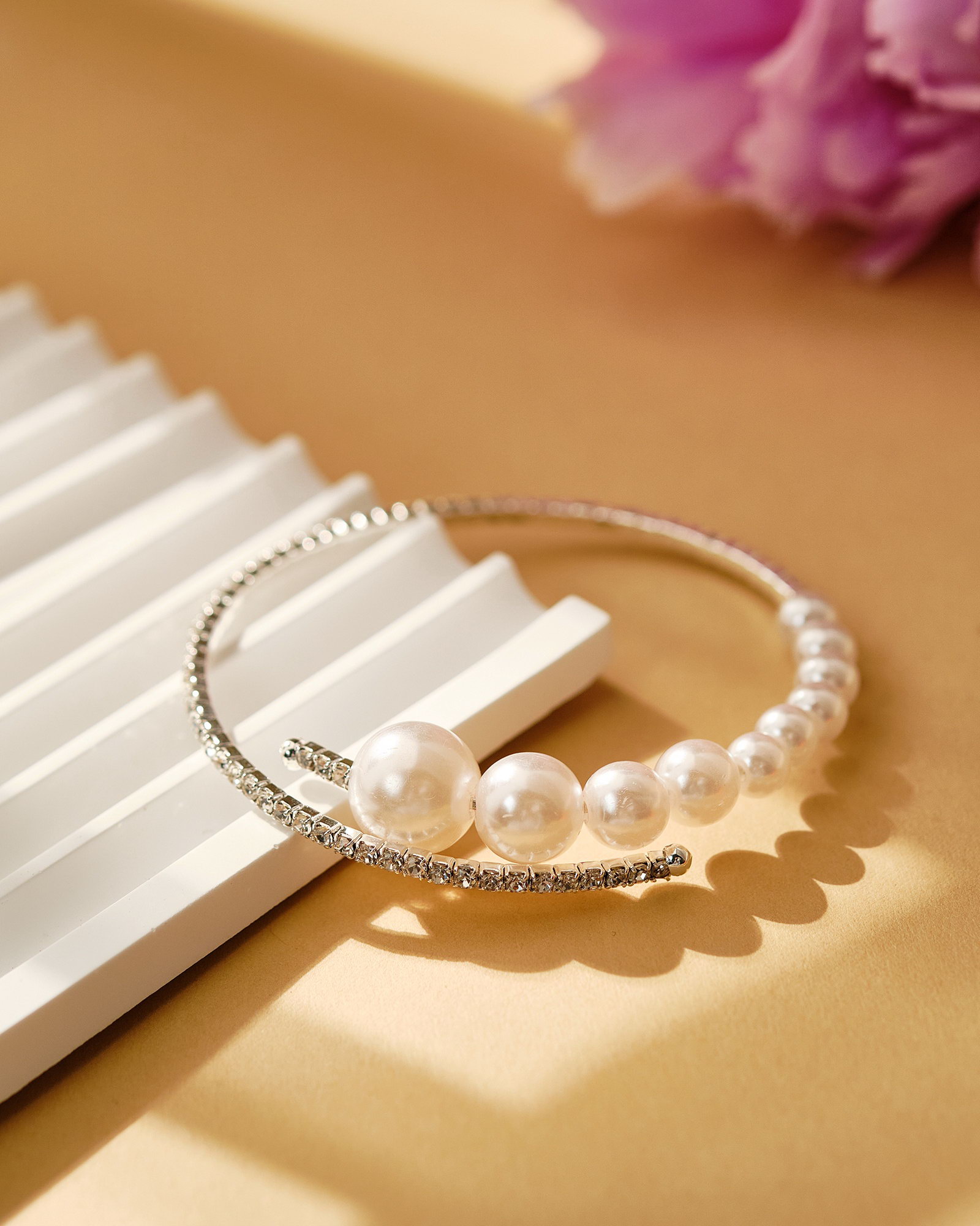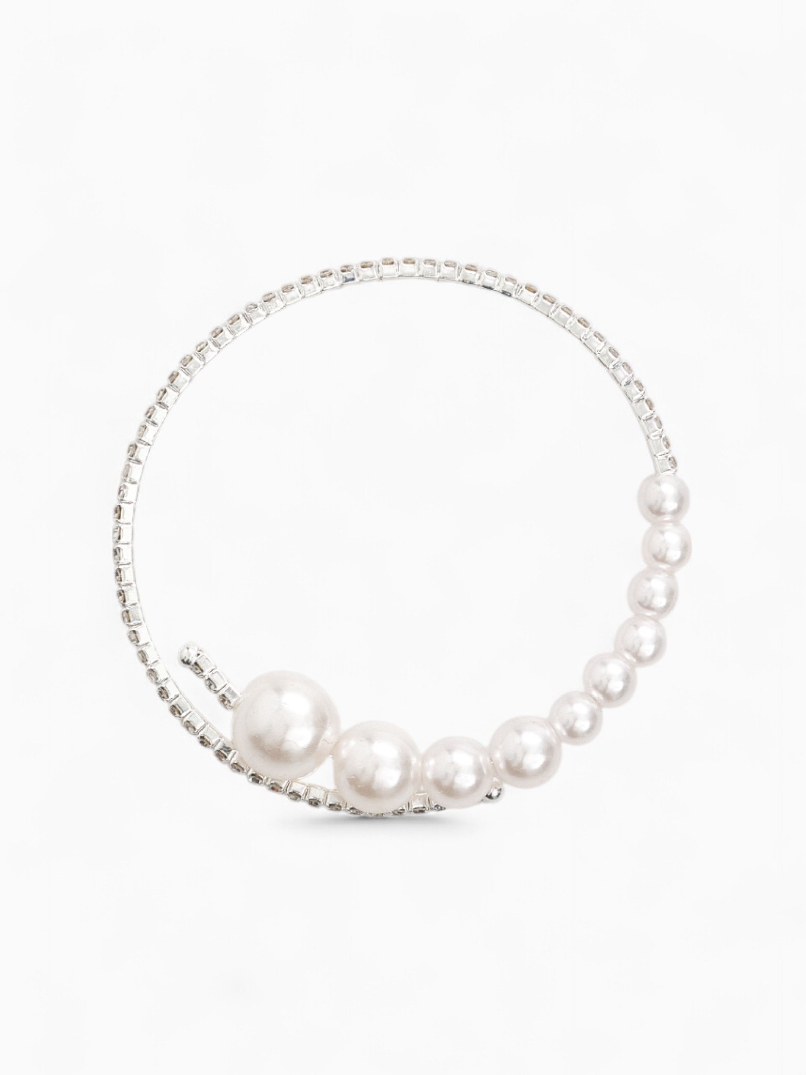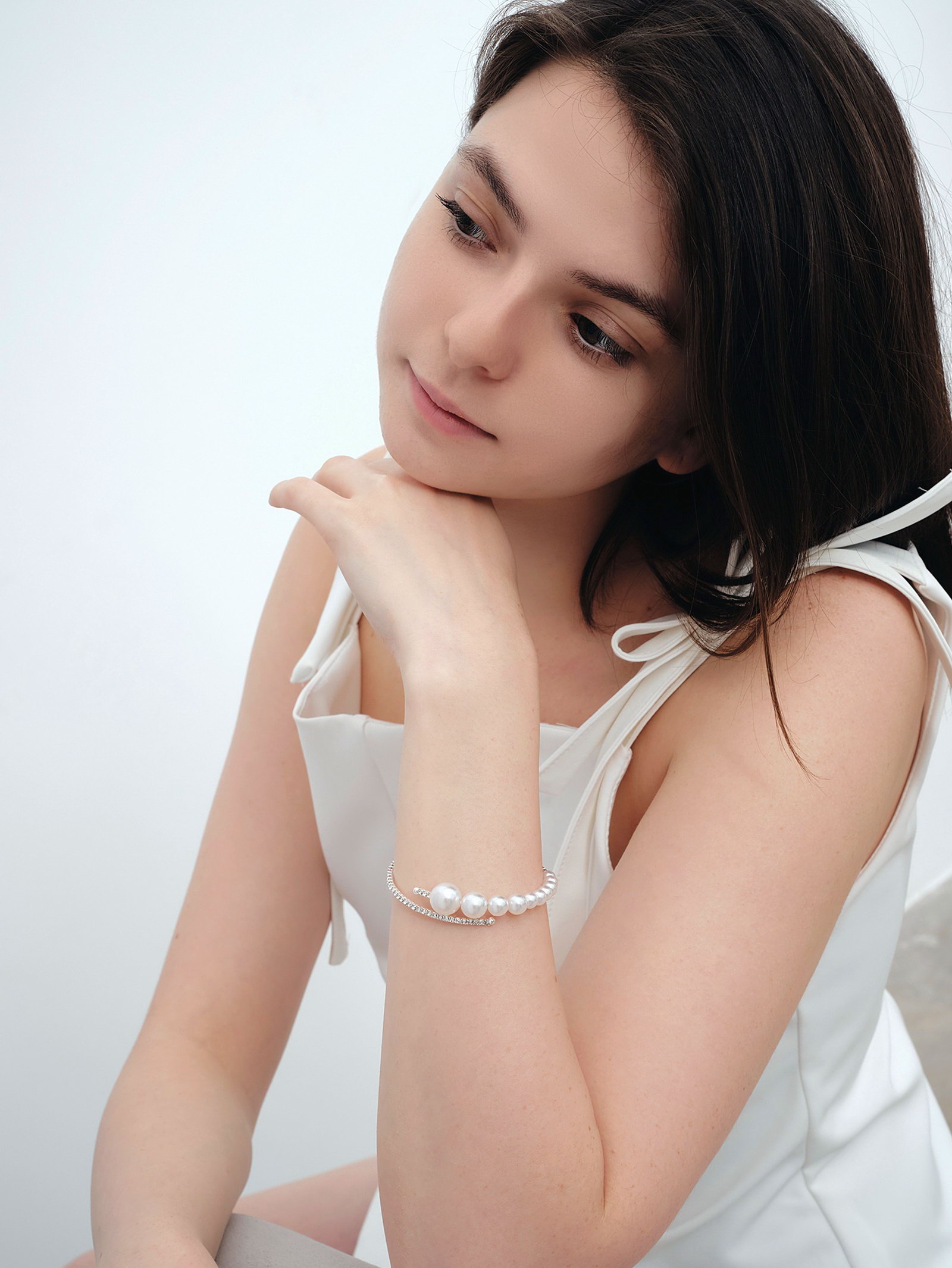 Браслет с жемчугом "Жемчуг" на убывание, d=6.5 белый в серебре, 6.5x6.5x1.3 см., QF, Китай