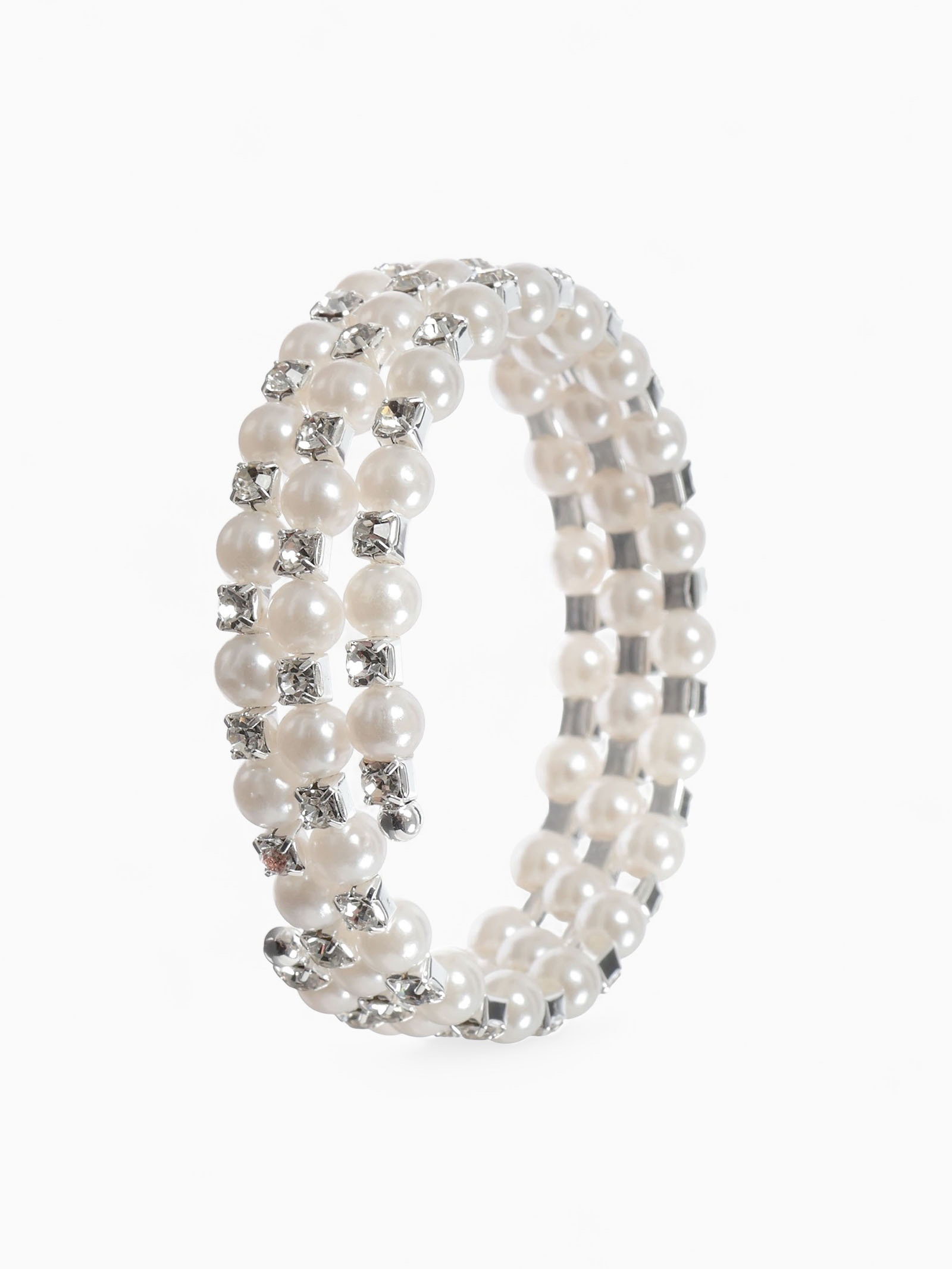 Вставка/Подвеска: Пластик, Стразы Размер упаковки: 6.5 x 2 x 6.5 см. tnved: 7117190000 Цвет: Белый Вид застёжки: Без застёжки Тематика: Жемчужная Цвет вставки: Белый Вид: Браслет пружинка Набор: Нет Длина, см: 6 Цвет фурнитуры: Серебряный Для кого: Для женщины Материал основы: Металл Этот элегантный браслет с жемчужными шариками идеально вписывается в любой женский образ, придавая ему свежесть и изящество. Компактный диаметр 6 см обеспечивает комфортную посадку без застёжки благодаря гибкой конструкции пружинка аксессуар легко надевается и привычно чувствуется на запястье. Металлическая основа с серебристым покрытием гармонично сочетается с белыми пластиковыми жемчужинами и аккуратными стразами, создавая утончённый блеск и легкий эффект мерцания. Такой браслет универсальный выбор как для повседневного ношения, так и для торжественных мероприятий.