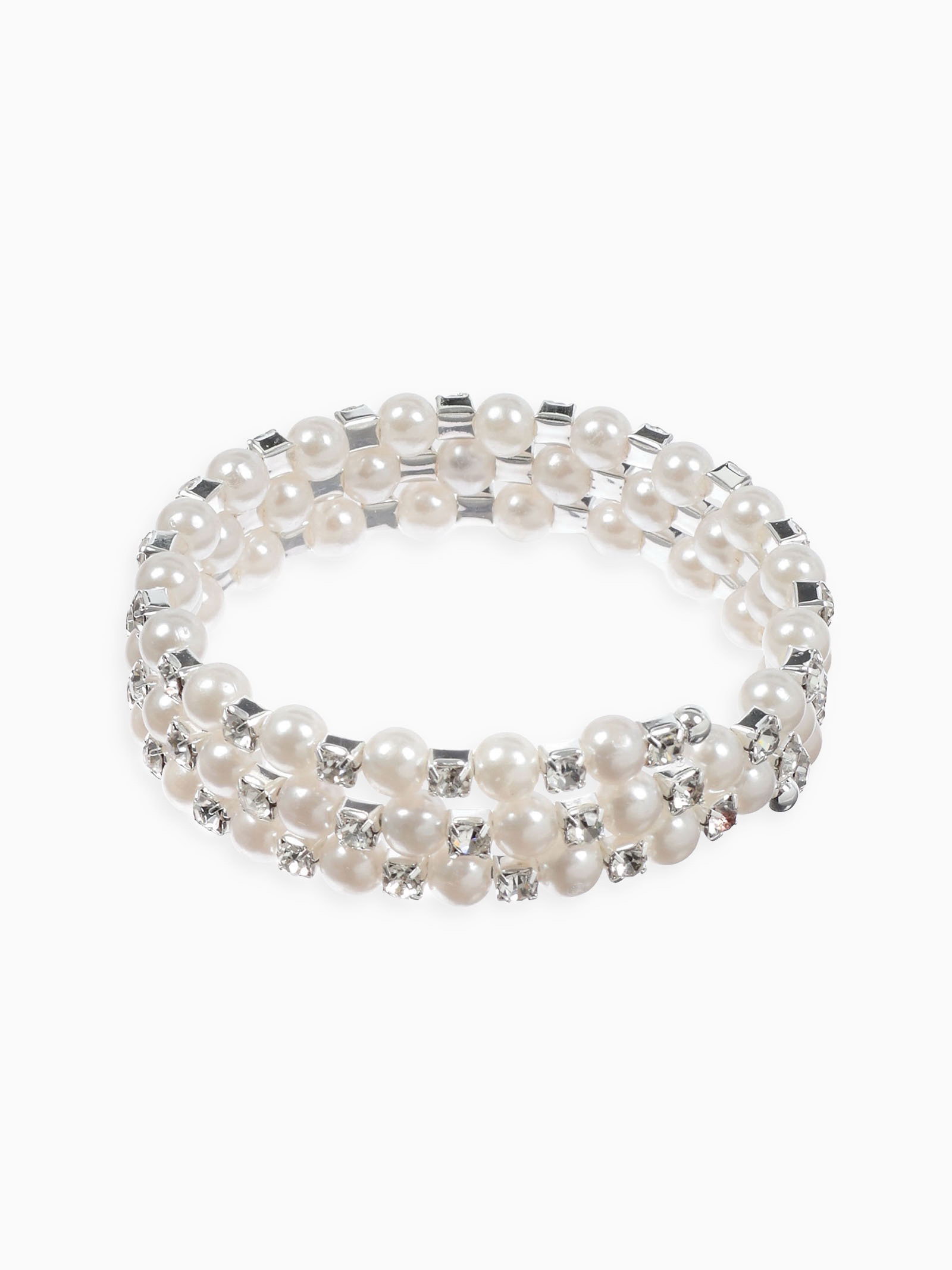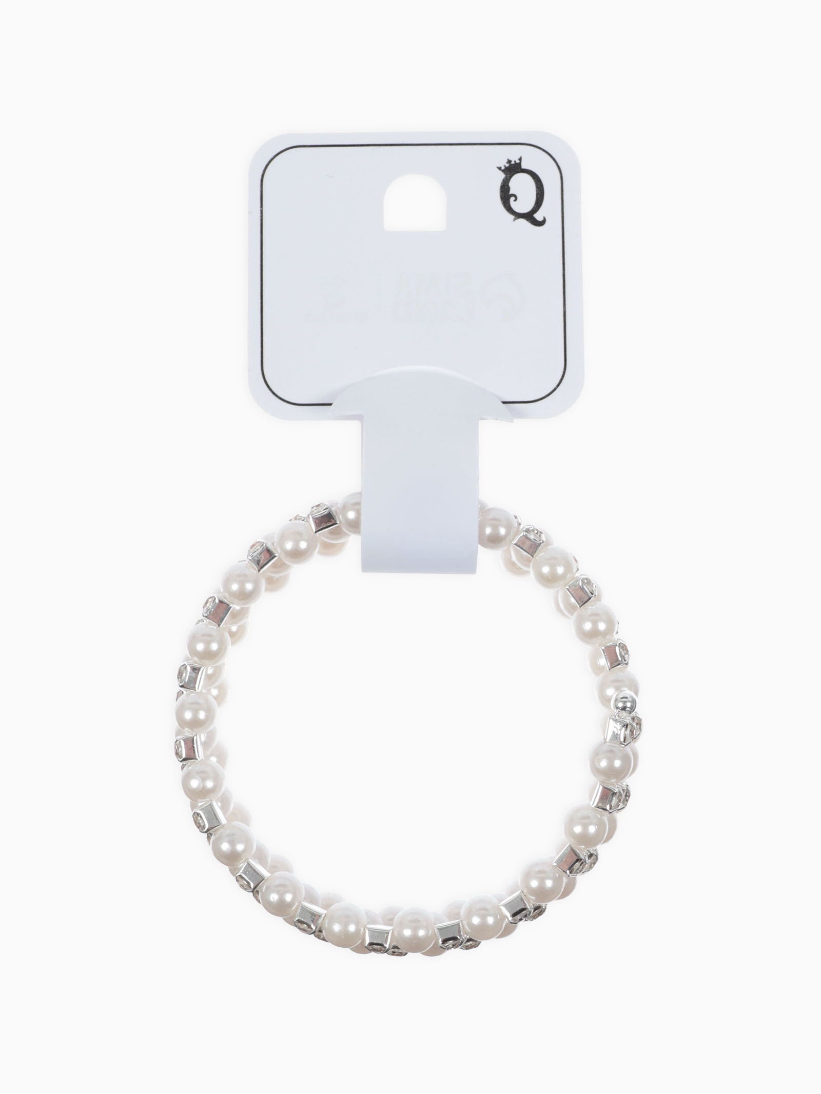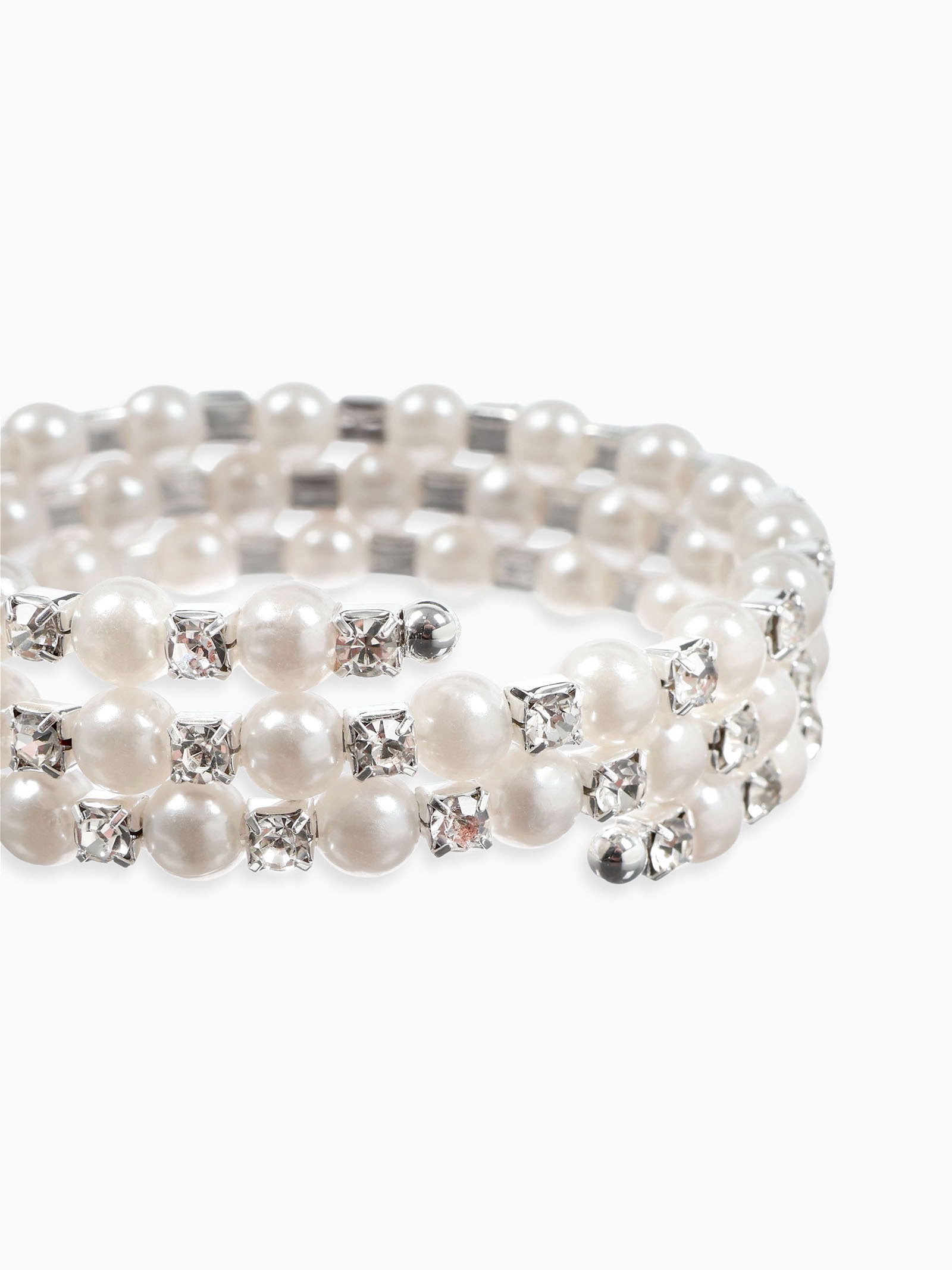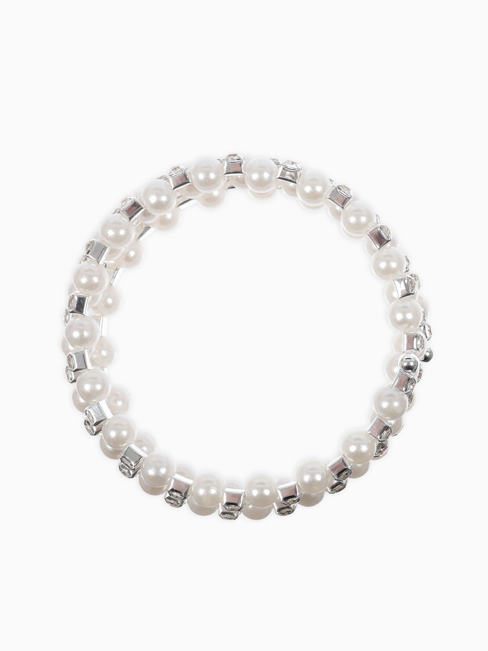 Браслет с жемчугом "Пружинка", шар № 6, белый в серебре, d=6 см, 6x6x2 см., QF, Китай
